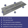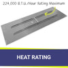 Designed for compatibility with both natural gas and propane systems, the pan features a 1/2" bottom gas inlet for easy installation. It is equipped with drilled weep holes to prevent water accumulation, safeguarding your burner system and maintaining optimal performance.
