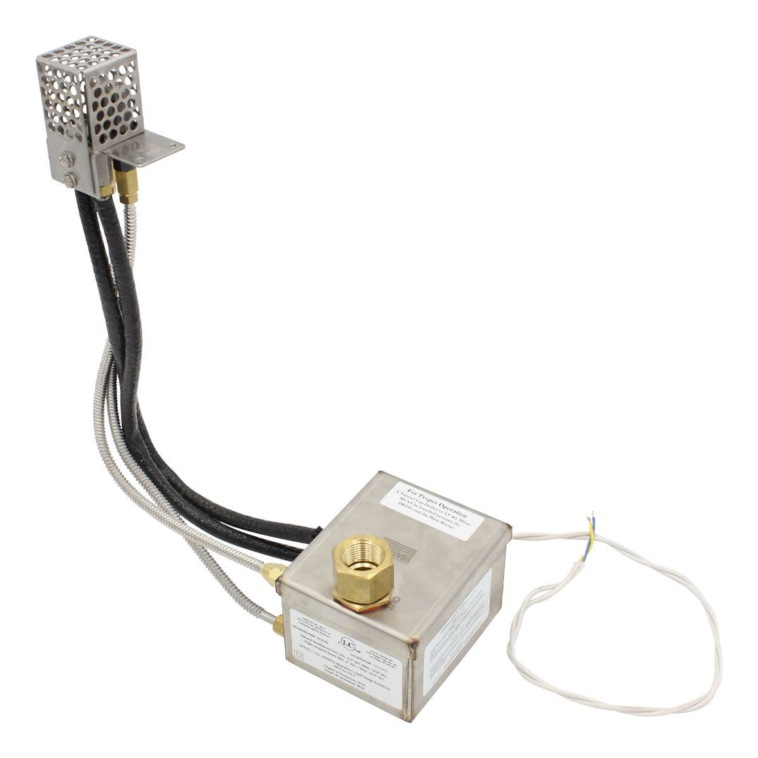 The included AWEIS unit operates on 24 VAC, using a hot surface igniter to light the pilot flame quickly and consistently. Once the pilot is lit, the thermopile activates the main gas valve for a full, vibrant flame. Should the flame be blown out, the system automatically shuts off and re-ignites, ensuring reliable, safe operation without the need for manual resets.