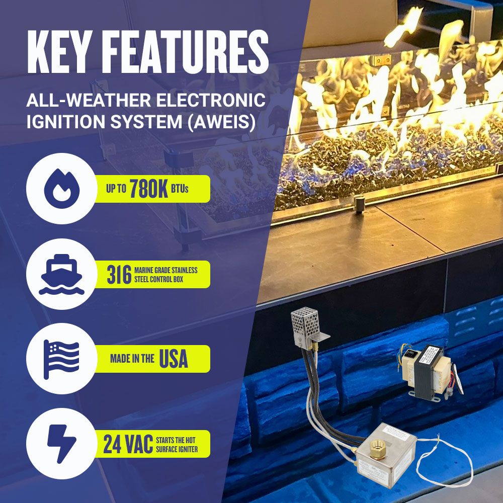 Encased in a marine-grade stainless steel control box, this AWEIS system is built to handle high winds, rain, and the harshest climates—so you can enjoy a vibrant flame all year long.