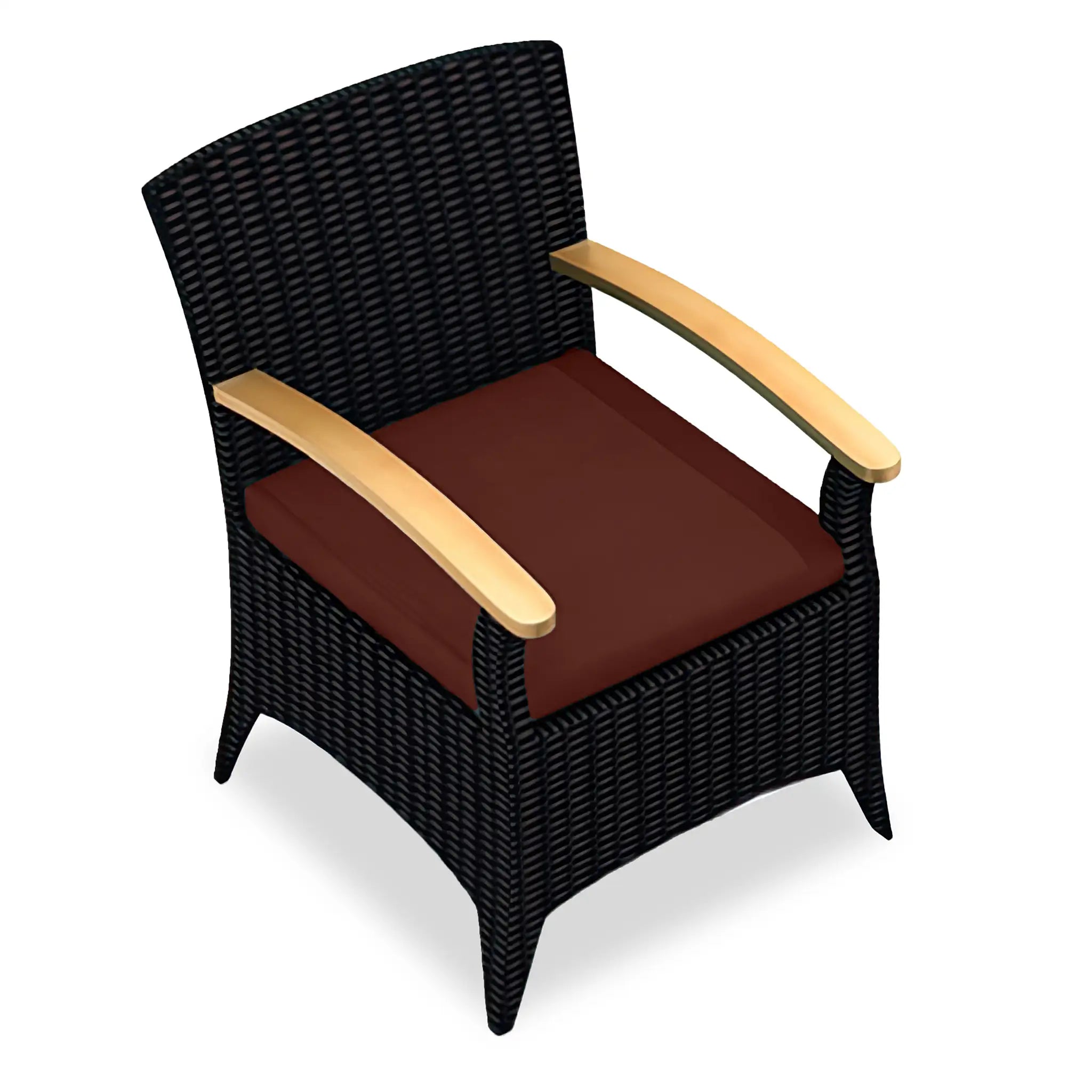 The arms of the chair are made from Grade A teak, renowned for its beauty and strength. The teak has been kiln-dried to remove excess moisture, ensuring that it will not crack or warp over time, even with prolonged exposure to outdoor conditions. This process enhances the longevity of the chair while maintaining the natural beauty of the wood, giving the piece a timeless and refined look.