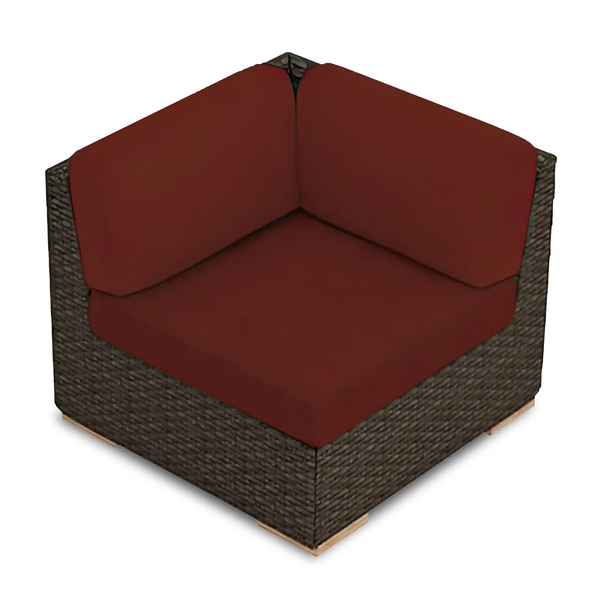 The wicker of the Arden Corner Section is hand-woven from High-Density Polyethylene (HDPE), a highly durable material known for its resistance to cracking and fading. The color is infused into the HDPE wicker to prevent any discoloration over time, ensuring that the piece will remain looking beautiful for years. Finished in a rich, textured Chestnut color, the wicker provides a natural and rustic aesthetic, blending seamlessly with both modern and traditional outdoor settings.