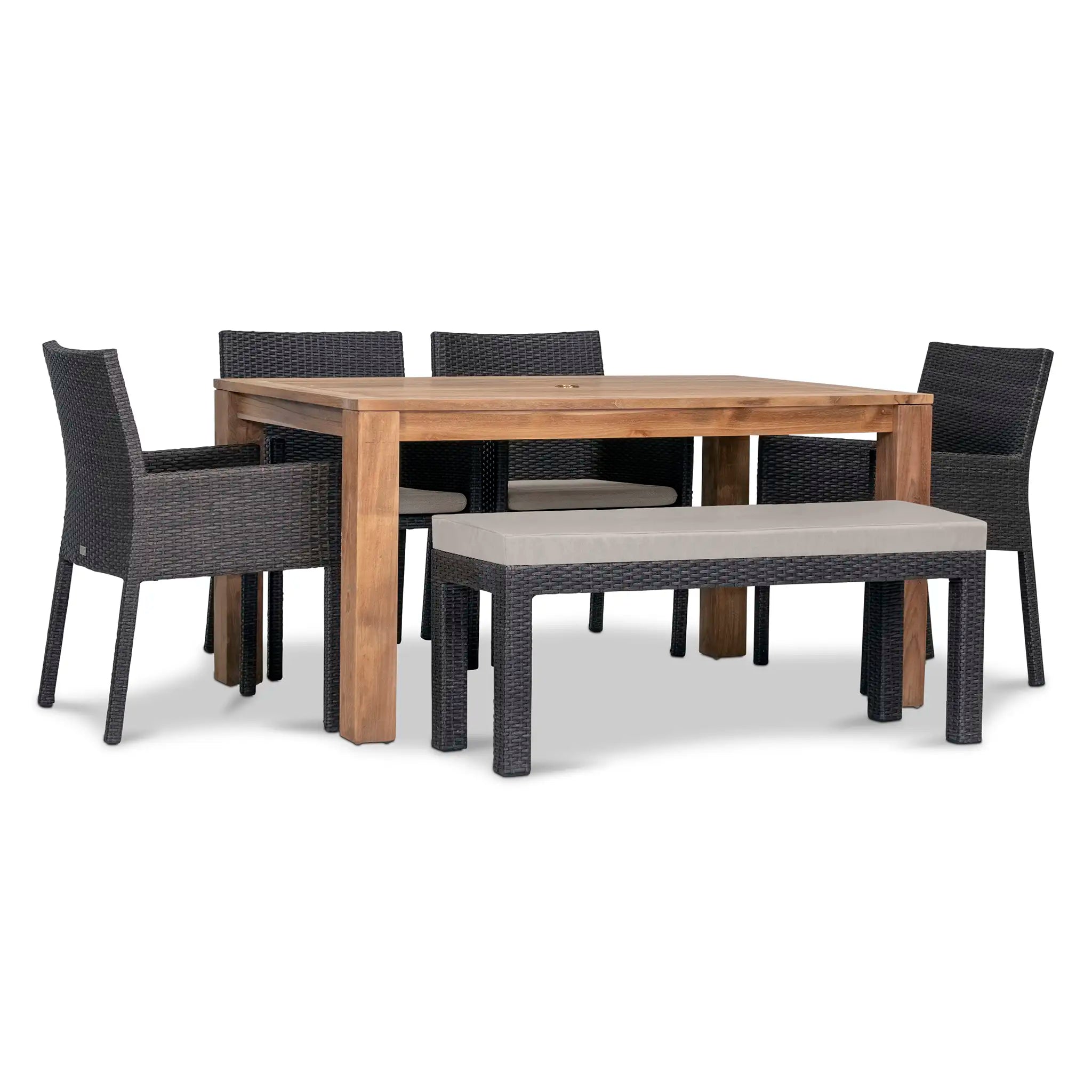 Harmonia Living offers the Arden Teak 6 Piece Bench Dining Set for both residential and commercial use, ensuring that it suits any setting. With a commitment to delivering exceptional outdoor furnishings, Harmonia Living combines quality, craftsmanship, and design to elevate your outdoor space, turning it into a welcoming, functional gathering spot that will endure for years to come.