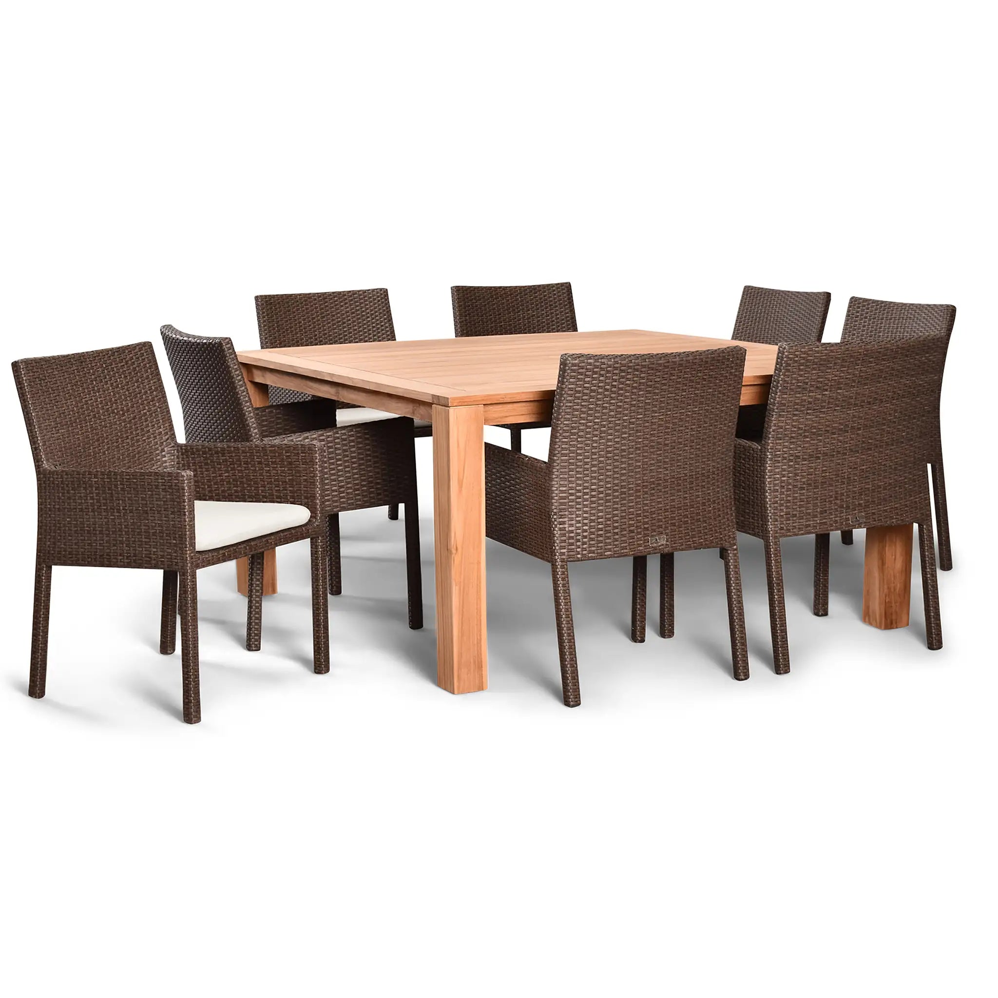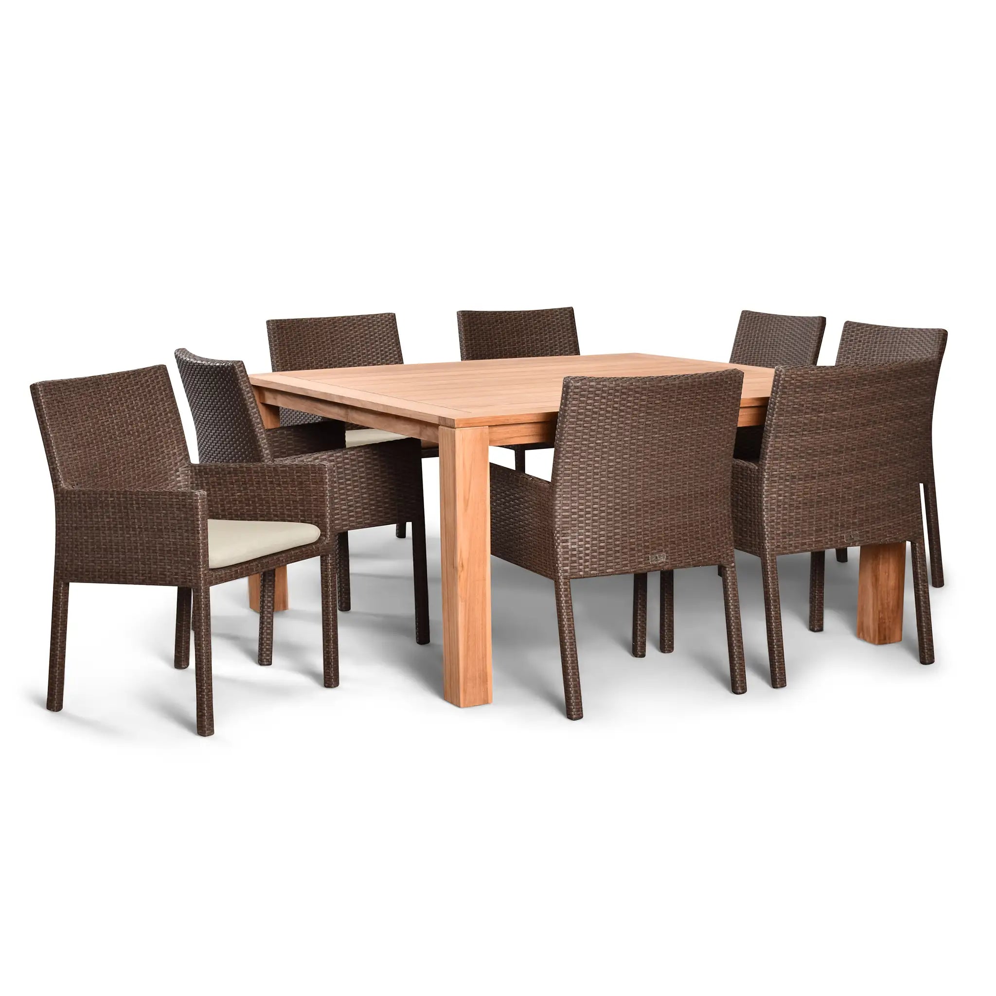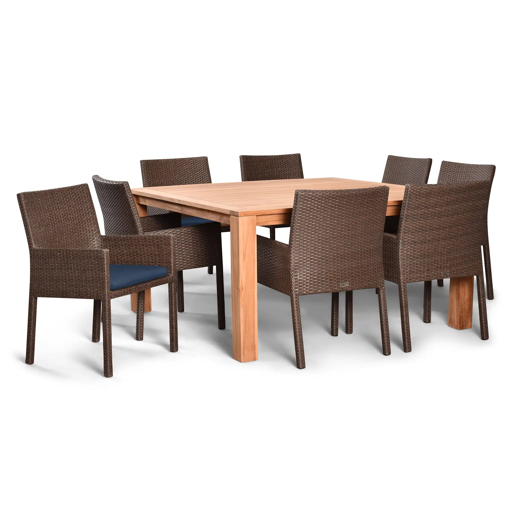 The table in this set is constructed from sustainably harvested, Grade A teak wood, known for its natural resistance to moisture, rotting, and pests. This makes it perfectly suited for outdoor environments and various climates, ensuring that it will remain a beautiful centerpiece for years to come. The combination of durable materials, fine craftsmanship, and stunning design makes the Arden Teak 9 Piece Square Dining Set a must-have addition to any outdoor space.