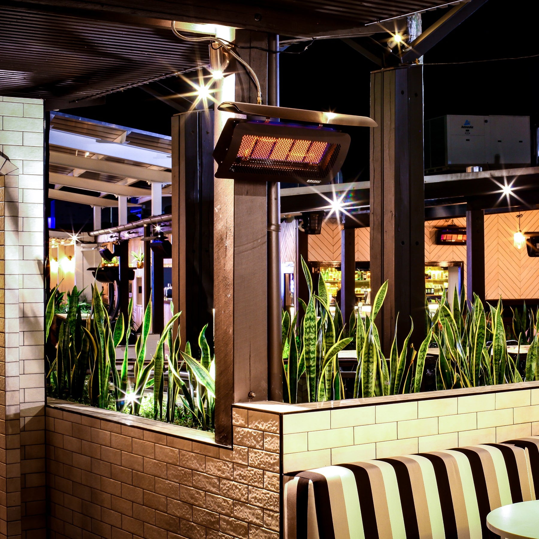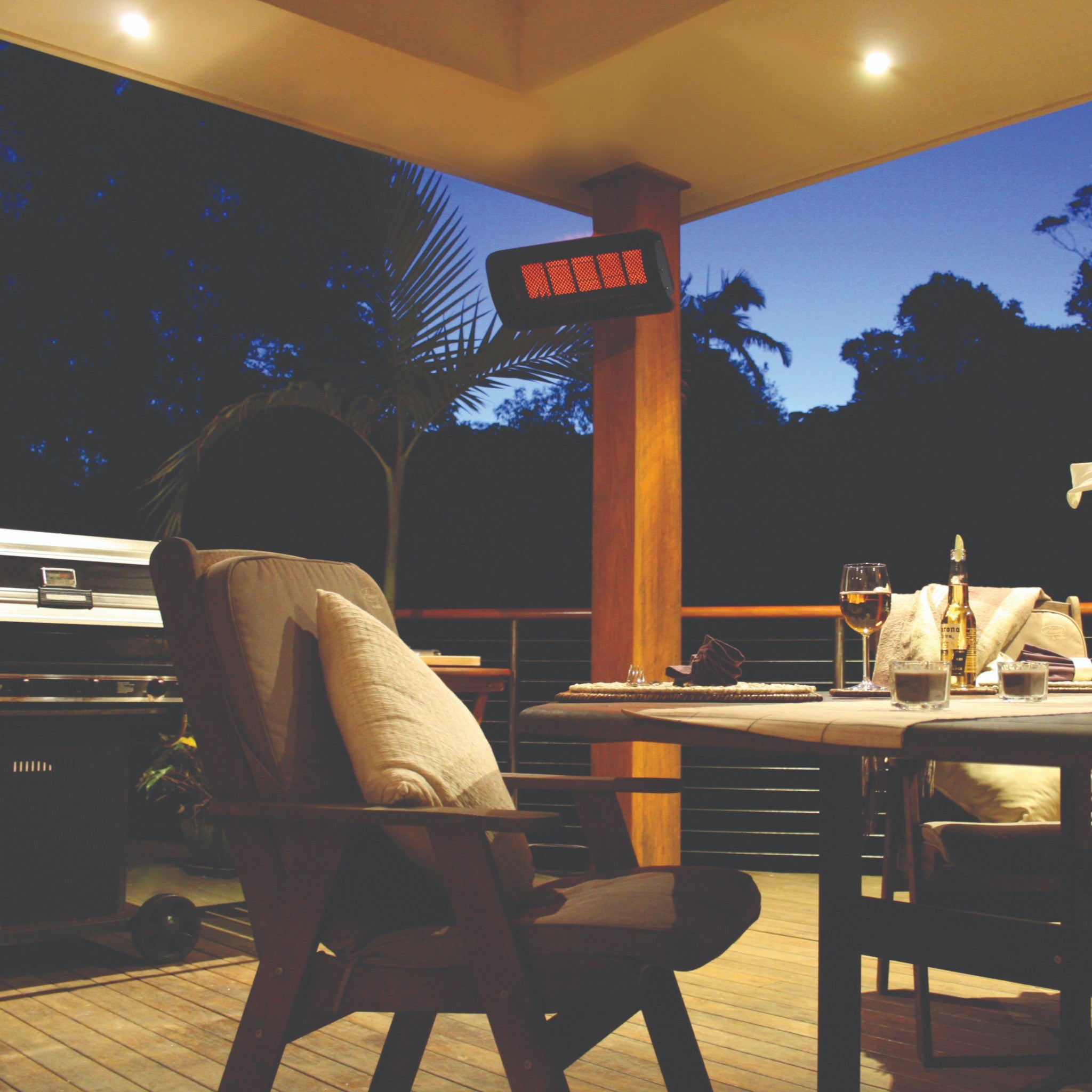 The 500 Series Tungsten Heater is great for heating approximately 200 square feet. If you are heating a smaller space, you may want to consider going with a 300 Series Tungsten Heater which heats approximately 120 square feet. No matter what you choose, the Bromic Tungsten Heaters are the leaders in stylish heating decor.