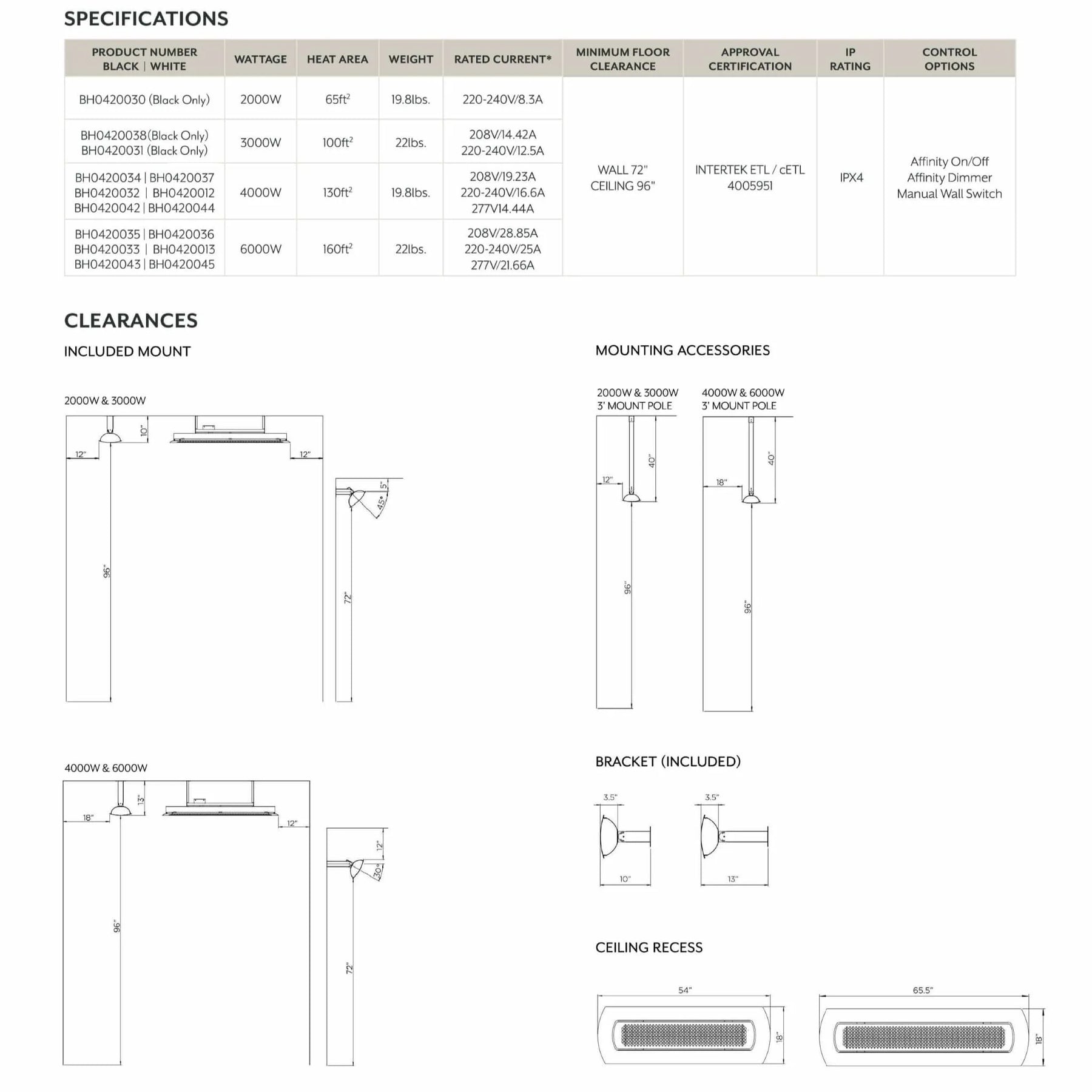 Tungsten Series 220V-240V Electric Smart-Heat Mounted Heater by Bromic Heating