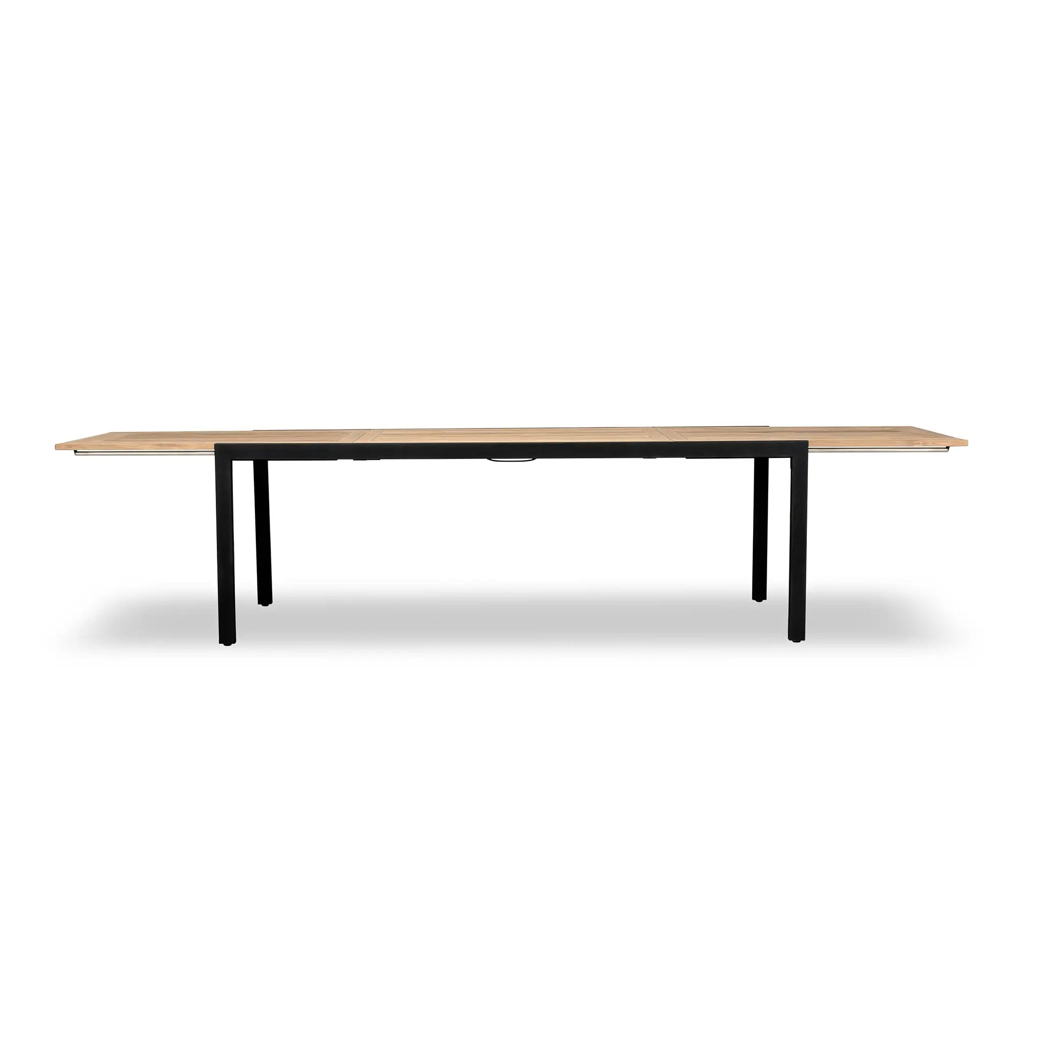 - The outdoor extension table has a self-storing leaf which extends the table from 86.6" to 133.9" in length. When extended, this patio dining table can seat up to 12.