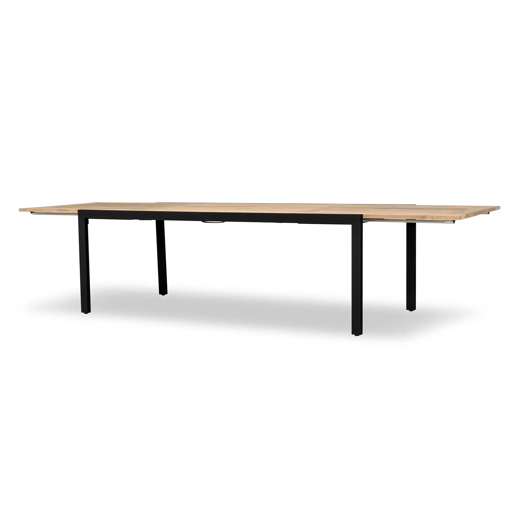 The Harmonia Living Communal Aluminum Reclaimed Teak Outdoor Extension Dining Table is a stunning fusion of mixed materials and natural beauty, designed to elevate any outdoor living space. Crafted with meticulous attention to detail, this table combines the sleek, modern durability of fully-welded aluminum frames with the rich, organic appeal of 100% FSC Certified reclaimed teak. The aluminum frames are treated with a powder-coated finish, ensuring long-lasting performance and resilience in any weather, from harsh sunlight to rainy days.