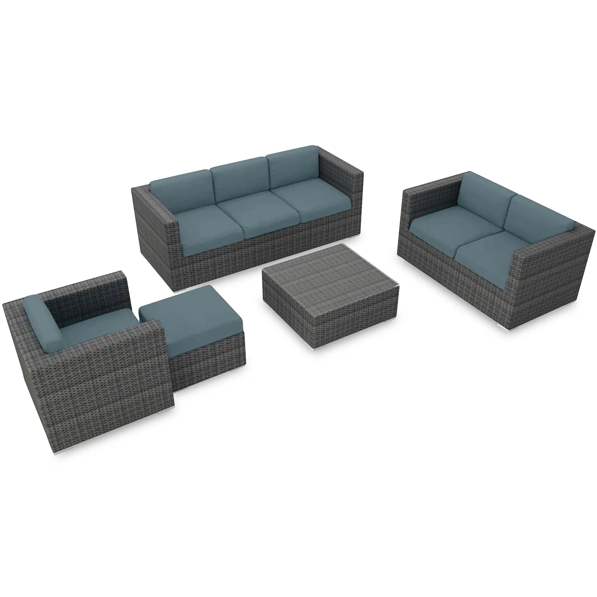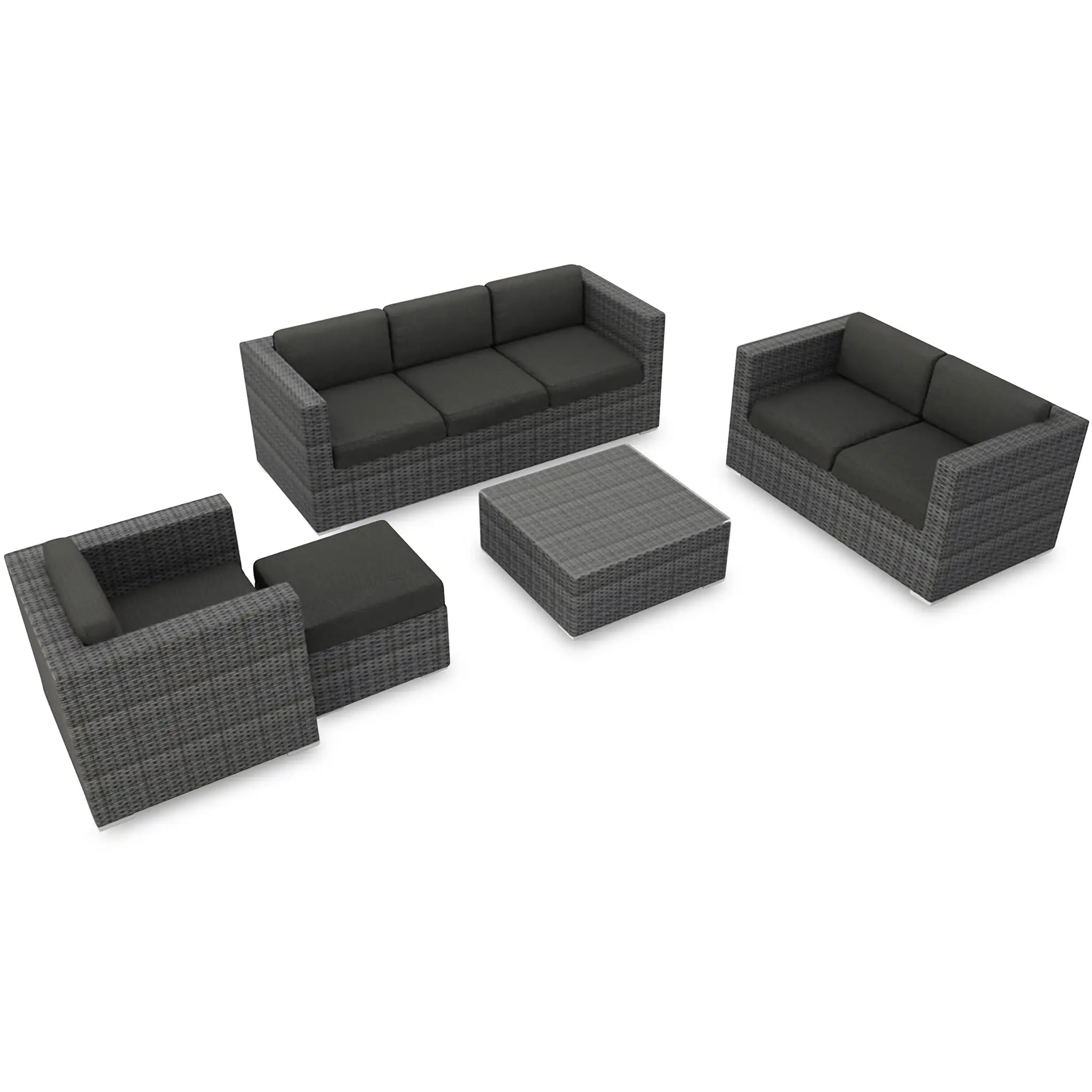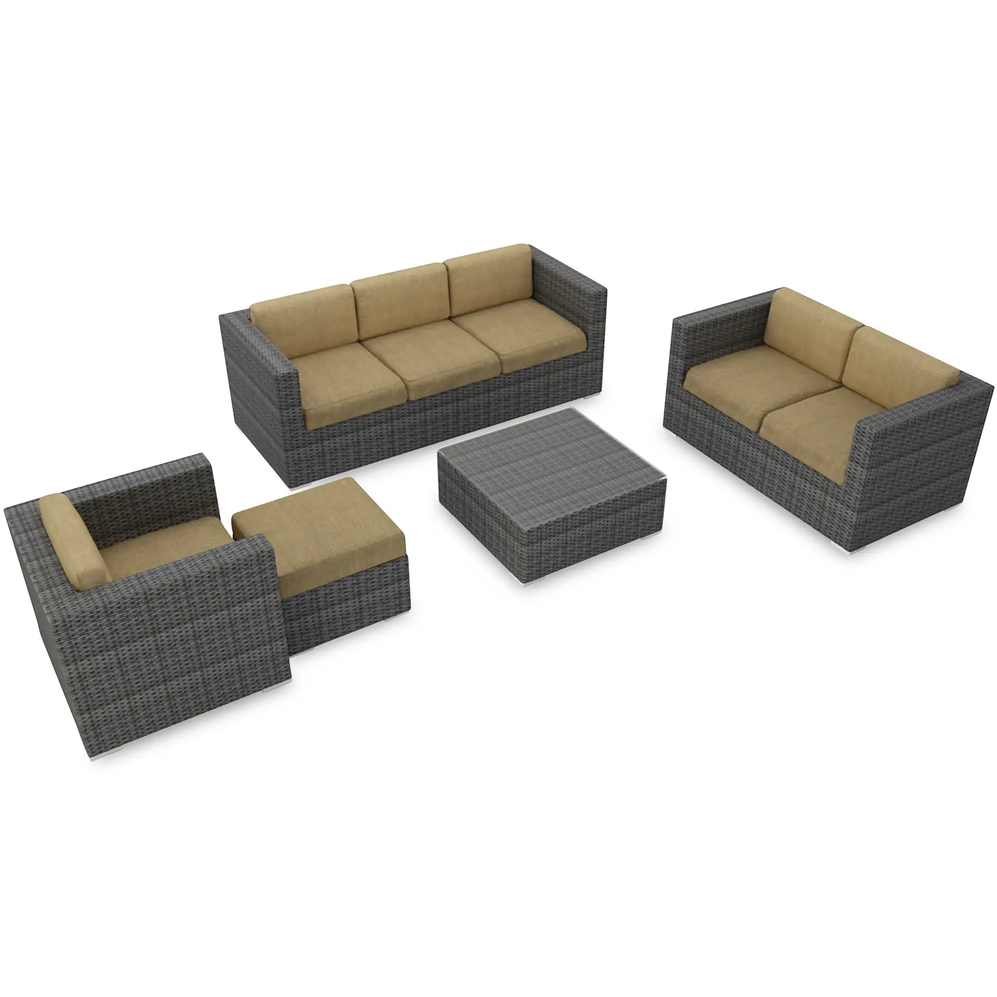 Harmonia Living's Quick-Ship Program makes it easy to customize your set, offering 9 popular Sunbrella fabric options that are fade-resistant, easy to clean, and ready to ship within days of placing an order. This set is ideal for both residential and commercial settings, with its combination of style, comfort, and long-lasting materials. Whether you're creating a cozy outdoor retreat at home or furnishing a commercial outdoor area, the District 5 Piece Sofa Set is sure to provide both beauty and durability for years to come.