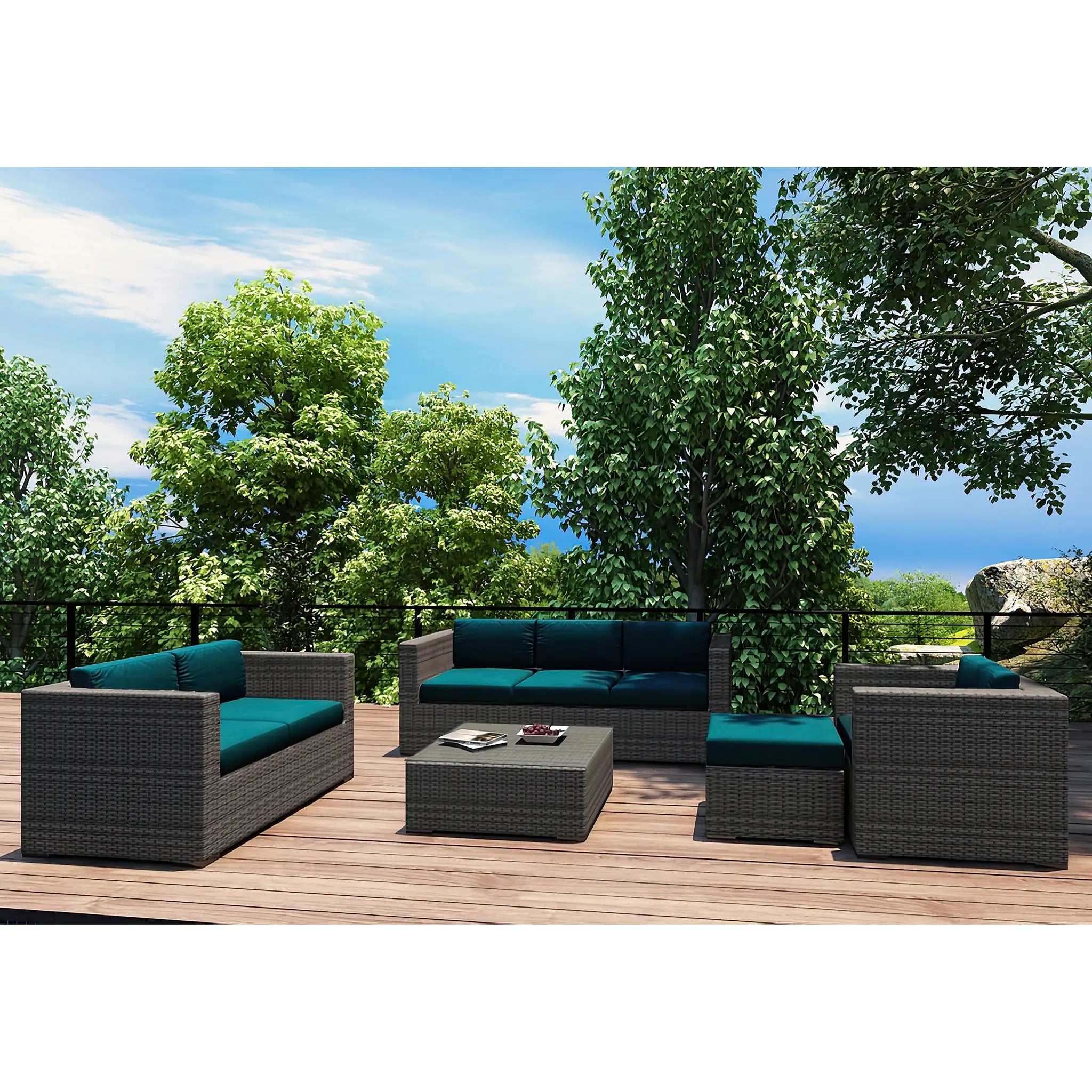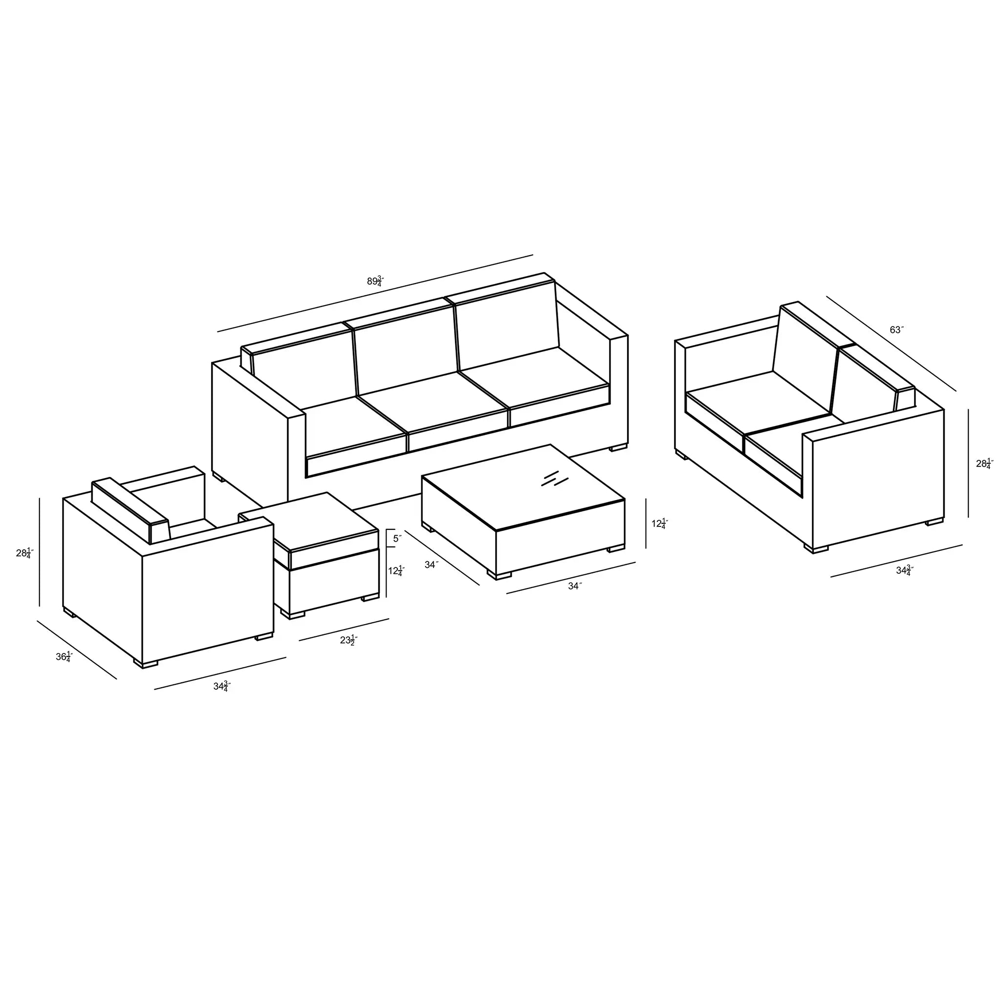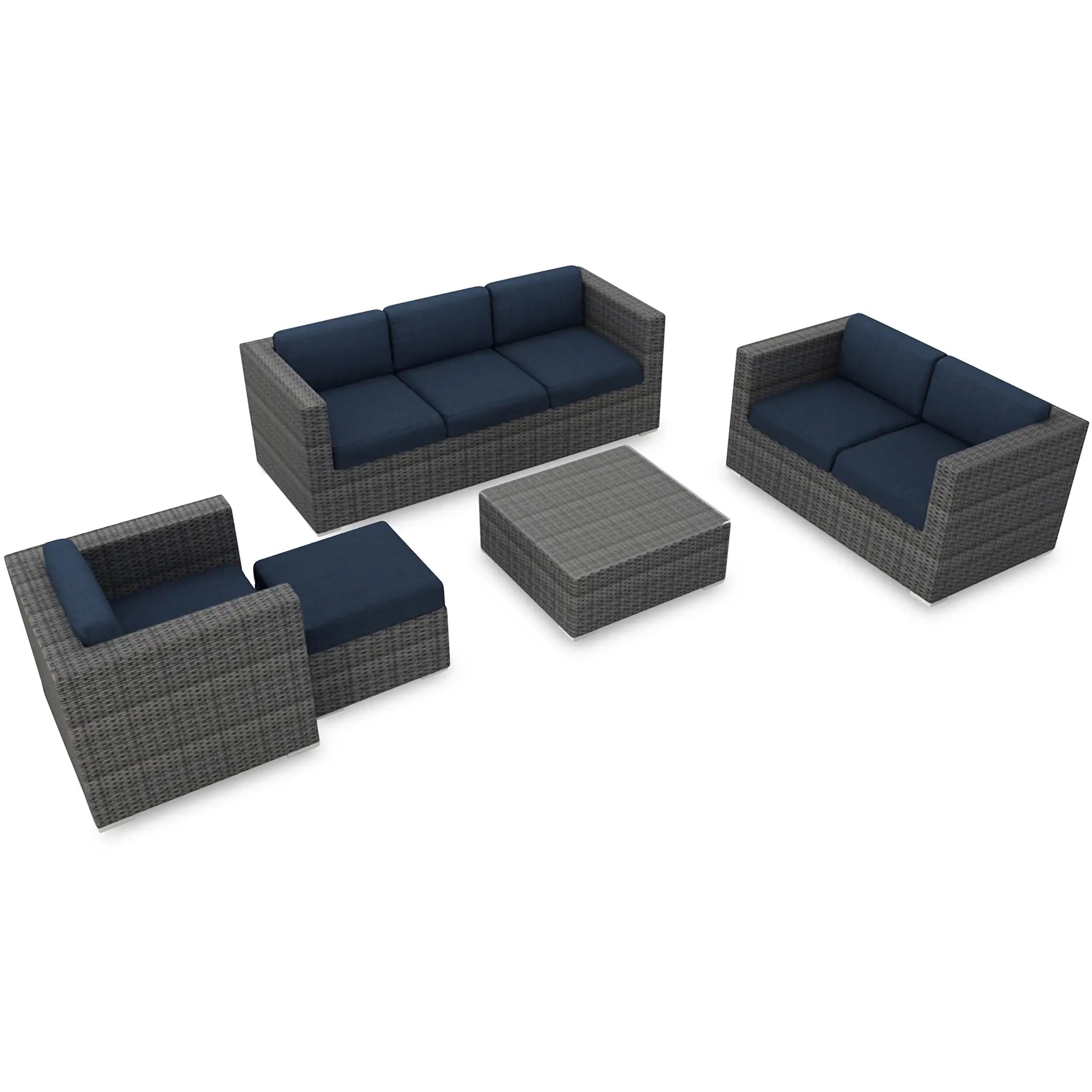 Harmonia Living's Quick-Ship Program makes it easy to customize your set, offering 9 popular Sunbrella fabric options that are fade-resistant, easy to clean, and ready to ship within days of placing an order. This set is ideal for both residential and commercial settings, with its combination of style, comfort, and long-lasting materials. Whether you're creating a cozy outdoor retreat at home or furnishing a commercial outdoor area, the District 5 Piece Sofa Set is sure to provide both beauty and durability for years to come.