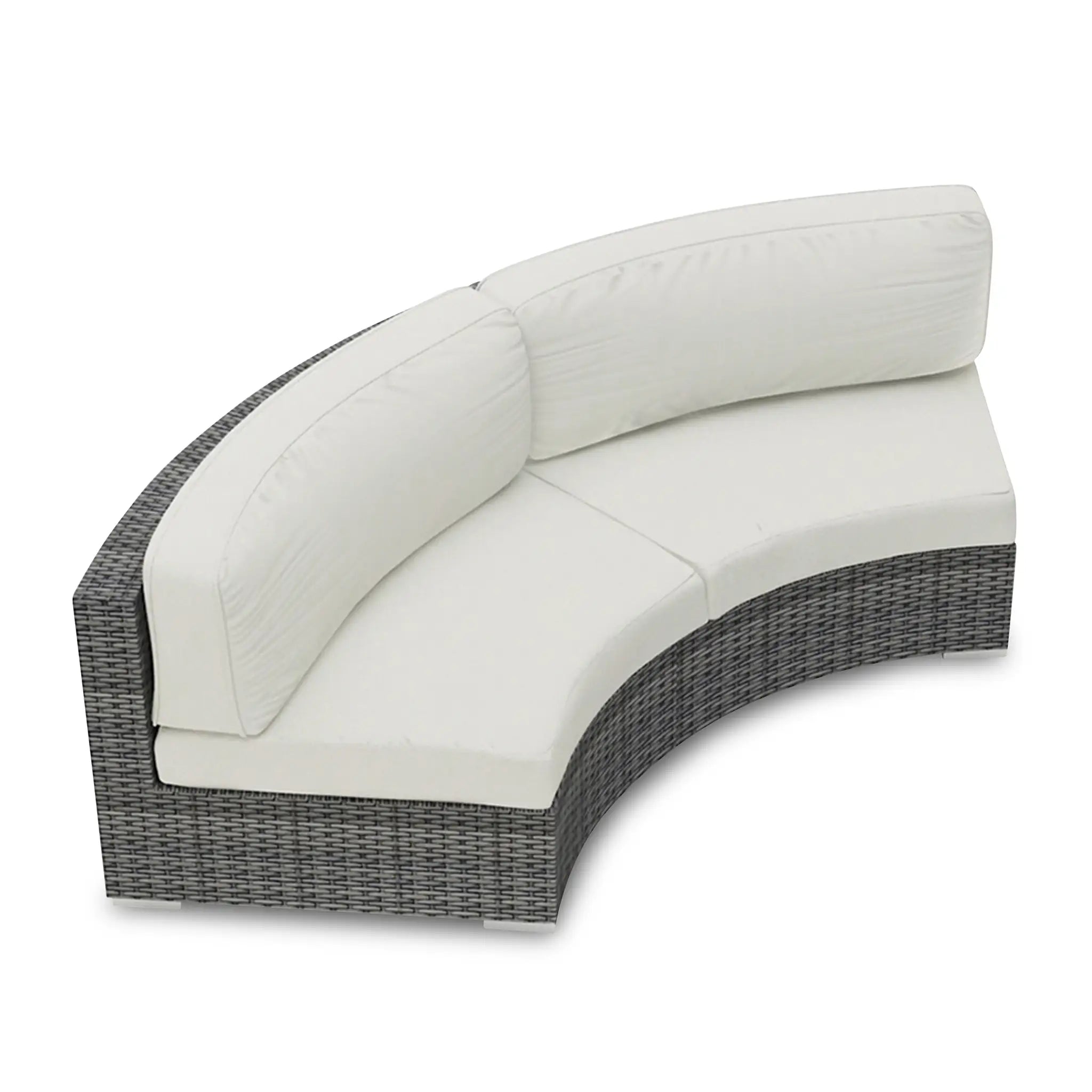 Comfort is a top priority with the District Curve Sectional Set, thanks to its high-quality cushions made in the USA. These cushions feature quick-drying Dacron, ensuring they stay dry even after exposure to moisture, and are sewn with UV-treated, marine-grade PremoBond thread for added durability. The cushions are upholstered in Sunbrella, Outdura, and Revolution performance fabrics, which are all designed for outdoor use. These fabrics are fade-resistant and come with a 5-year fade warranty, ensuring that your cushions will maintain their vibrant colors over time. Harmonia Living's Quick-Ship Program offers 9 popular Sunbrella fabric options, making it easy to customize your sectional set with fabrics that are easy to clean, fade-resistant, and ready to ship within days of placing your order.