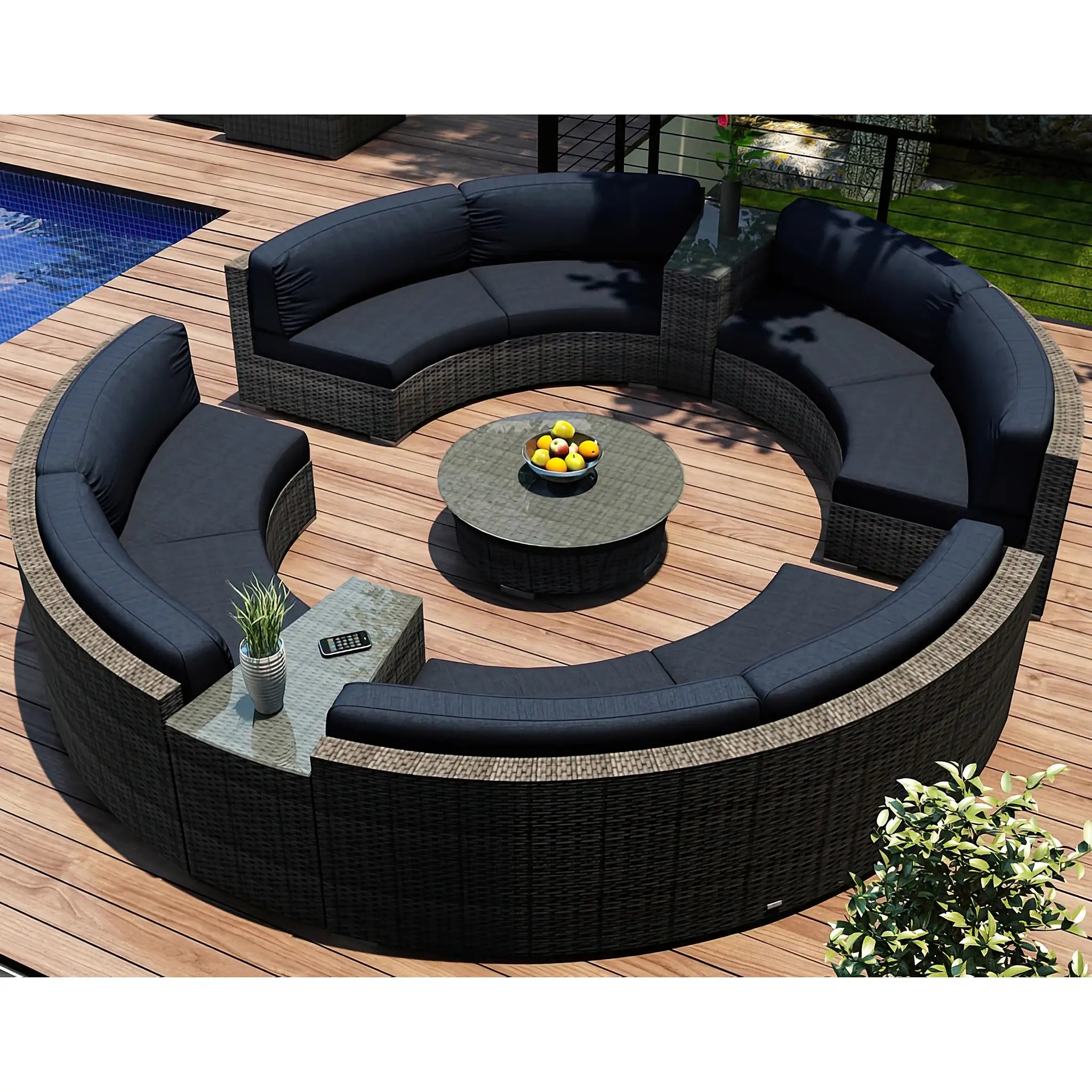 The set also includes a table with a tempered glass top that is extra strong and ideal for frequent use. The glass top adds a touch of elegance while offering a durable, easy-to-maintain surface for outdoor dining, drinks, or gatherings. The combination of sturdy frames, comfortable cushions, and high-quality materials makes this sectional set the perfect choice for both residential and commercial settings.