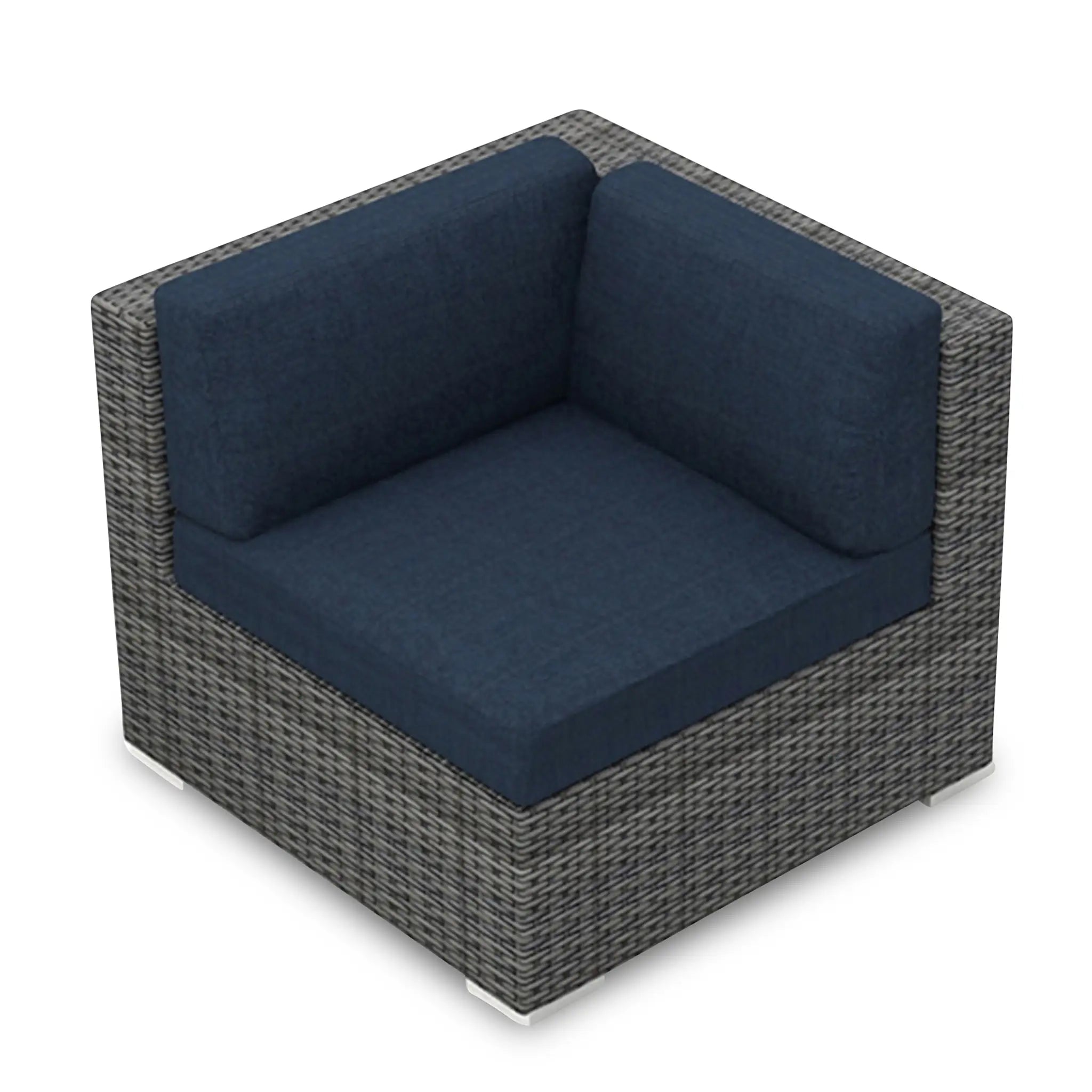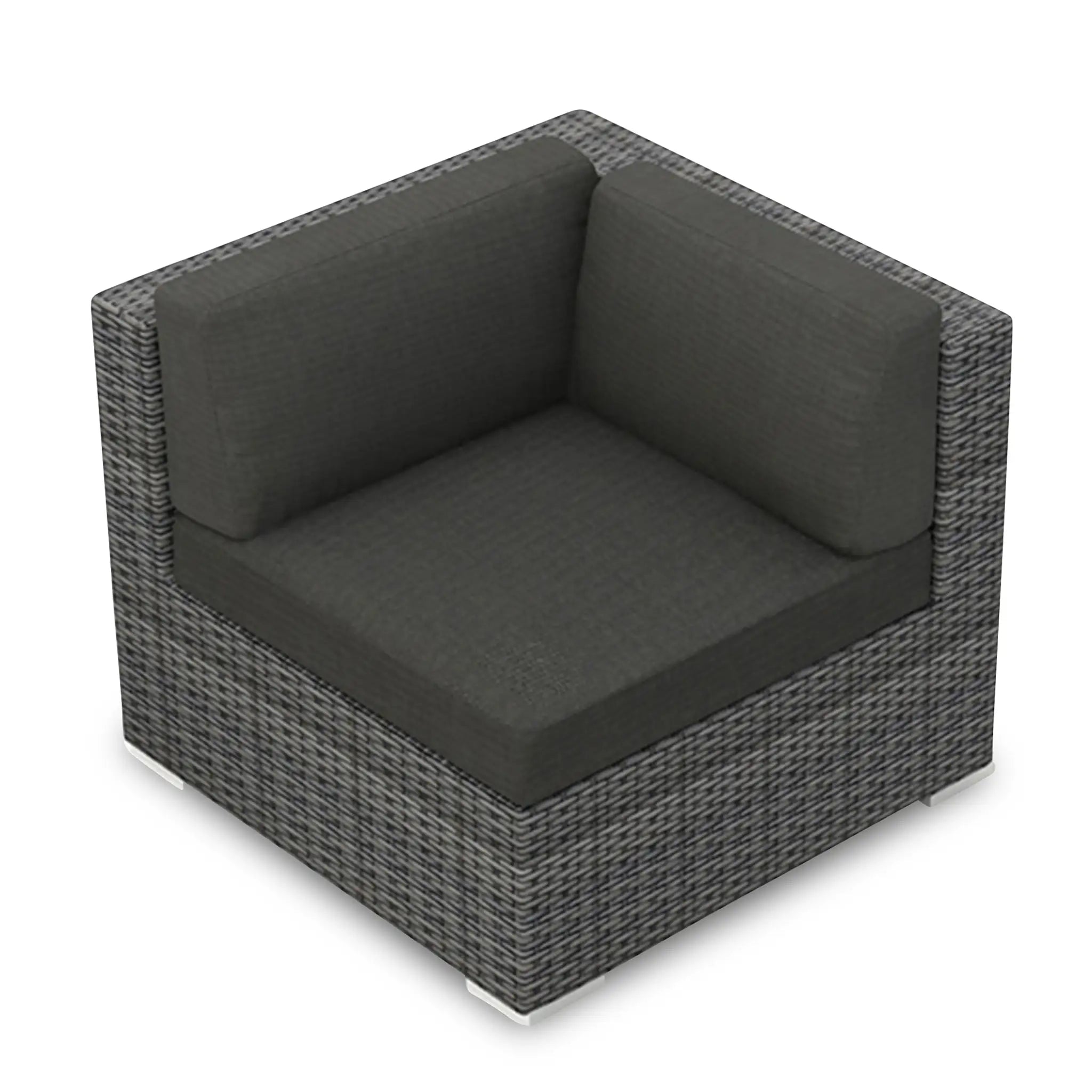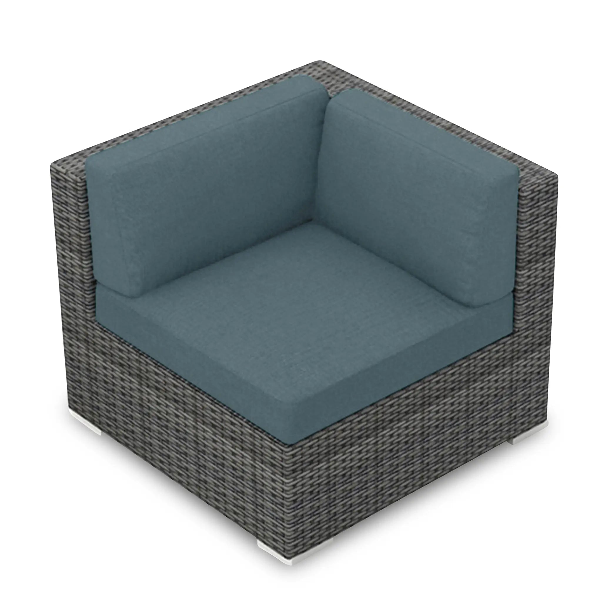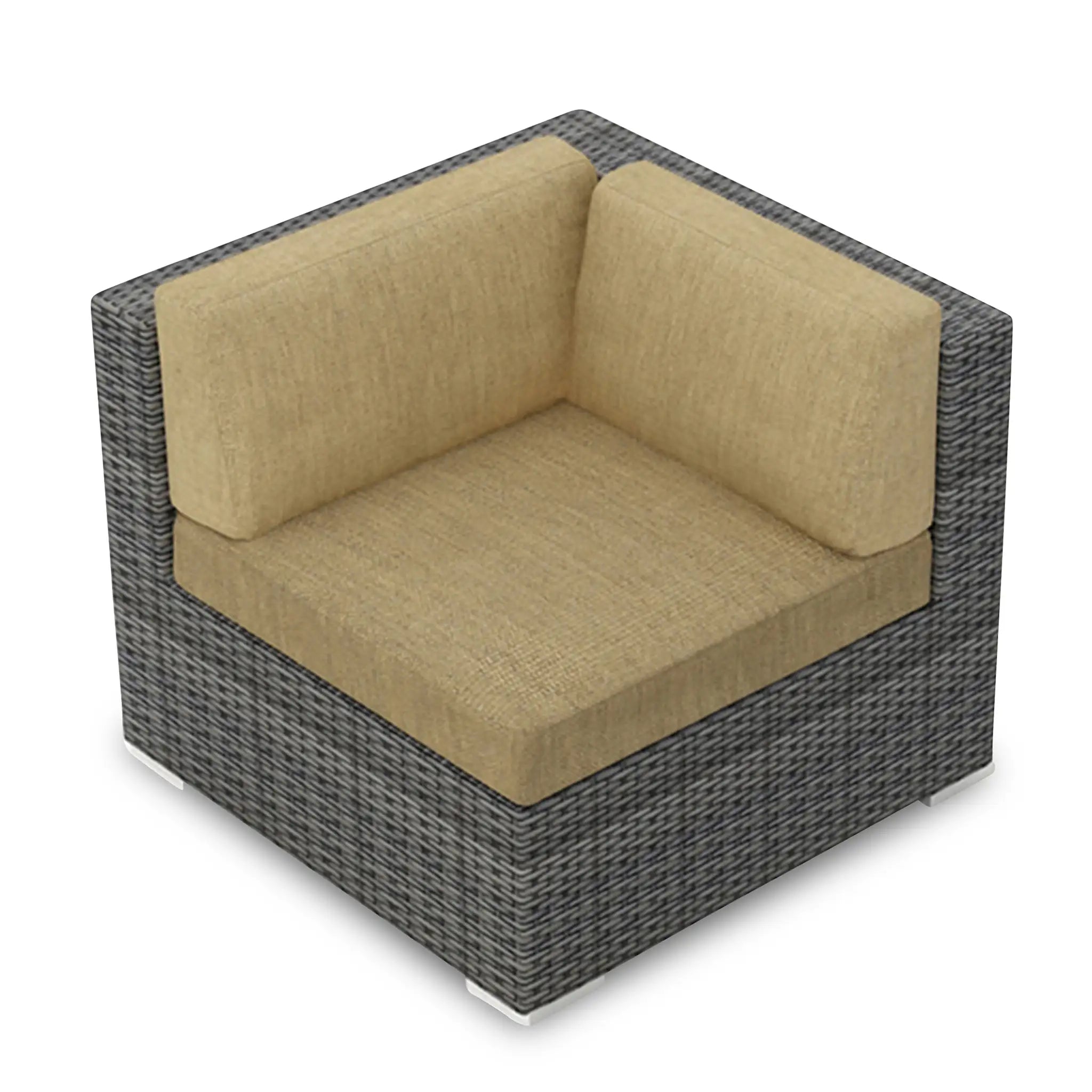 The wicker used in the District Corner Section is hand-woven from High-Density Polyethylene (HDPE), a highly durable material that resists cracking, ensuring the furniture's longevity even in harsh outdoor conditions. The color of the HDPE wicker is infused during manufacturing, preventing fading over time. Finished in a beautiful, textured Slate color, the wicker offers a natural and sophisticated appearance that adds elegance to your outdoor decor.