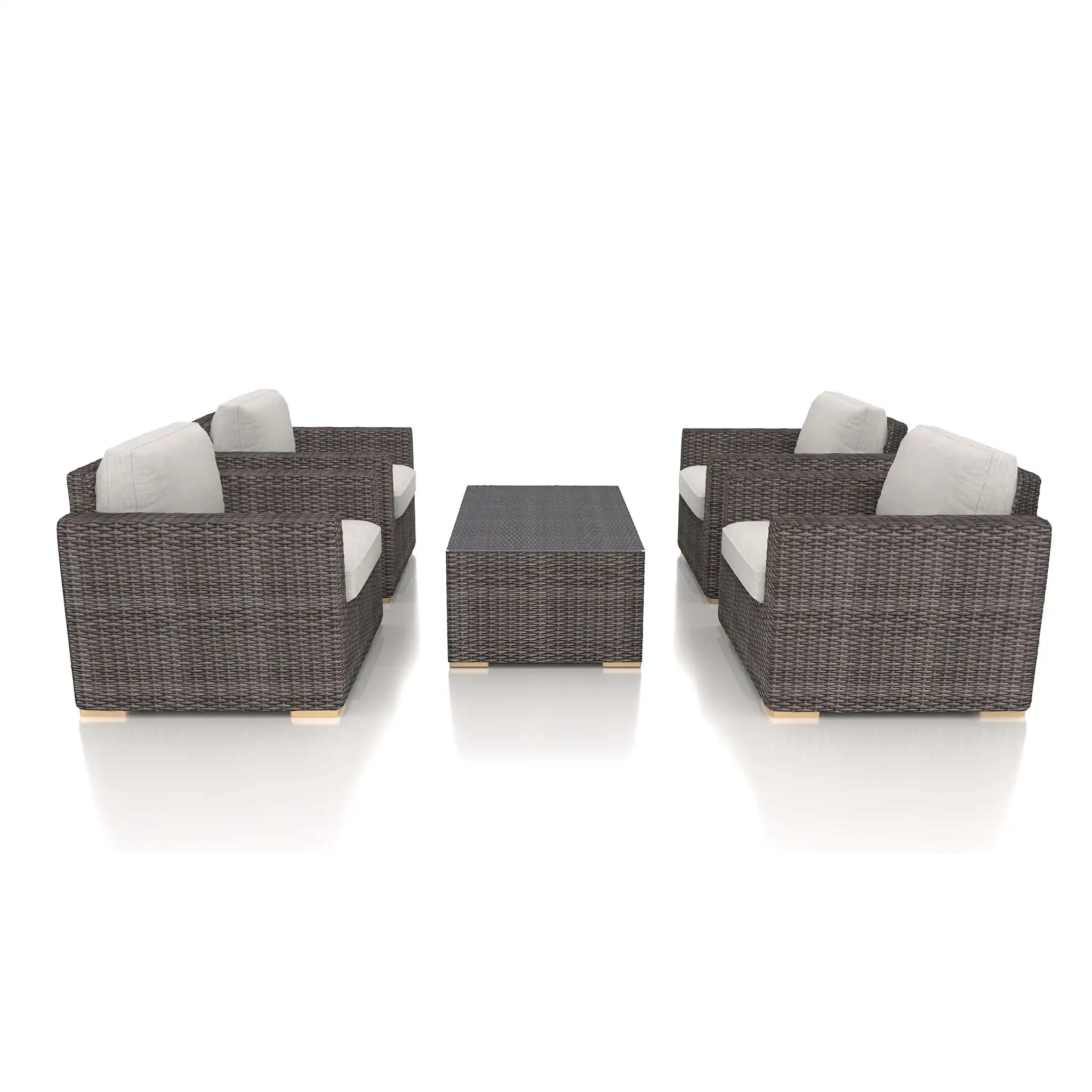 Comfort is key with the Dune 5 Piece Set, and the cushions are crafted in the USA using quick-drying Dacron and UV-treated, marine-grade PremoBond thread. These materials provide a supportive, yet comfortable seat that is designed to endure various weather conditions without compromising on comfort. Each cushion is made with high-performance fabrics such as Sunbrella, Outdura, and Revolution, all of which come with a 5-year fade warranty. These fabrics are not only fade-resistant but also easy to clean, ensuring your seating remains inviting for years to come.
