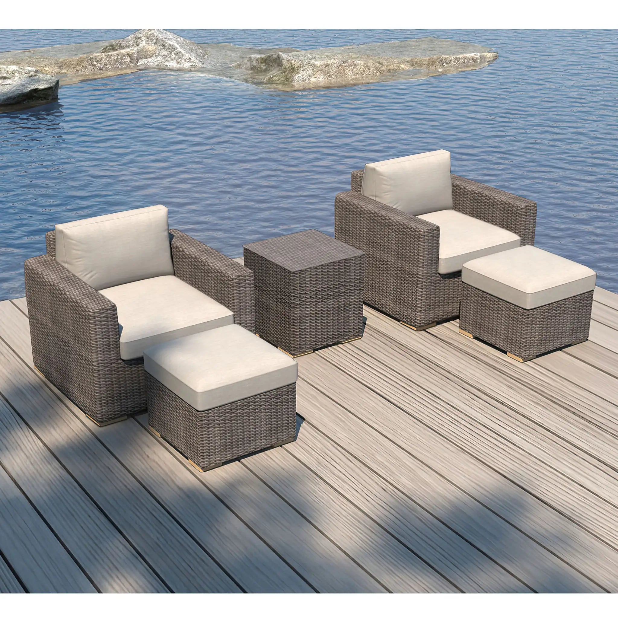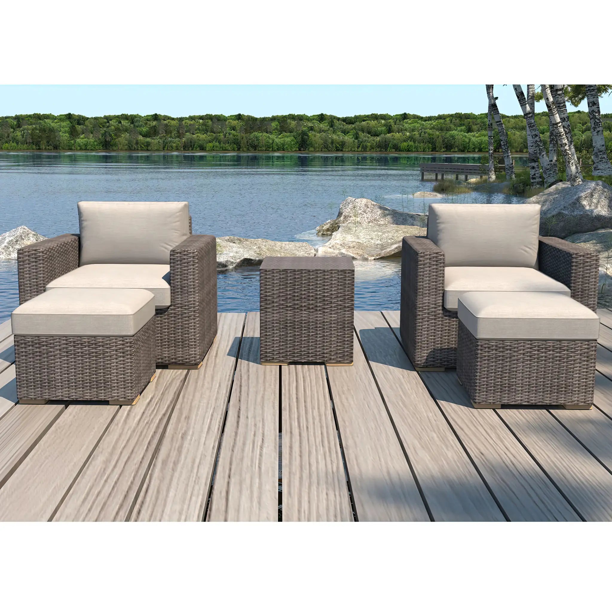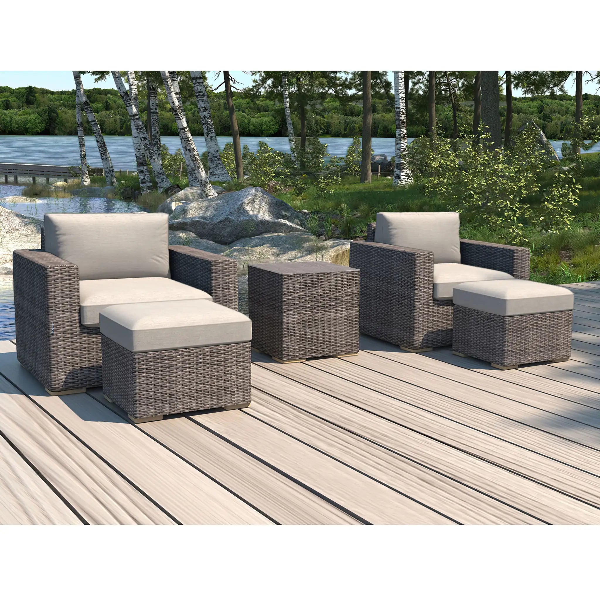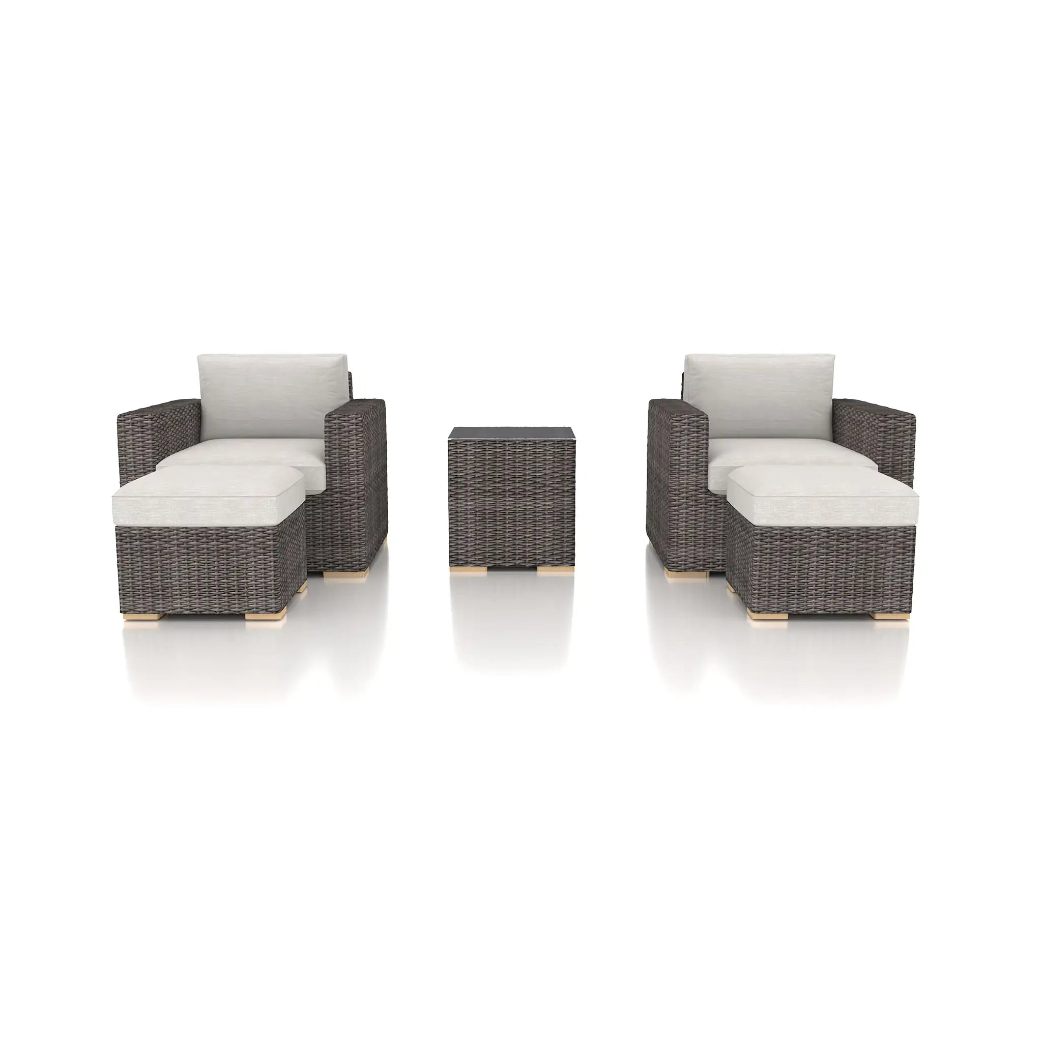 Perfect for both residential patios and commercial lounge areas, the Dune 5 Piece Club Chair Set reflects Harmonia Living's commitment to quality, style, and versatility. Elevate your outdoor space with this exquisite seating arrangement, where modern sophistication meets long-lasting comfort, ensuring that every moment spent outdoors is one of relaxation and refinement.