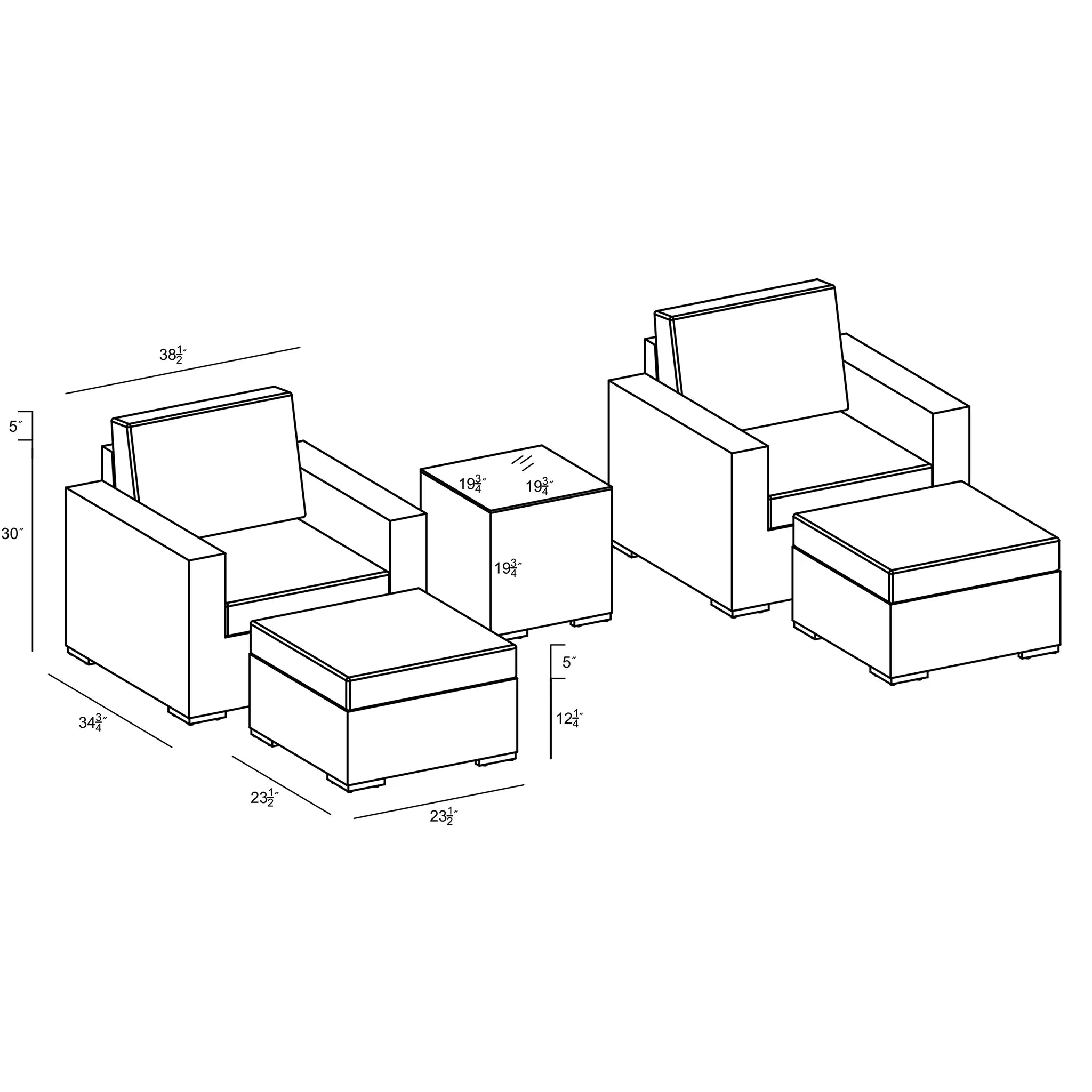 Built to withstand the elements, the Dune 5 Piece Club Chair Set features fully-welded aluminum frames, ensuring long-lasting strength and structural integrity. Each frame is treated with a high-quality powder-coated finish, offering superior resistance against rust, corrosion, and everyday wear. This protective layer keeps the set looking pristine through changing seasons, making it a reliable addition to any outdoor setting.