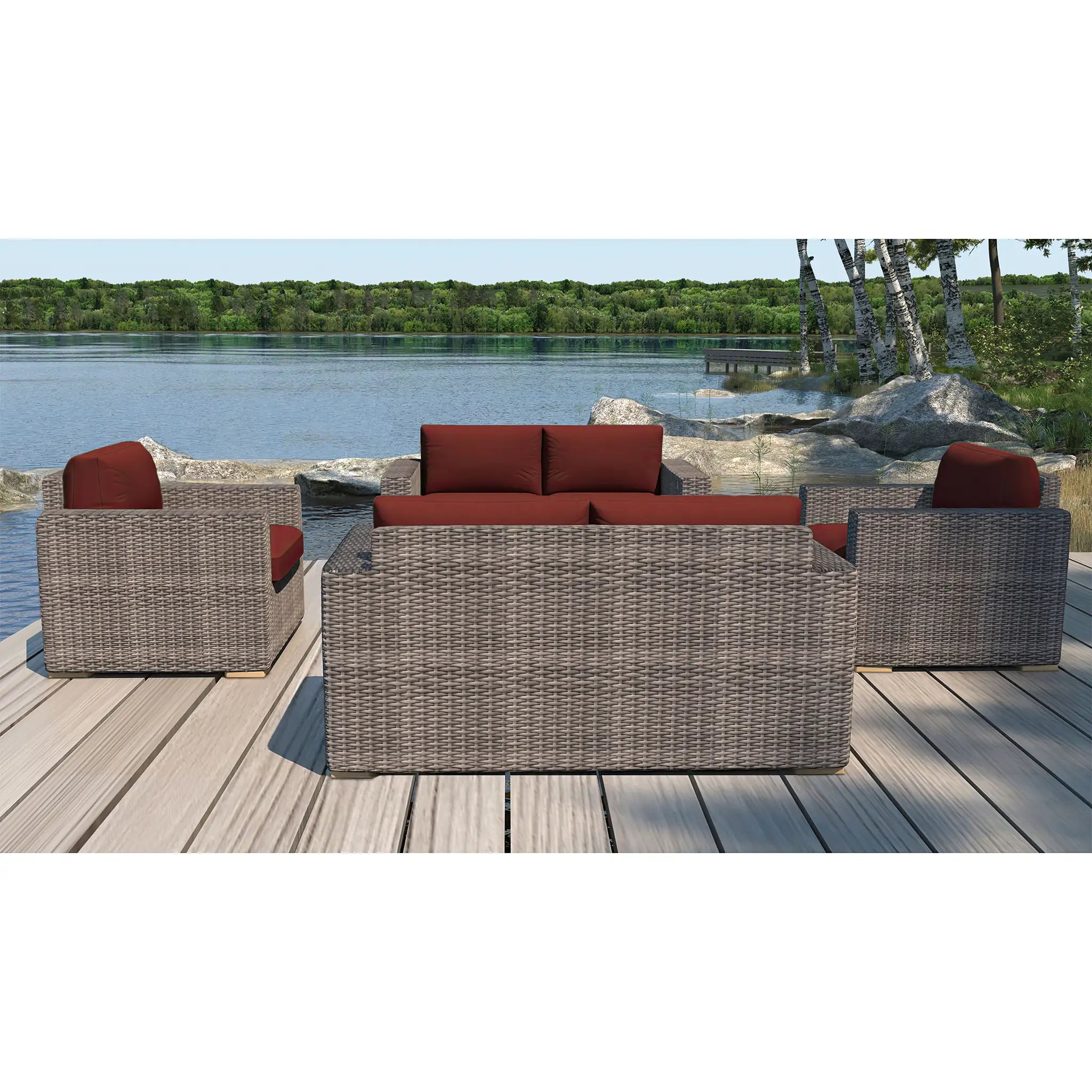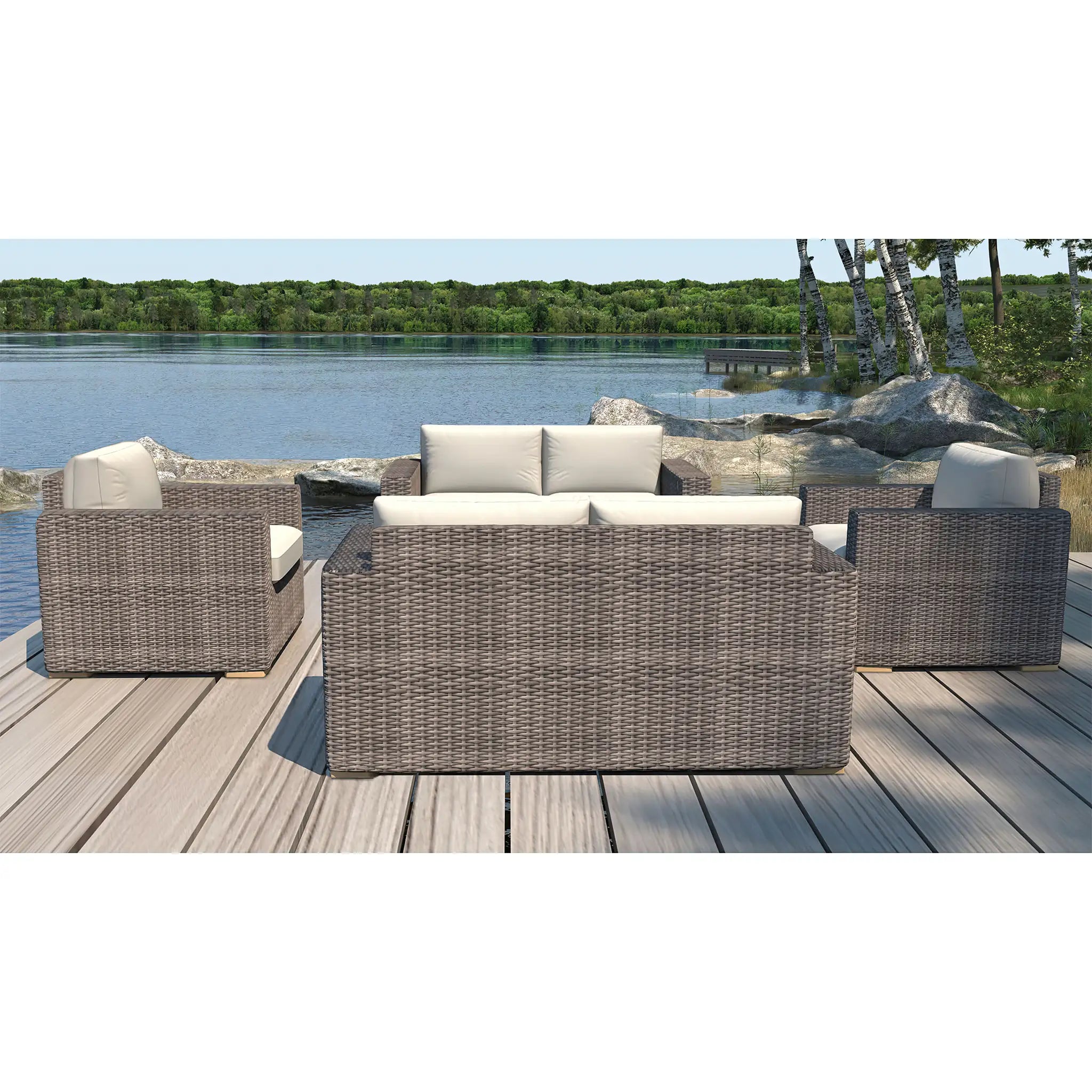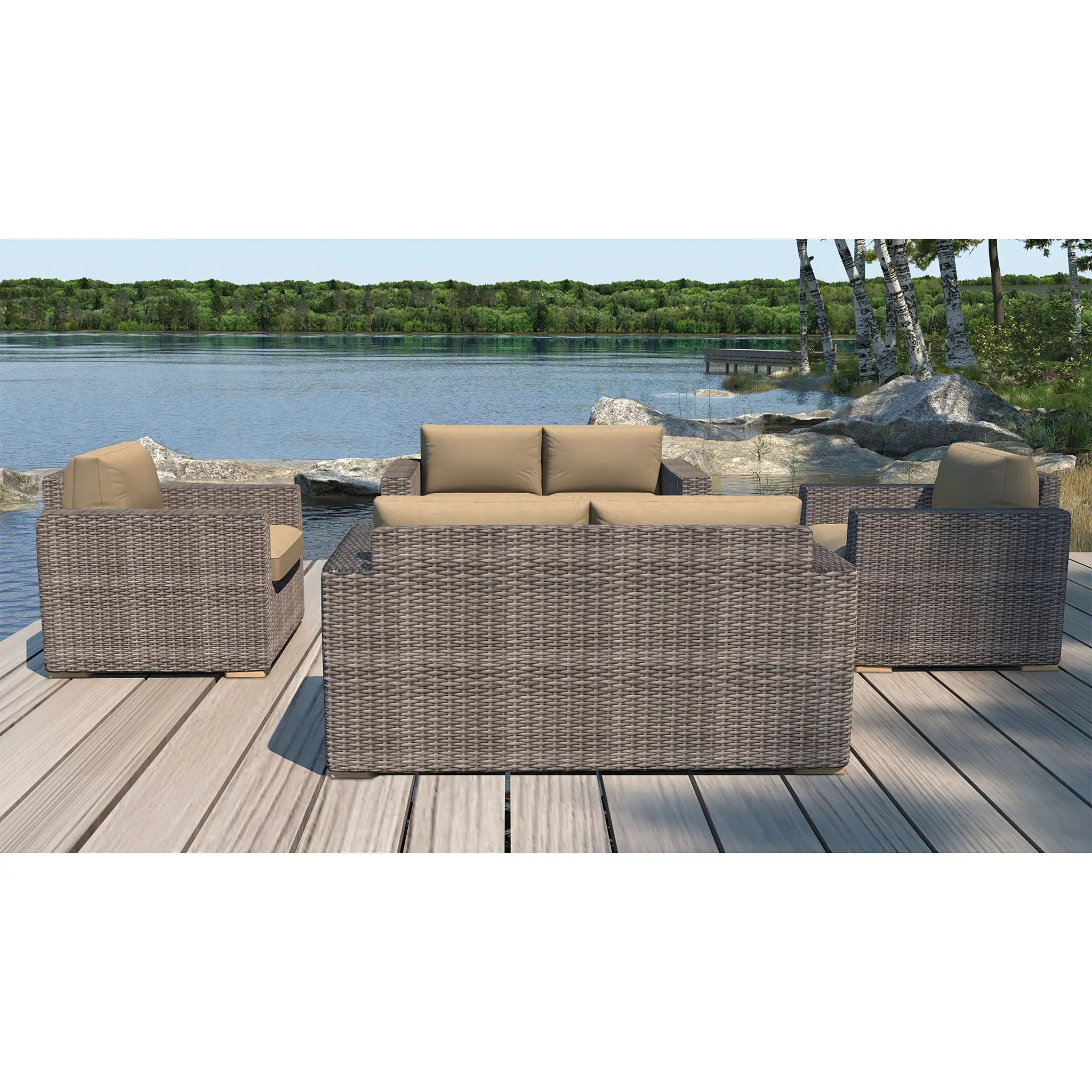 For added convenience, the tempered glass tabletop provides a durable and stylish surface, ideal for everyday use. Whether you're looking to create a welcoming lounge space or a stylish outdoor retreat, the Dune 5 Piece Double Loveseat Set delivers luxury, durability, and timeless appeal.