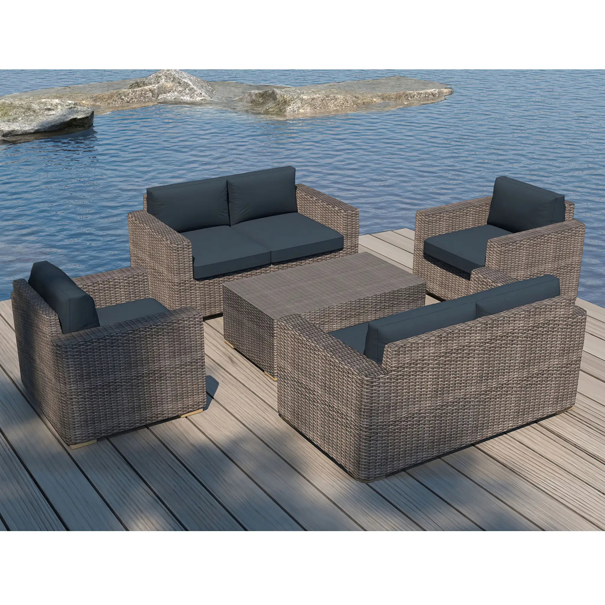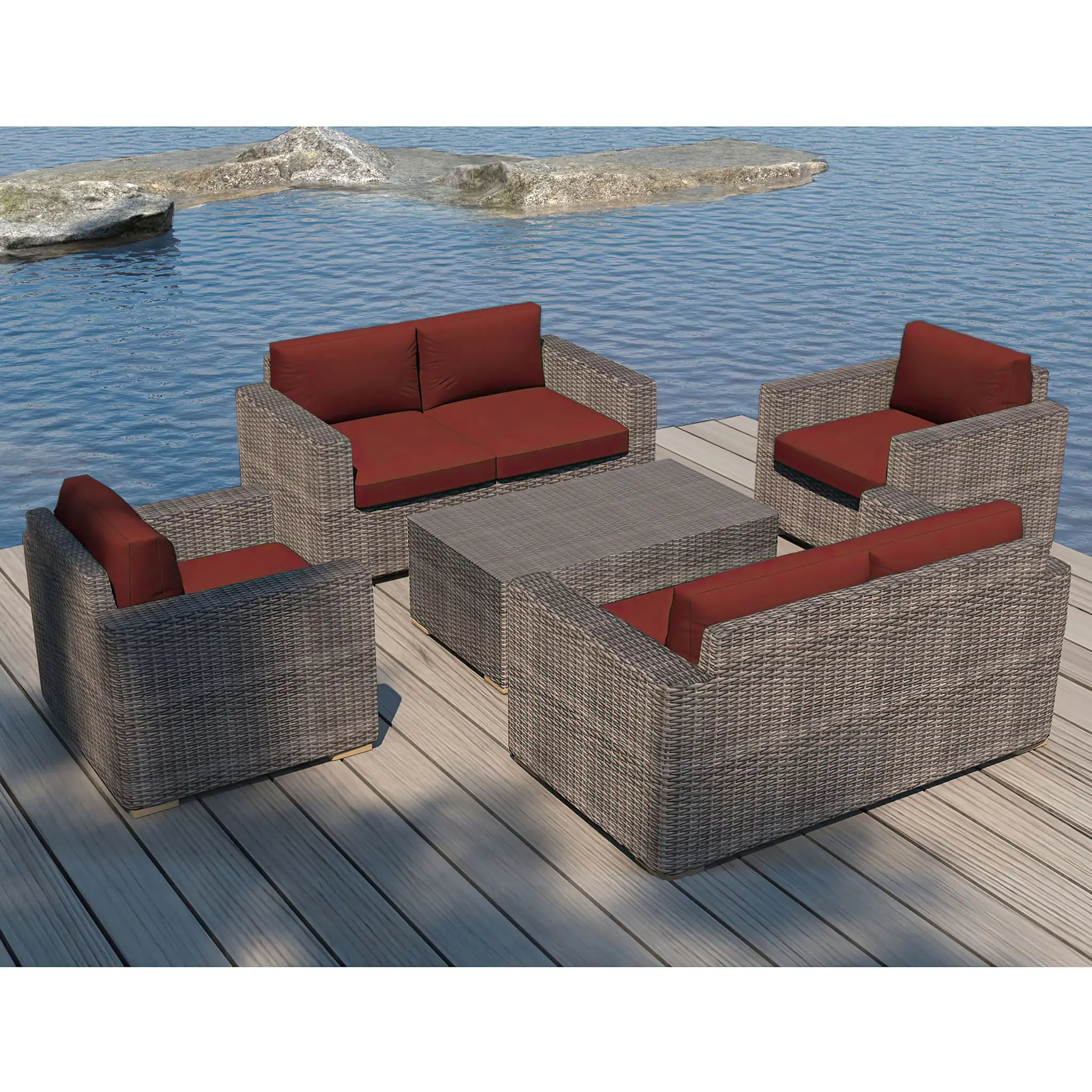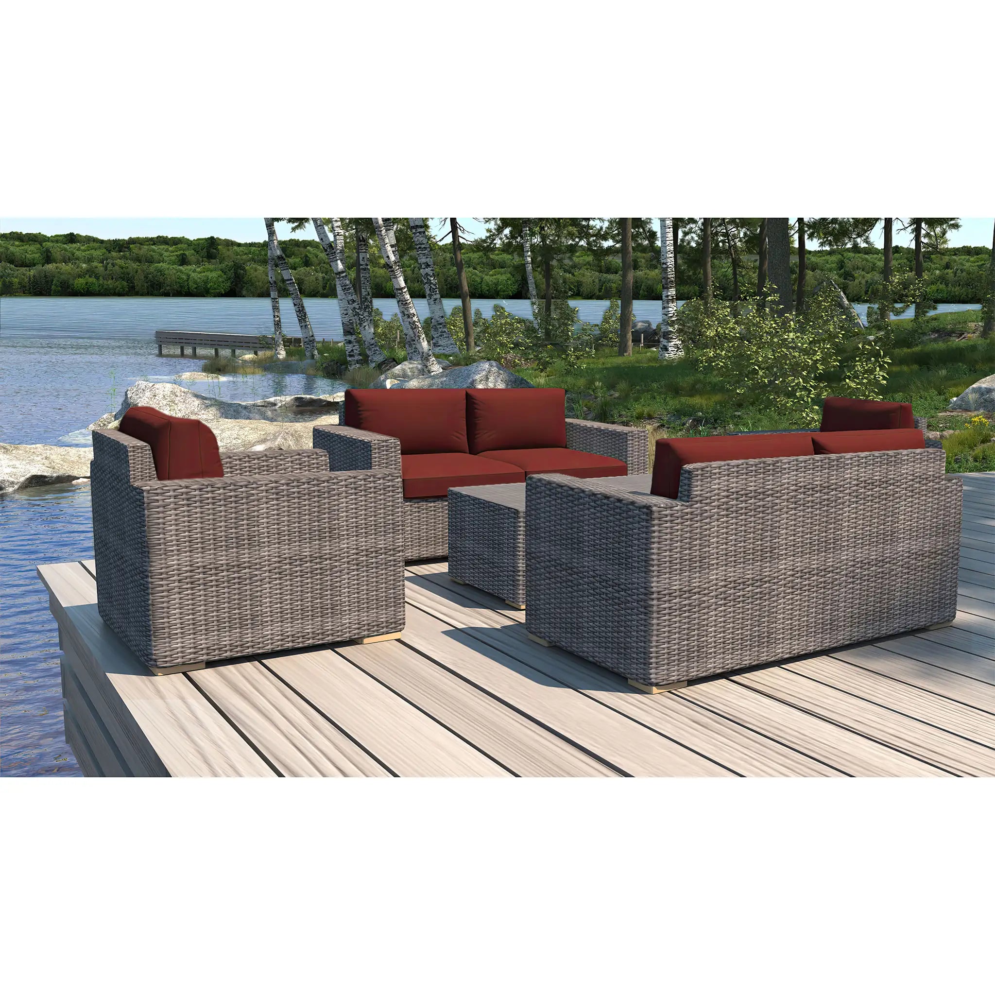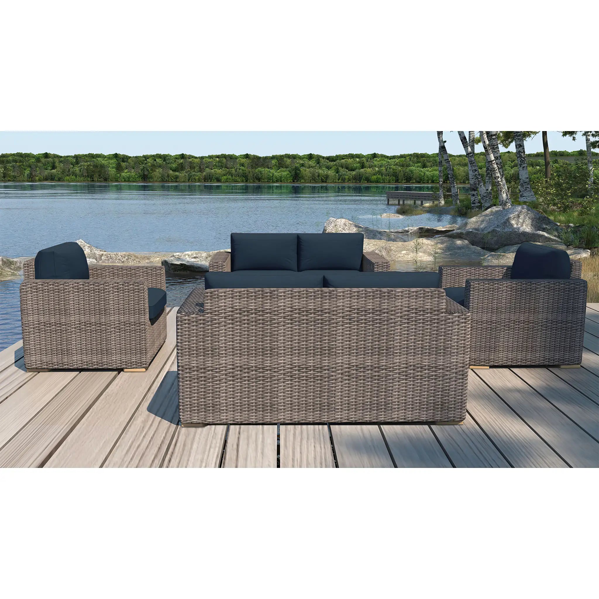 For added convenience, the tempered glass tabletop provides a durable and stylish surface, ideal for everyday use. Whether you're looking to create a welcoming lounge space or a stylish outdoor retreat, the Dune 5 Piece Double Loveseat Set delivers luxury, durability, and timeless appeal.