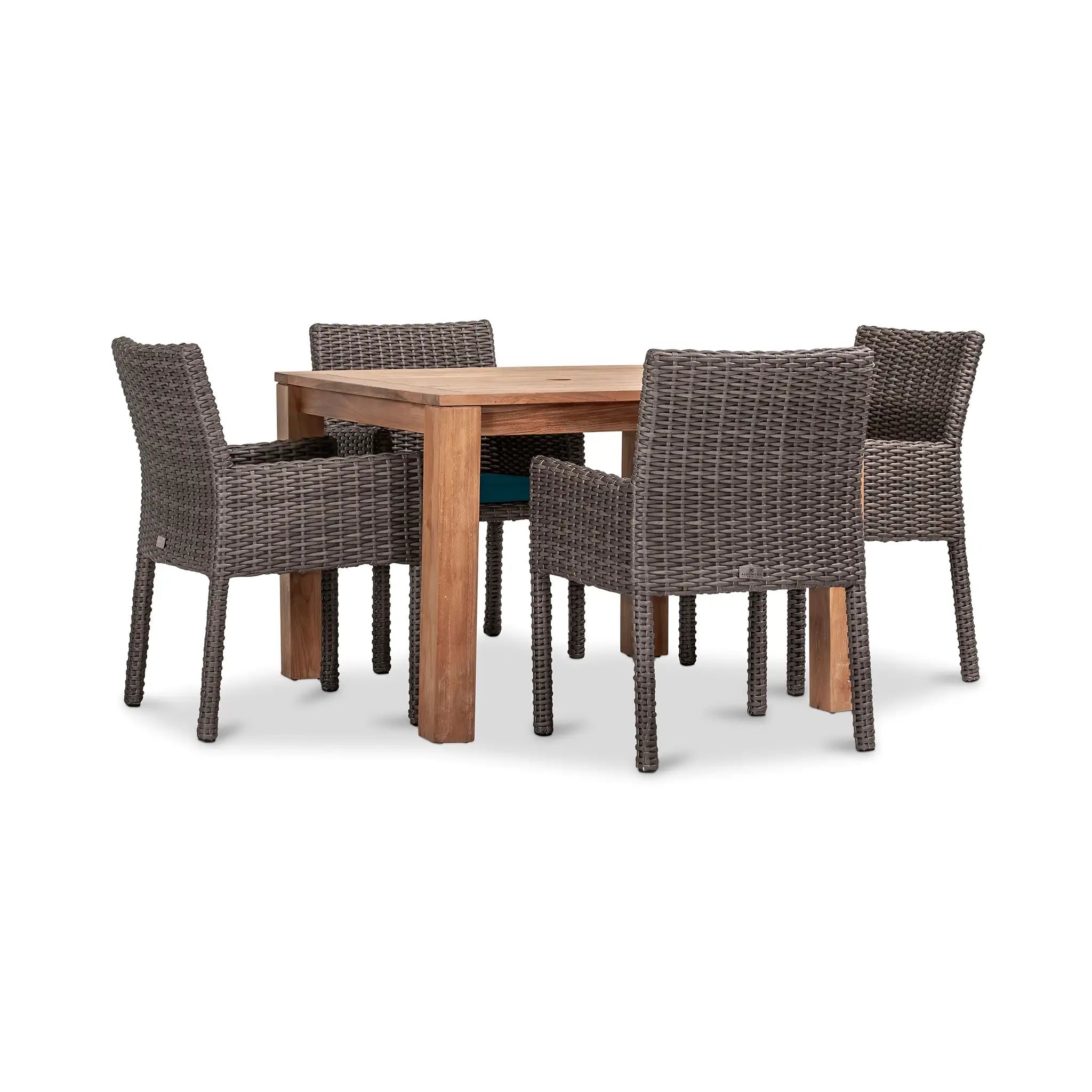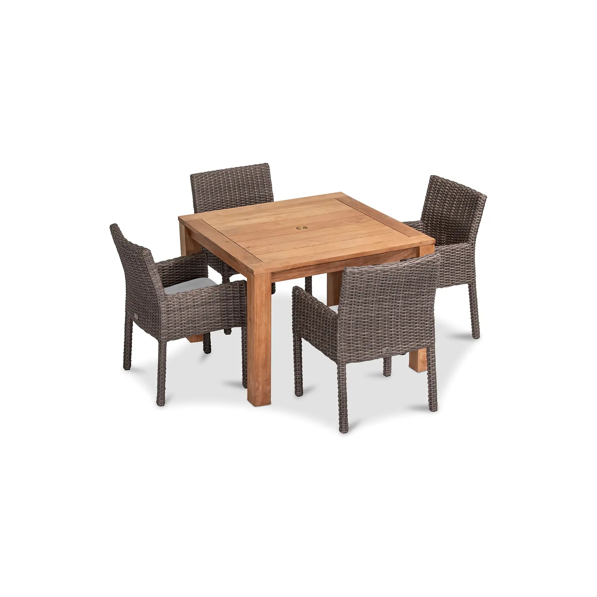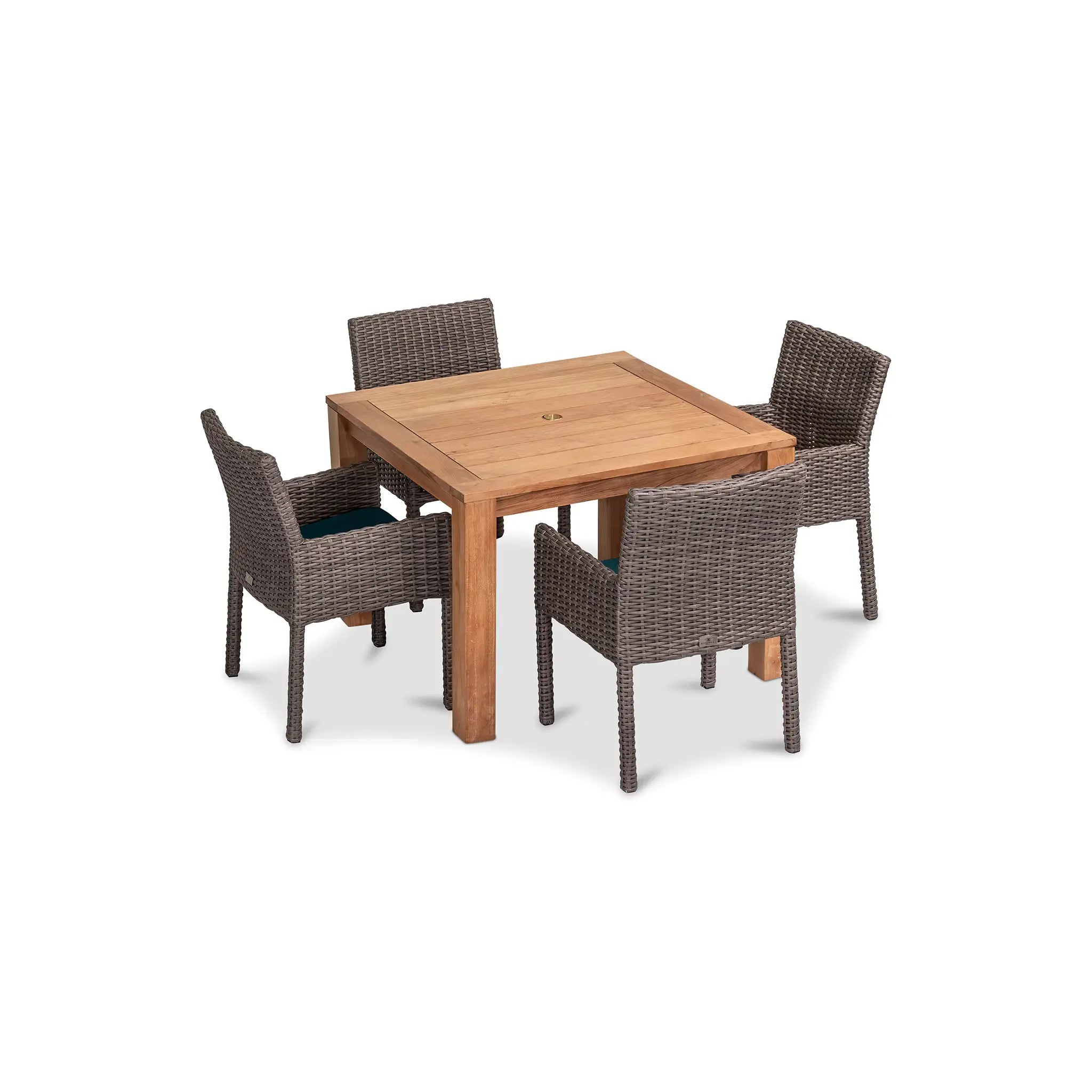 Designed to fit both residential and commercial settings, the Viento Teak 5 Piece Dining Set is an exceptional choice for those who value quality, comfort, and enduring beauty in their outdoor furnishings.