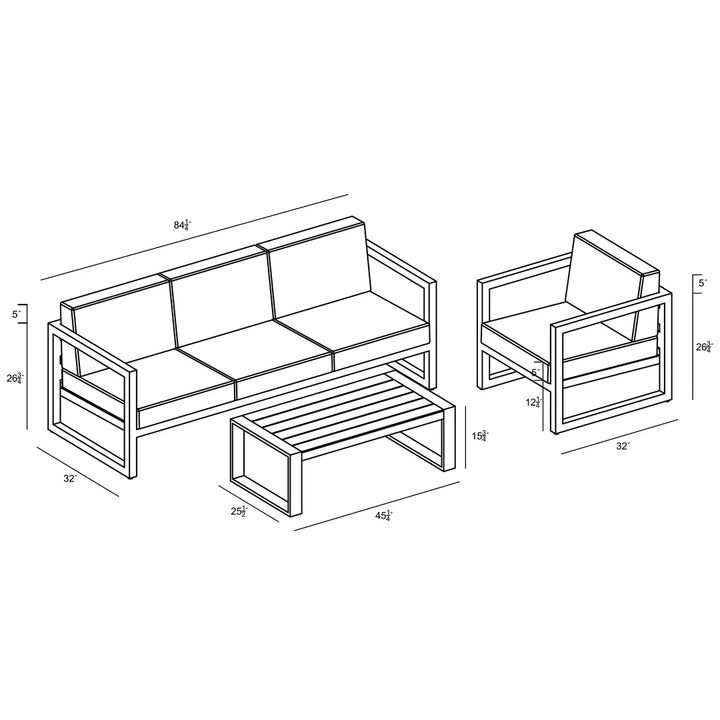 Designed to meet the needs of both residential and commercial settings, the Avion 3 Piece Sofa Set brings stylish functionality to any environment. Whether outfitting your home patio or creating a chic outdoor lounge for a hotel or restaurant, this set offers an elegant and durable seating solution that's built to last. Harmonia Living is committed to delivering exceptional furnishings that elevate your outdoor experience, ensuring that this set will be a cherished part of your space for years to come.