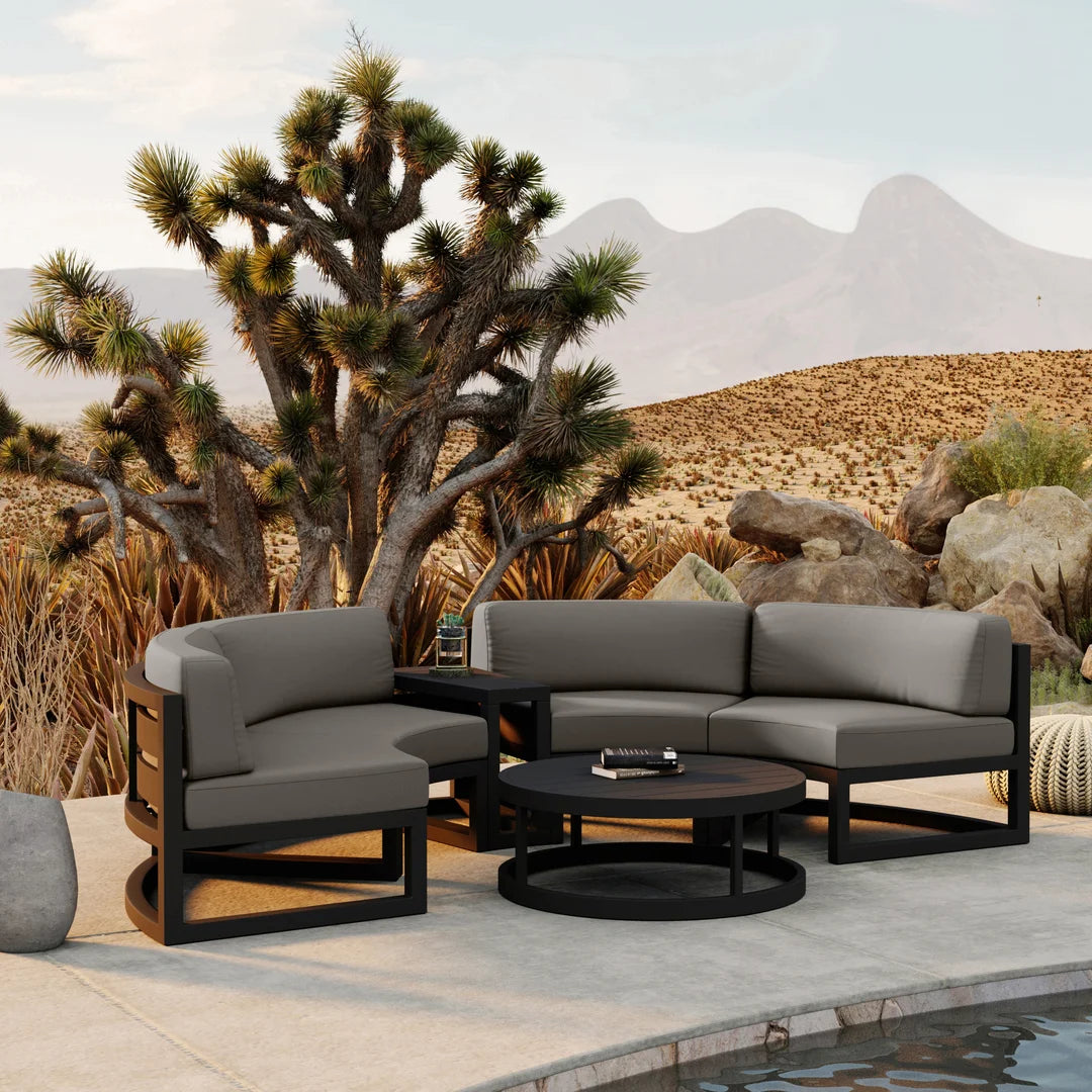 An inspired fusion of Midcentury Modernism and contemporary elegance, the Harmonia Living Avion 4 Piece Aluminum Curve Sectional Set transforms your outdoor space into a sophisticated retreat. With its gracefully curved silhouette and spacious deep seating, this collection delivers modern artistry, luxurious comfort, and versatile functionality, making it the perfect choice for stylish outdoor lounging and entertaining.