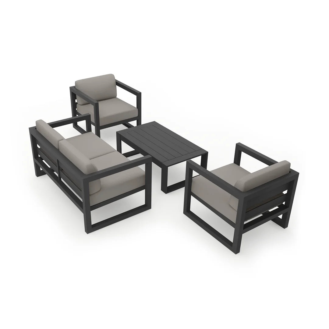 Crafted with fully-welded aluminum frames, this set is built for durability and performance in all weather conditions. The frames are treated with a powder-coated finish, ensuring they remain resistant to rust and corrosion, while also providing lasting beauty season after season. This makes the Avion set an excellent investment for outdoor living spaces, with the strength to withstand the elements and the elegance to stand out in any setting.
