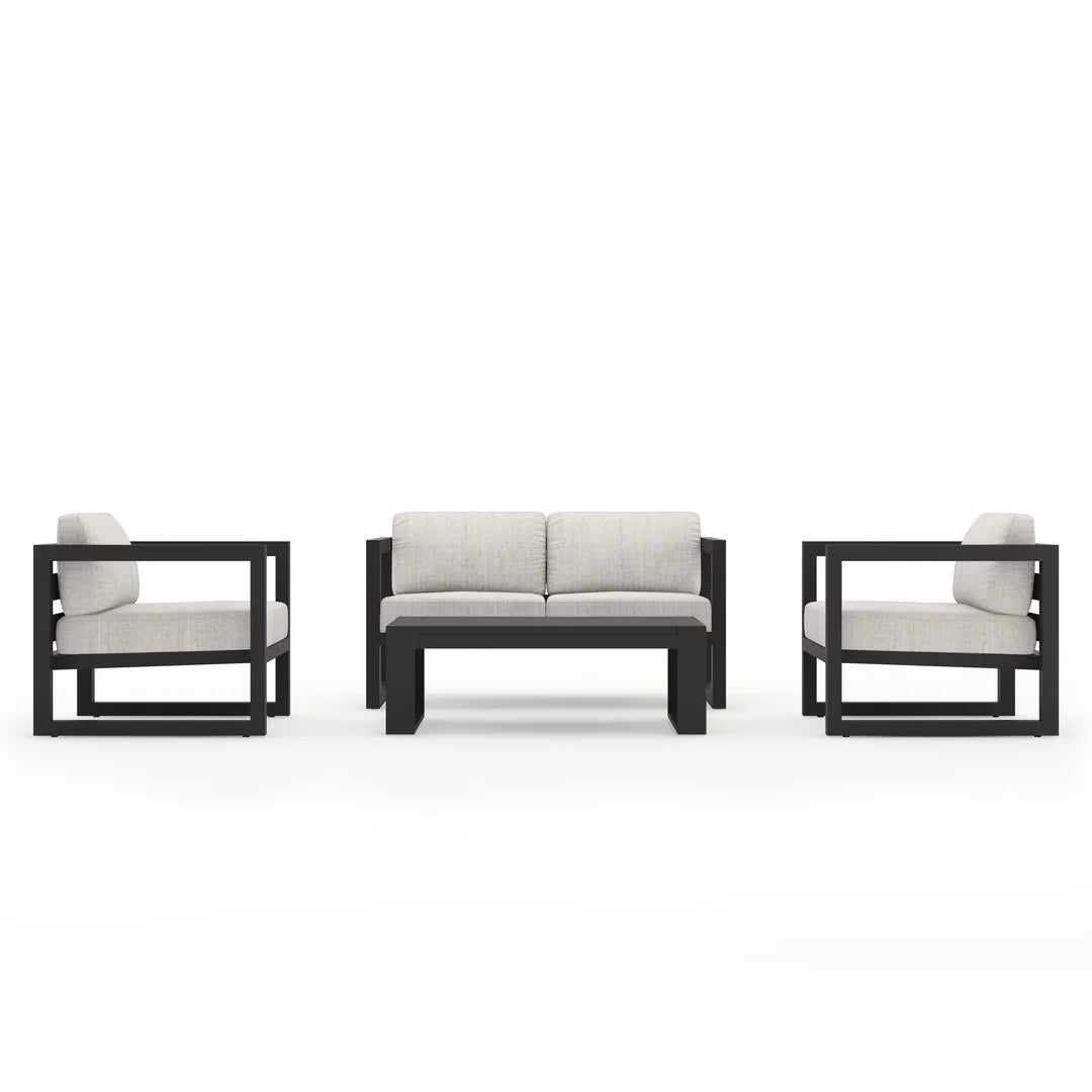An inspired blend of Midcentury Modernism and contemporary design, the Harmonia Living Avion 4 Piece Aluminum Loveseat Set adds an artful touch to your outdoor space. With its sleek silhouette and extra-spacious deep seating, this collection provides the perfect balance of style and comfort, offering an inviting setting for relaxation. Whether you're enjoying a quiet moment or hosting friends and family, the Avion set delivers a modern, sophisticated atmosphere for any occasion.