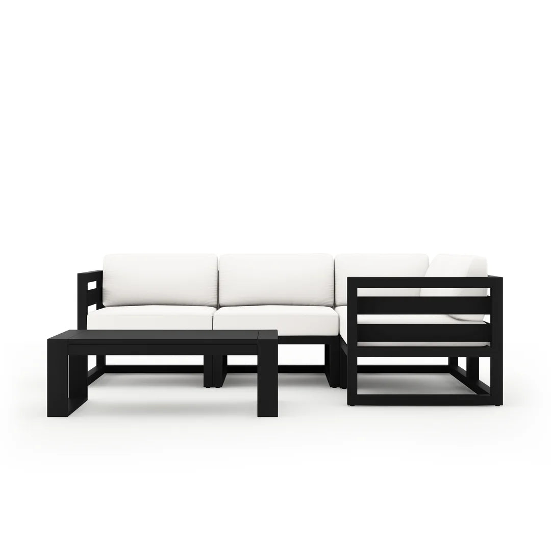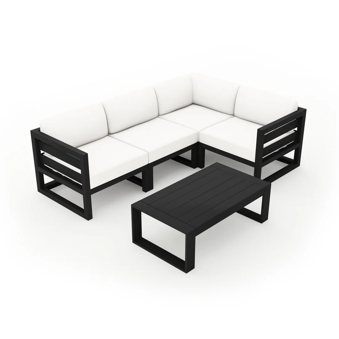 Harmonia Living Avion 5 Piece Aluminum Sectional Set - Black - Canvas Natural