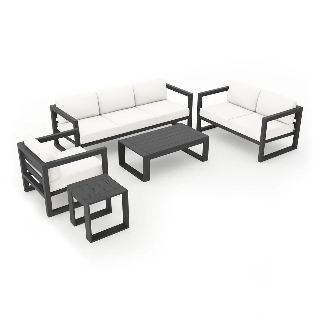 Designed to meet the needs of both residential and commercial settings, the Avion 5 Piece Sofa Set brings stylish functionality to any environment. Whether outfitting your home patio or creating a chic outdoor lounge for a hotel or restaurant, this set offers an elegant and durable seating solution that's built to last. Harmonia Living is committed to delivering exceptional furnishings that elevate your outdoor experience, ensuring that this set will be a cherished part of your space for years to come.