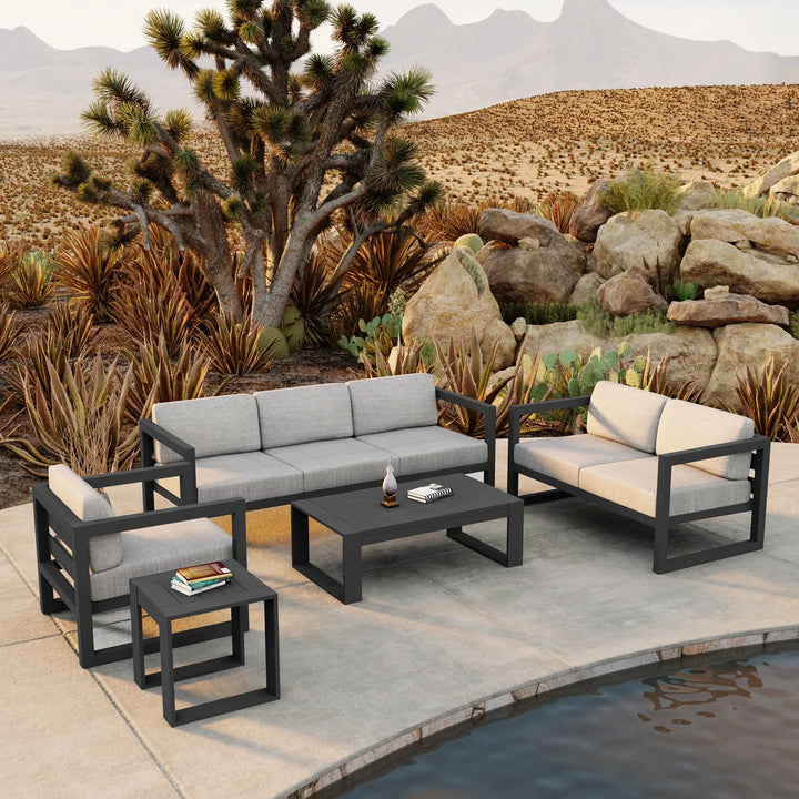 Designed to meet the needs of both residential and commercial settings, the Avion 5 Piece Sofa Set brings stylish functionality to any environment. Whether outfitting your home patio or creating a chic outdoor lounge for a hotel or restaurant, this set offers an elegant and durable seating solution that's built to last. Harmonia Living is committed to delivering exceptional furnishings that elevate your outdoor experience, ensuring that this set will be a cherished part of your space for years to come.