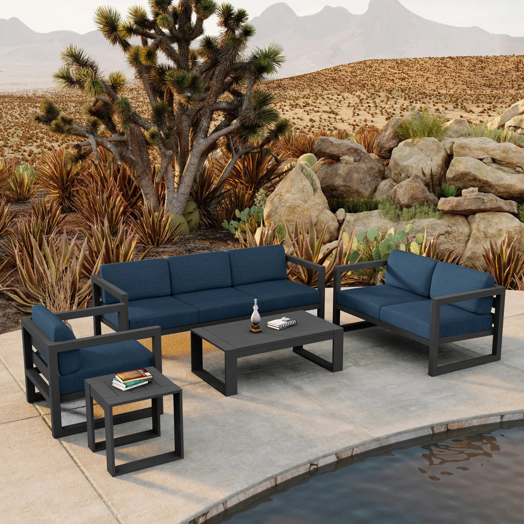 Harmonia Living Avion 5 Piece Aluminum Sofa Set - Slate - Spectrum Indigo