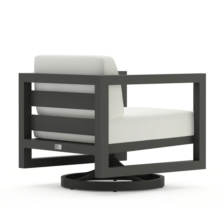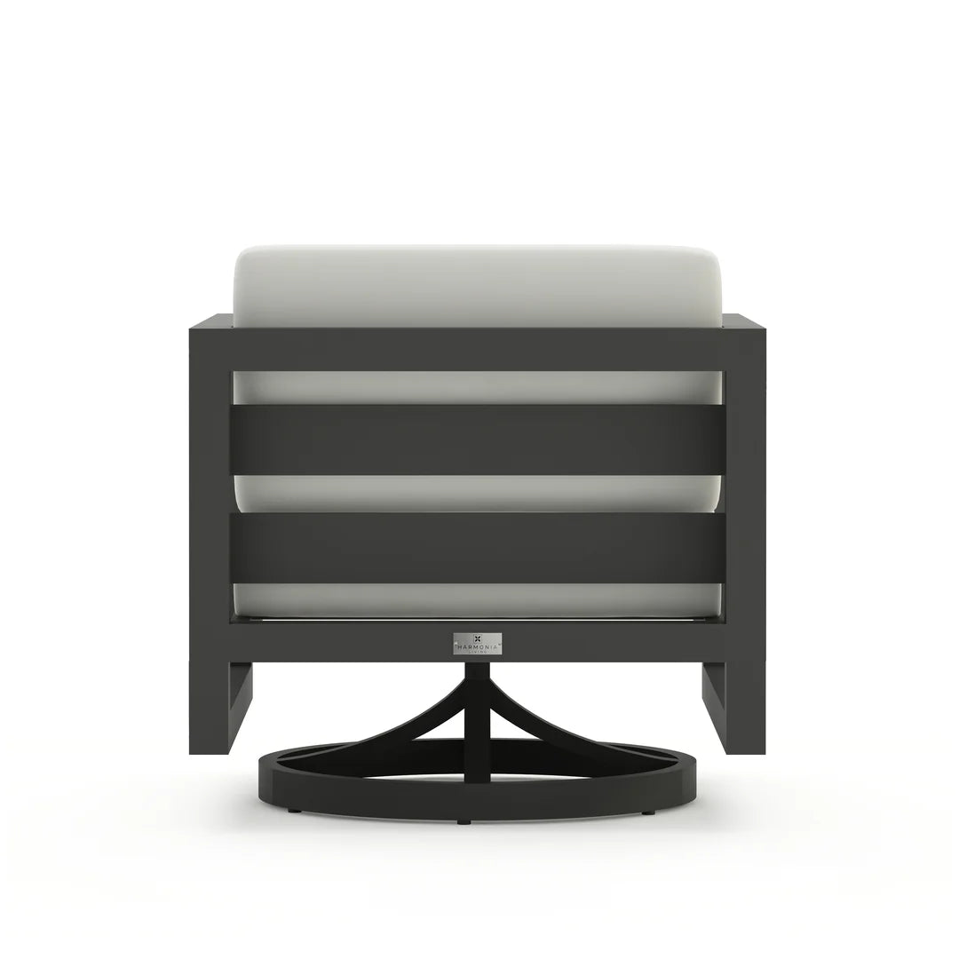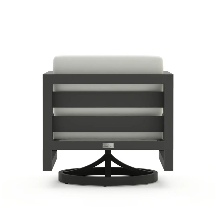 The Harmonia Living Avion Aluminum Swivel Rocker is a perfect fusion of Midcentury Modern aesthetics and contemporary design, delivering both sophistication and comfort to your outdoor space. With its sleek silhouette, bold geometric lines, and generously proportioned deep seating, this swivel rocker invites you to sit back and relax in style.