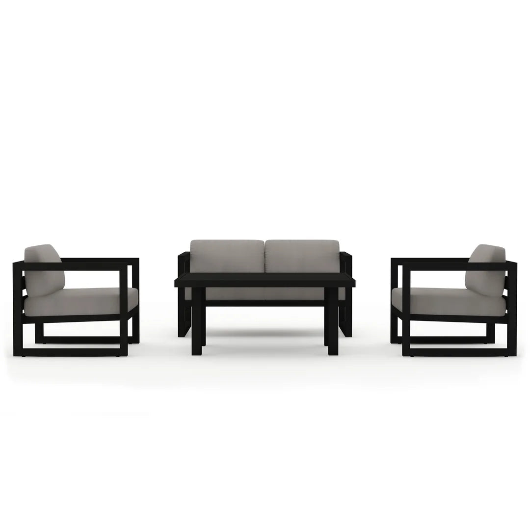 Harmonia Living Avion Classic 4 Piece Aluminum Loveseat Set - Black - Canvas Charcoal