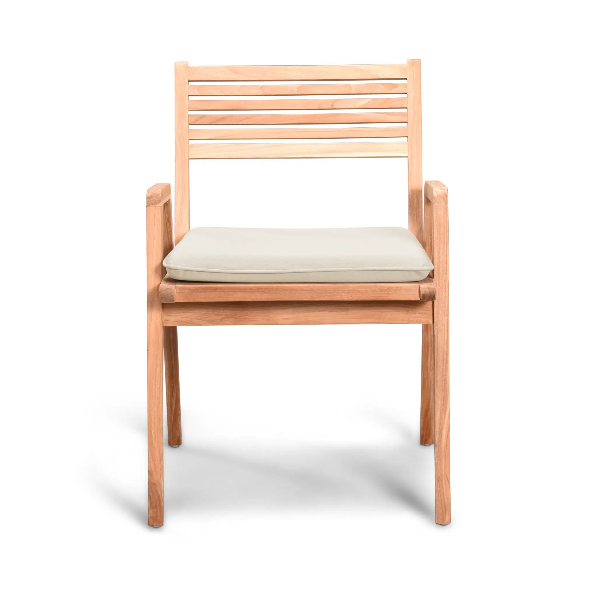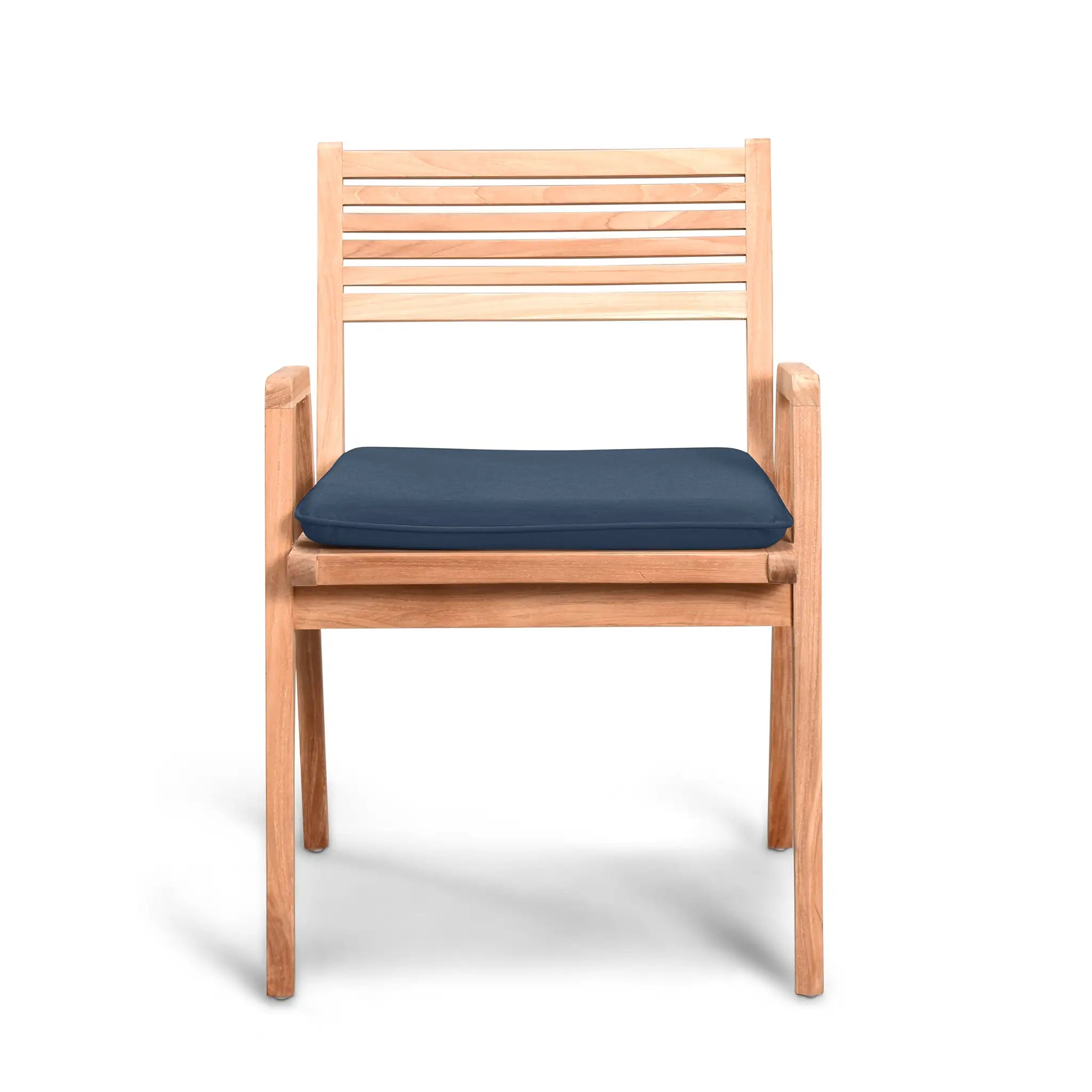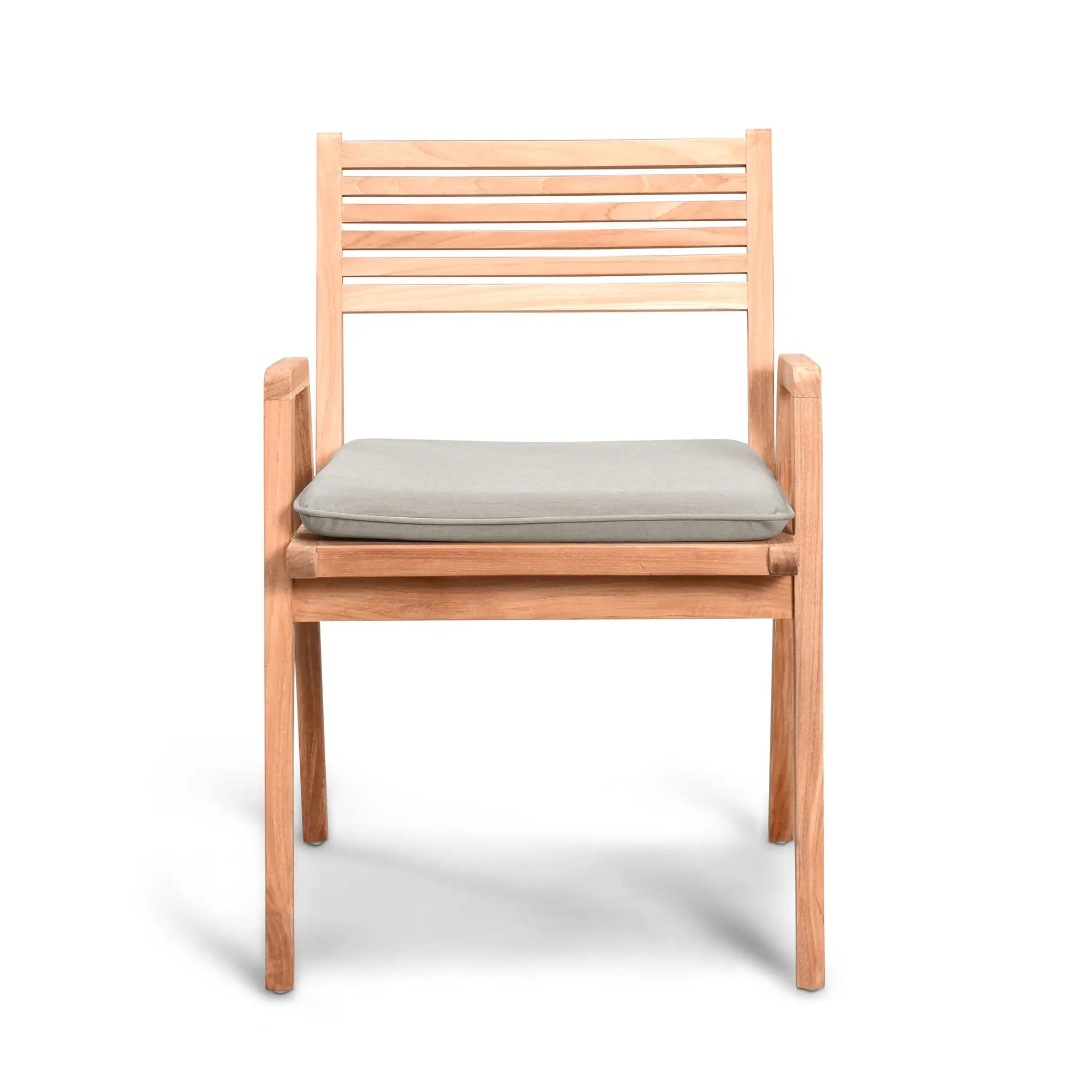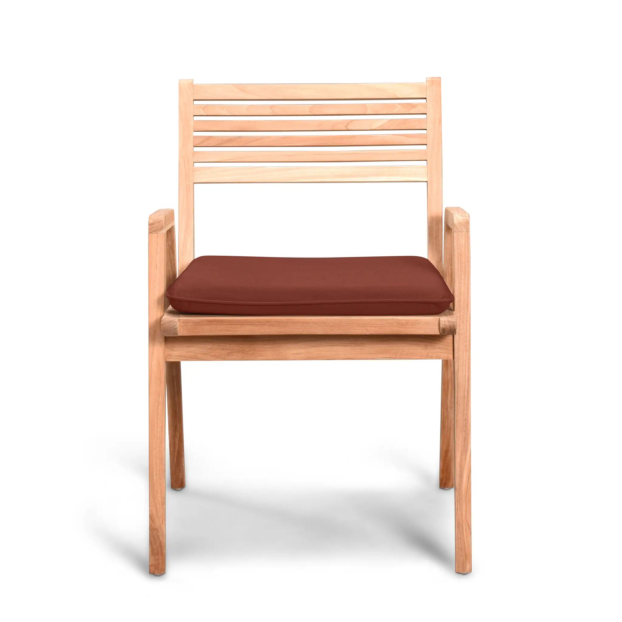 Complementing the table are the Link dining chairs, which feature a unique blend of modern aesthetics and traditional sensibilities. Their sleek yet tailored design provides a polished, structured look while ensuring unmatched comfort and support. The chairs are also crafted from sustainably harvested, Grade A teak wood, ensuring superior strength and resistance to outdoor elements. For added comfort, optional cushions are available, made in the USA using quick-drying Dacron fill and UV-treated, marine-grade PremoBond thread. These cushions are crafted from high-performance Sunbrella, Outdura, and Revolution fabrics, which are fade-resistant, easy to maintain, and backed by a 5-year warranty. Plus, with Harmonia Living's Quick-Ship Program, you can choose from nine stylish Sunbrella fabric options that are ready to ship within days.