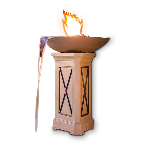 The Marseille Fire Bowl with Water Spout is designed for use with Natural Gas or Hard Line Propane Gas, but can be used with an external Propane Gas Tank. With a matching Pedestal, available in 44" or 54" heights, your propane gas tank will be covered and your bowl will gain some additional flair, its water now cascading down an even more impressive distance.