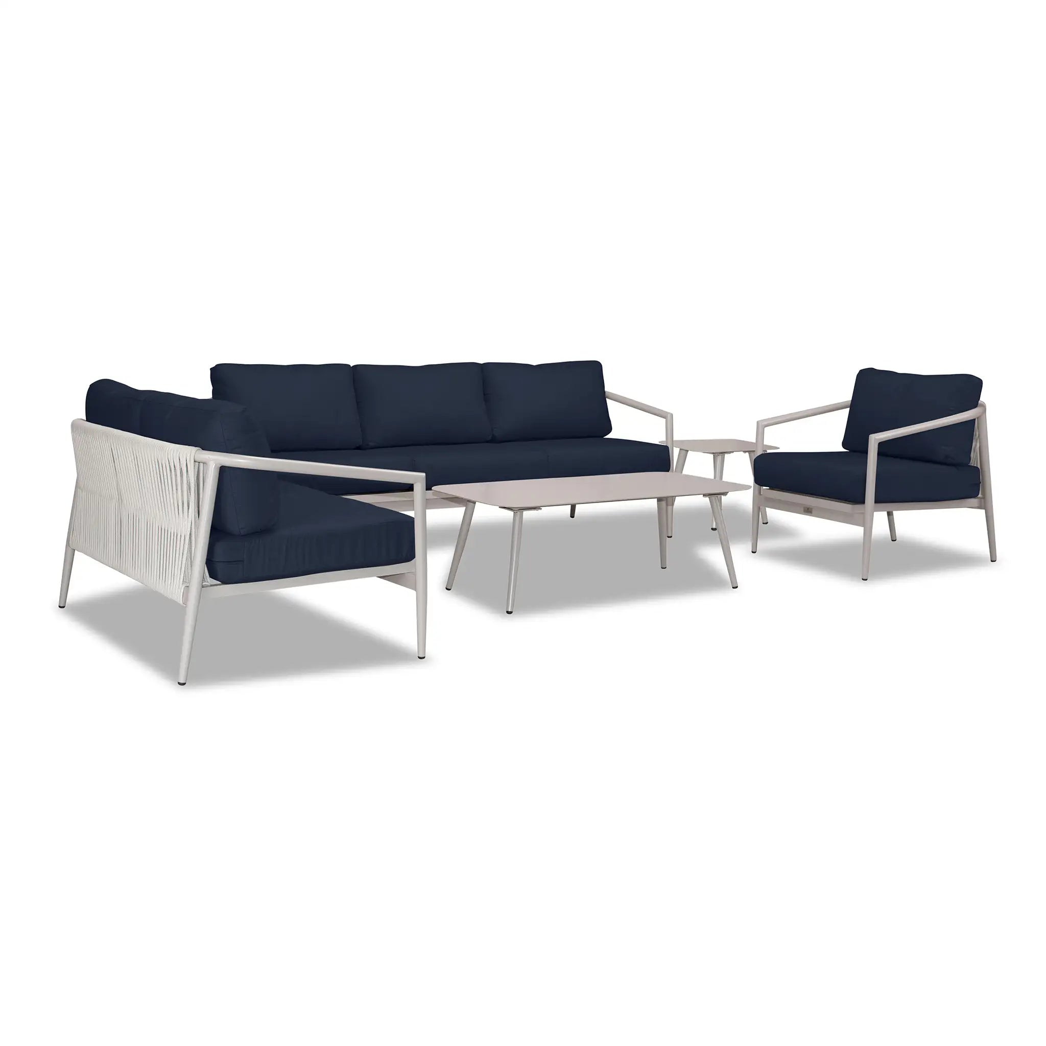 Perfectly suited for both residential and commercial settings, the Olio 5 Piece Sofa Set is a versatile, high-end addition to any sophisticated outdoor living area, bringing style, durability, and unparalleled comfort to your space.