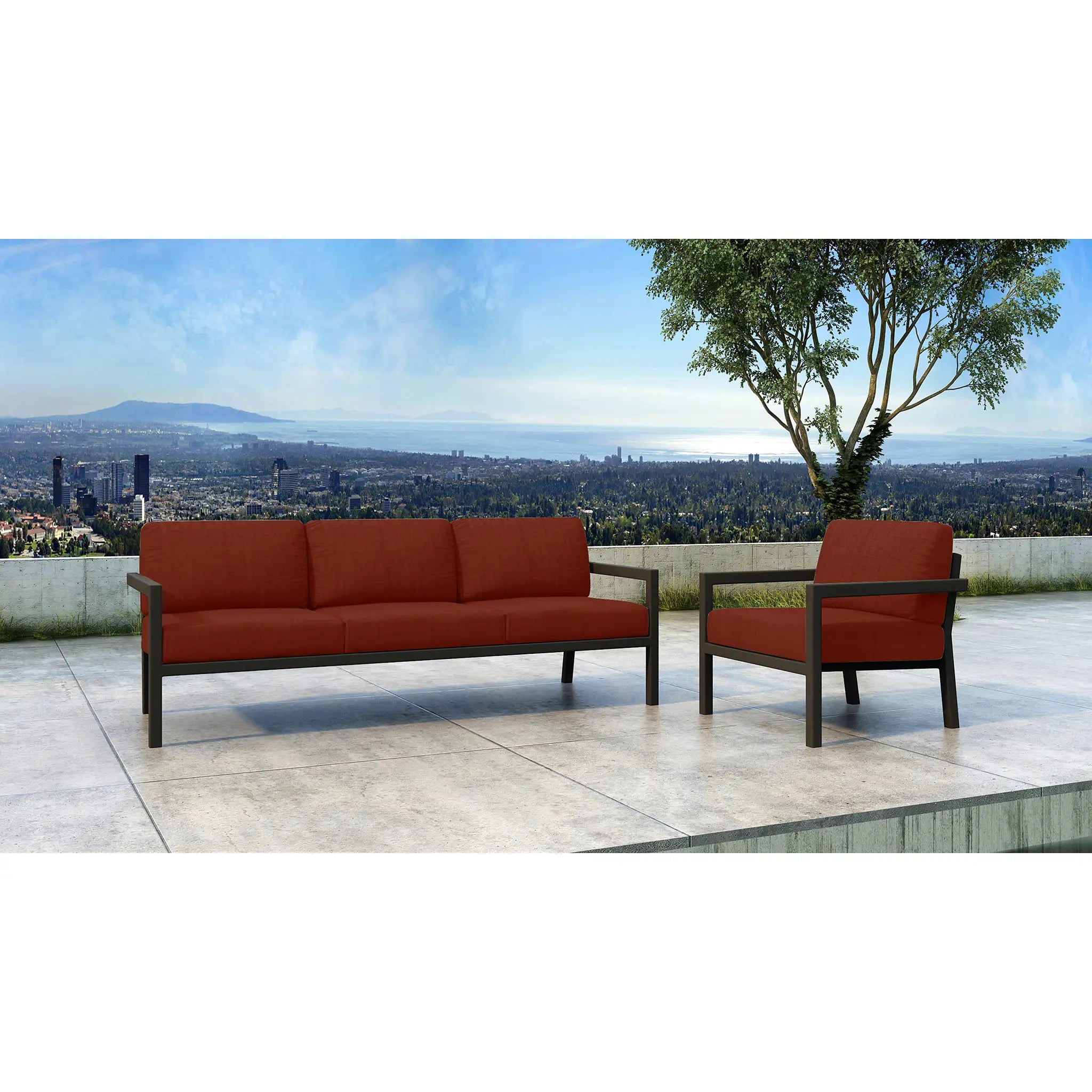 The Harmonia Living Pacifica 2 Piece Aluminum Sofa Set - Slate seamlessly blends modern sophistication with outdoor comfort, making it an ideal choice for any patio or outdoor area. Designed to enhance your living space, this set features a minimalist aesthetic with plush cushions and gentle, inviting angles that suit both small and large patios. Whether you are creating a cozy nook for relaxation or a chic entertaining space, this sofa set delivers on both style and function. Its sleek lines and understated elegance ensure it fits effortlessly with a variety of outdoor decors, transforming your space into a serene retreat.