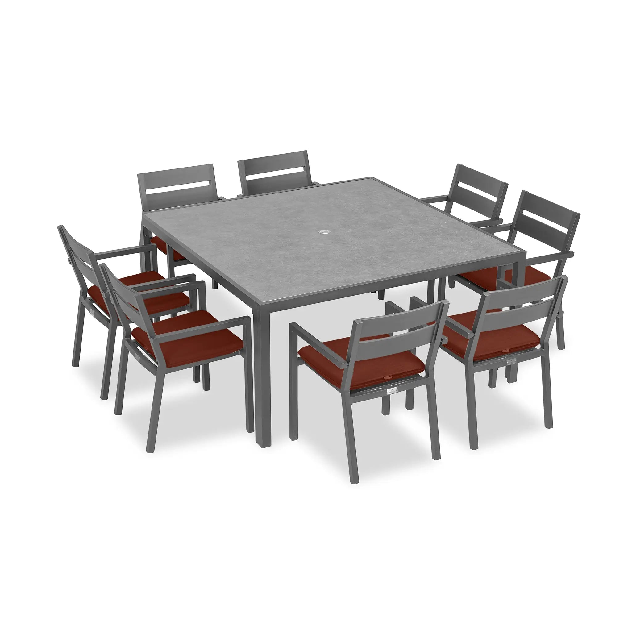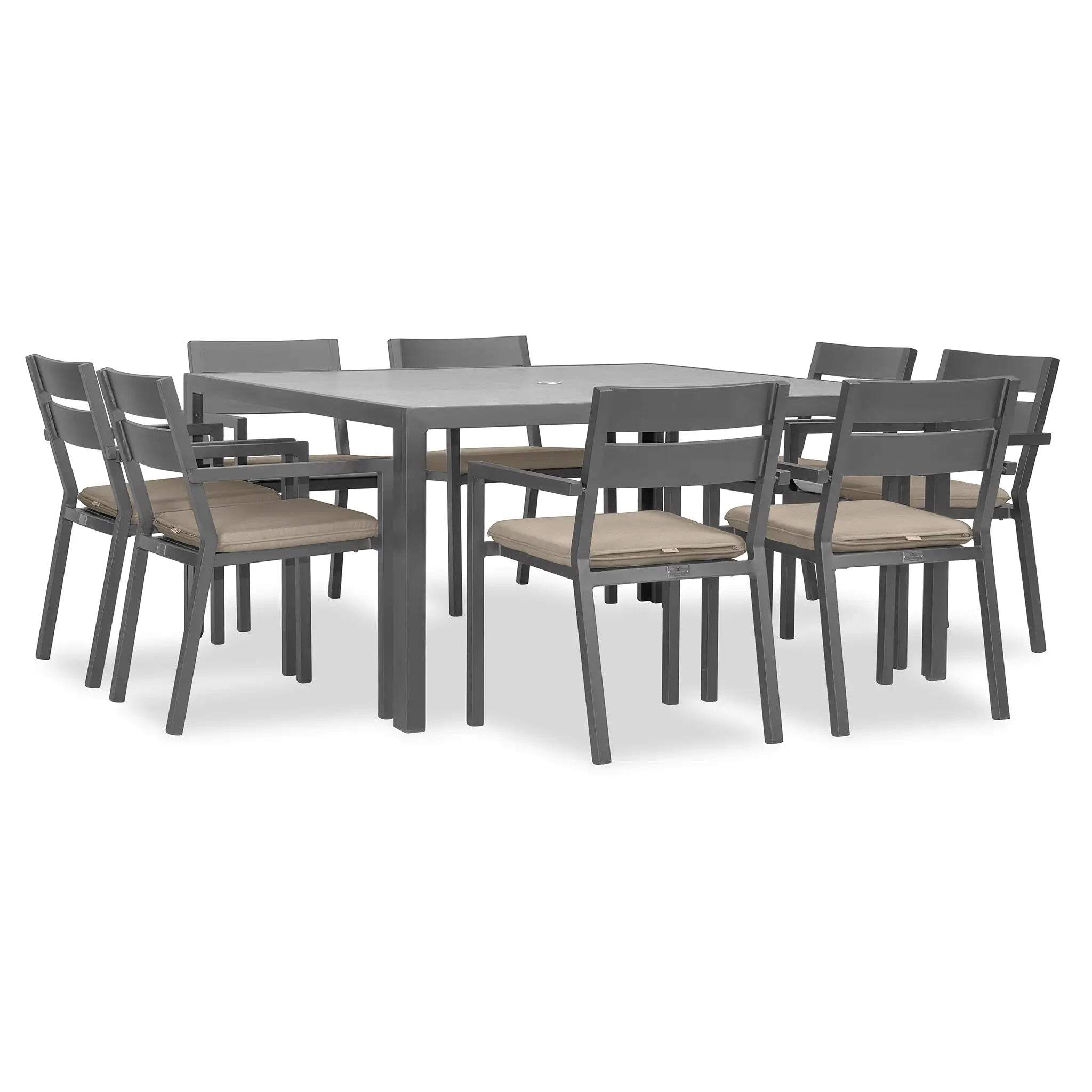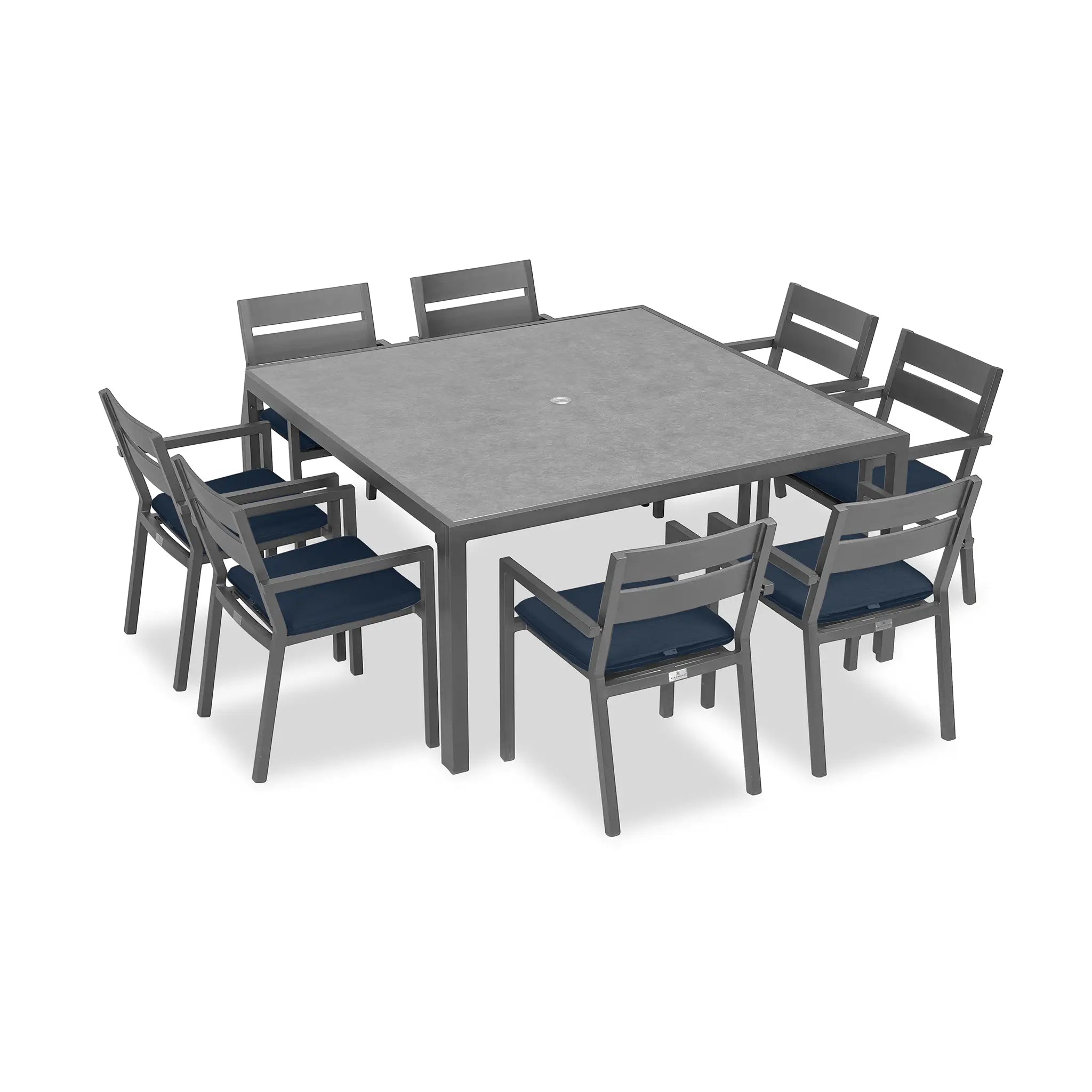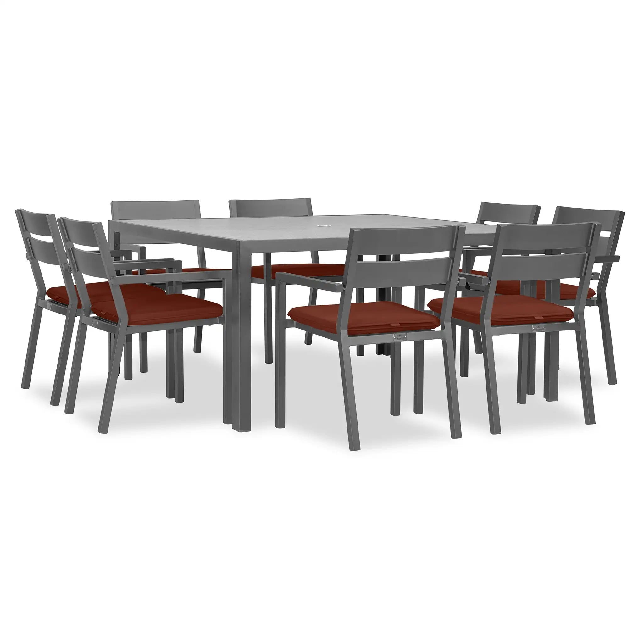 The Harmonia Living Pacifica 9 Piece Aluminum Square Dining Set - Slate is designed to bring a perfect balance of refinement and relaxation to your outdoor space. With its clean lines, gentle angles, and minimalist aesthetic, this dining set provides a sophisticated yet inviting atmosphere for patios both large and small. Whether you're hosting an elegant dinner party or enjoying a casual meal with family, the Pacifica collection delivers both style and comfort, making it an essential addition to any outdoor dining area.