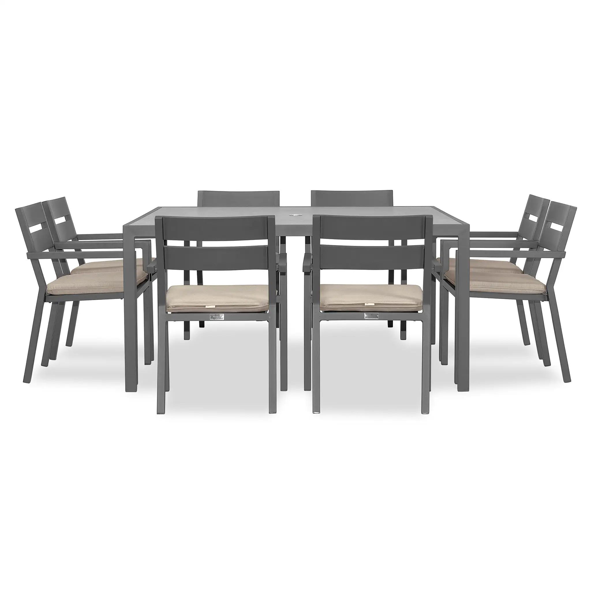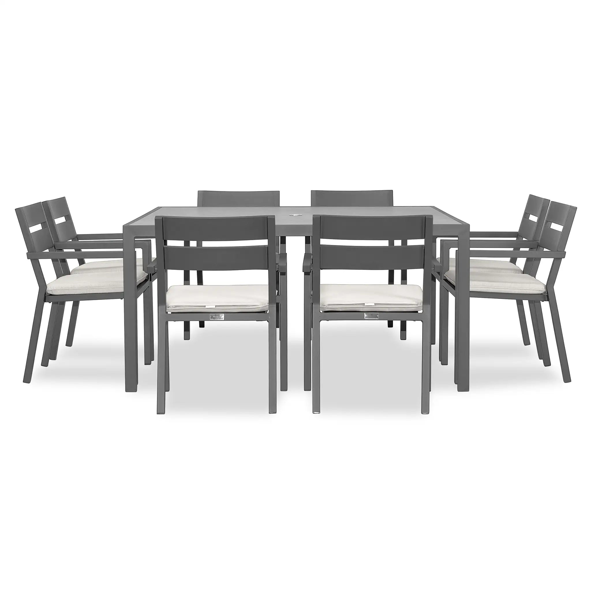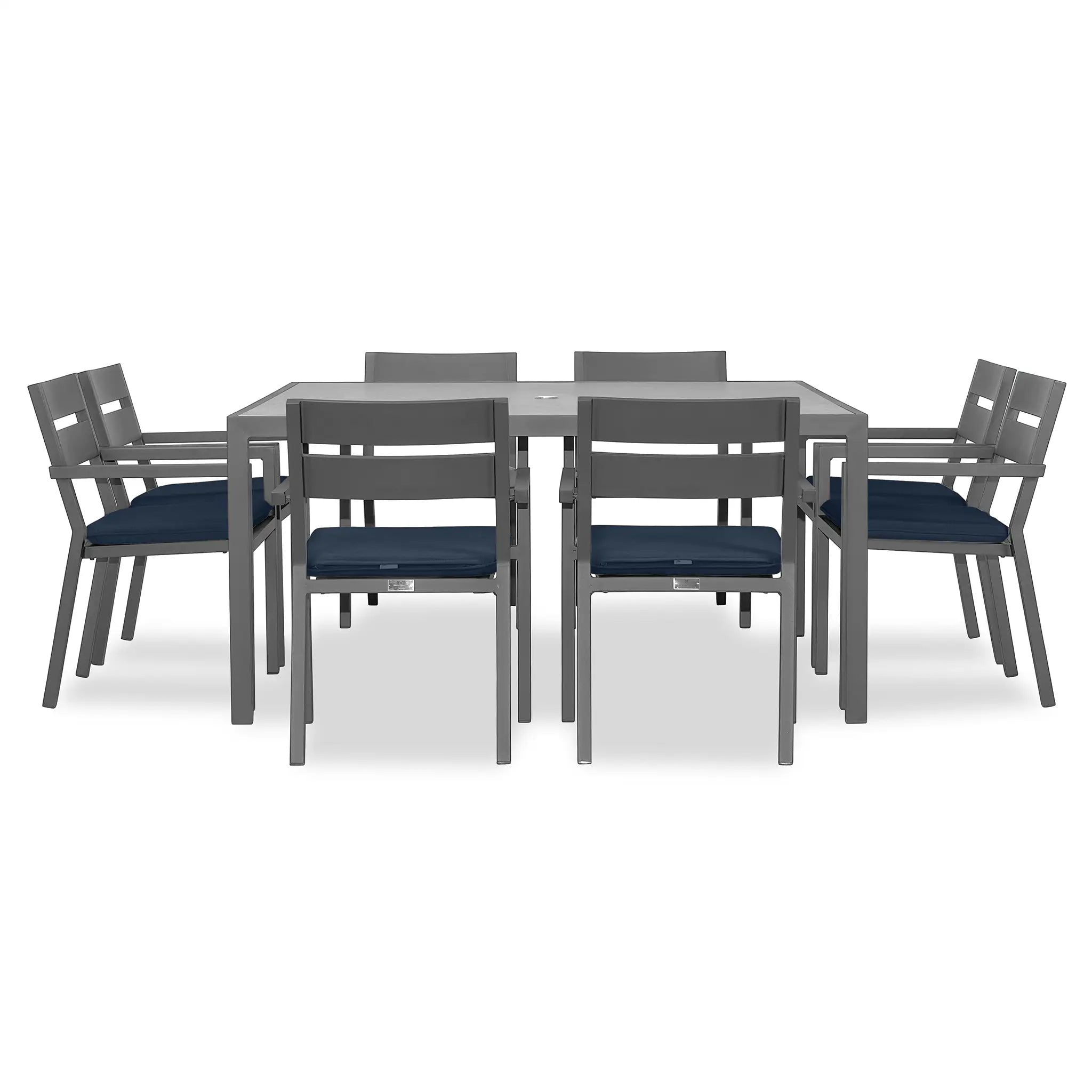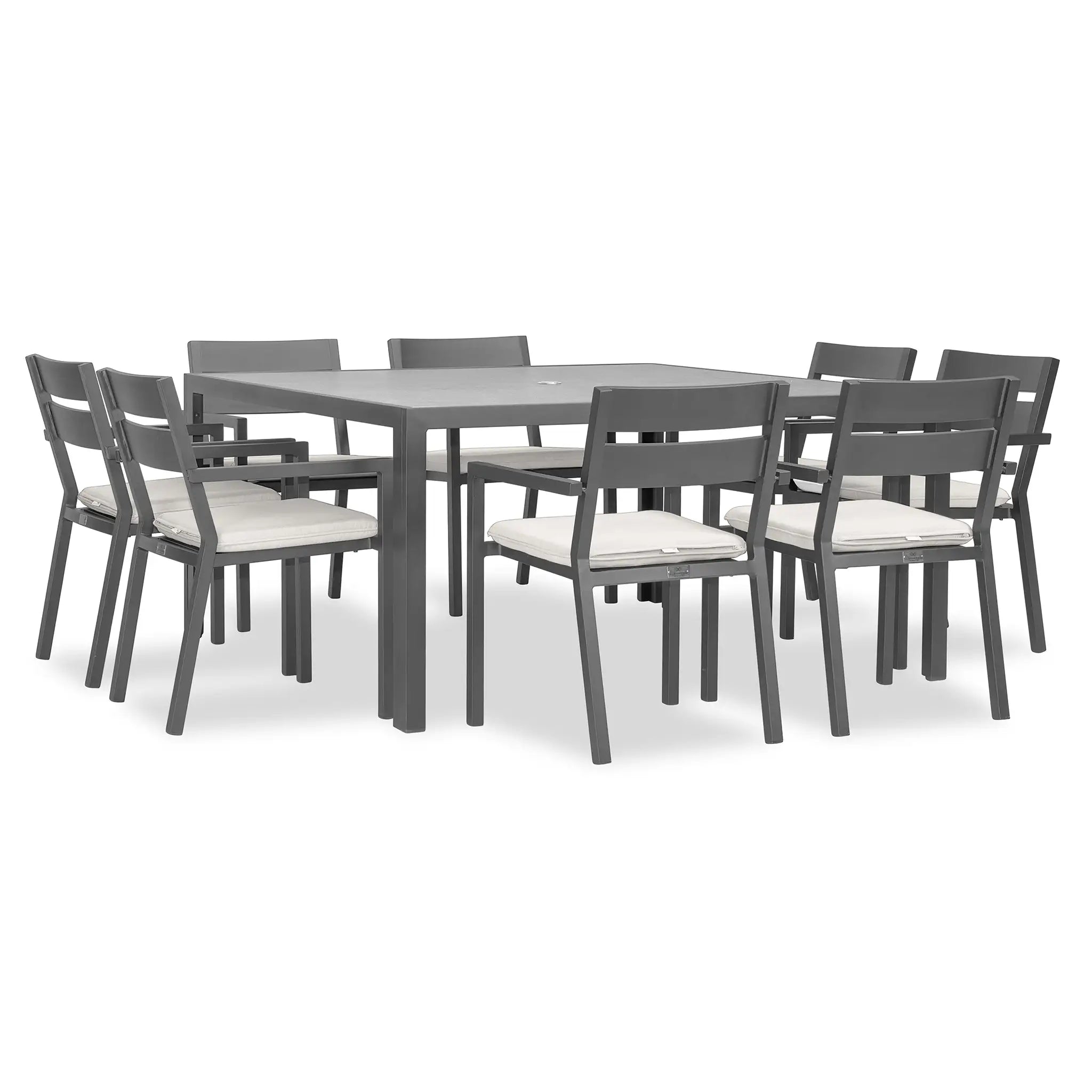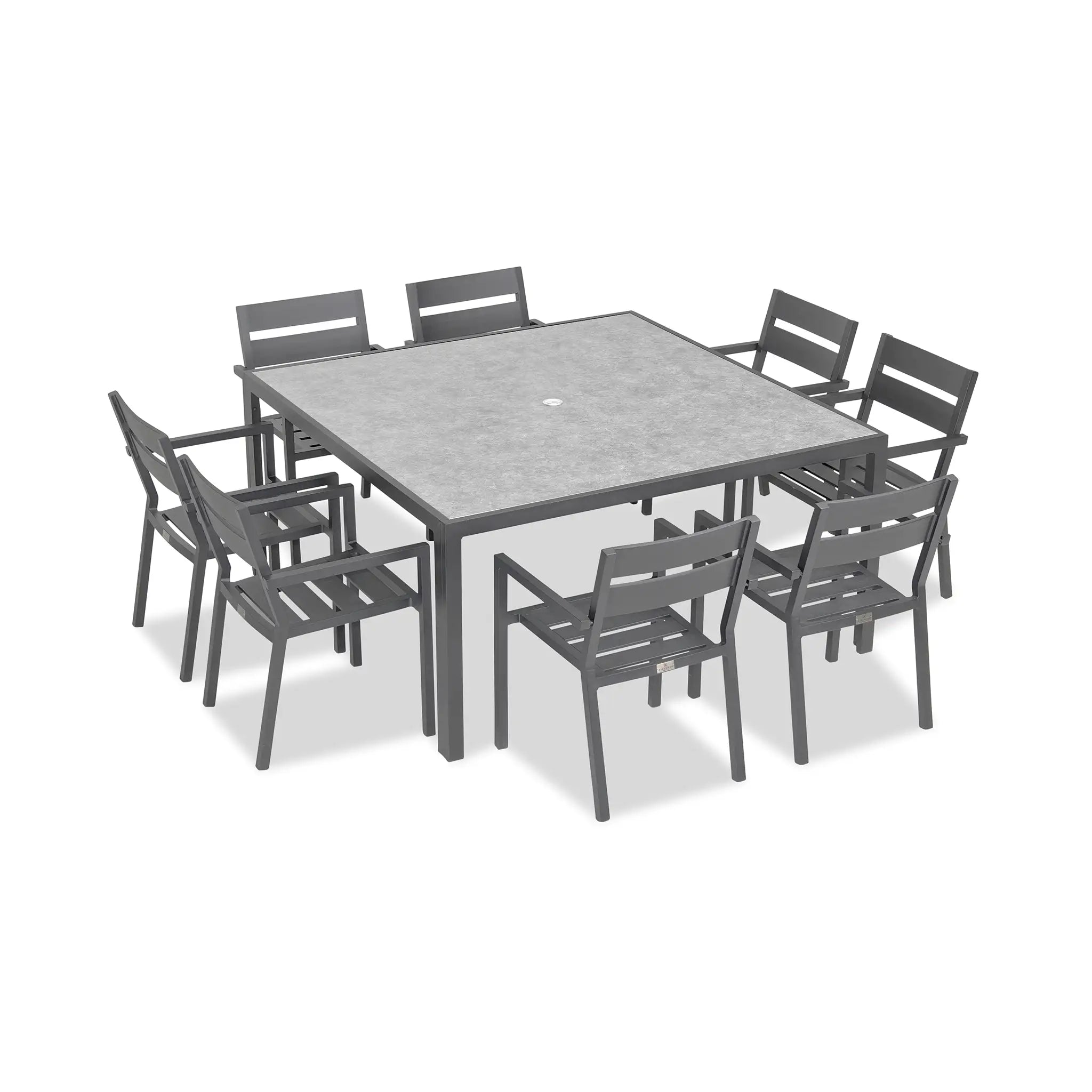 The Harmonia Living Pacifica 9 Piece Aluminum Square Dining Set - Slate is designed to bring a perfect balance of refinement and relaxation to your outdoor space. With its clean lines, gentle angles, and minimalist aesthetic, this dining set provides a sophisticated yet inviting atmosphere for patios both large and small. Whether you're hosting an elegant dinner party or enjoying a casual meal with family, the Pacifica collection delivers both style and comfort, making it an essential addition to any outdoor dining area.