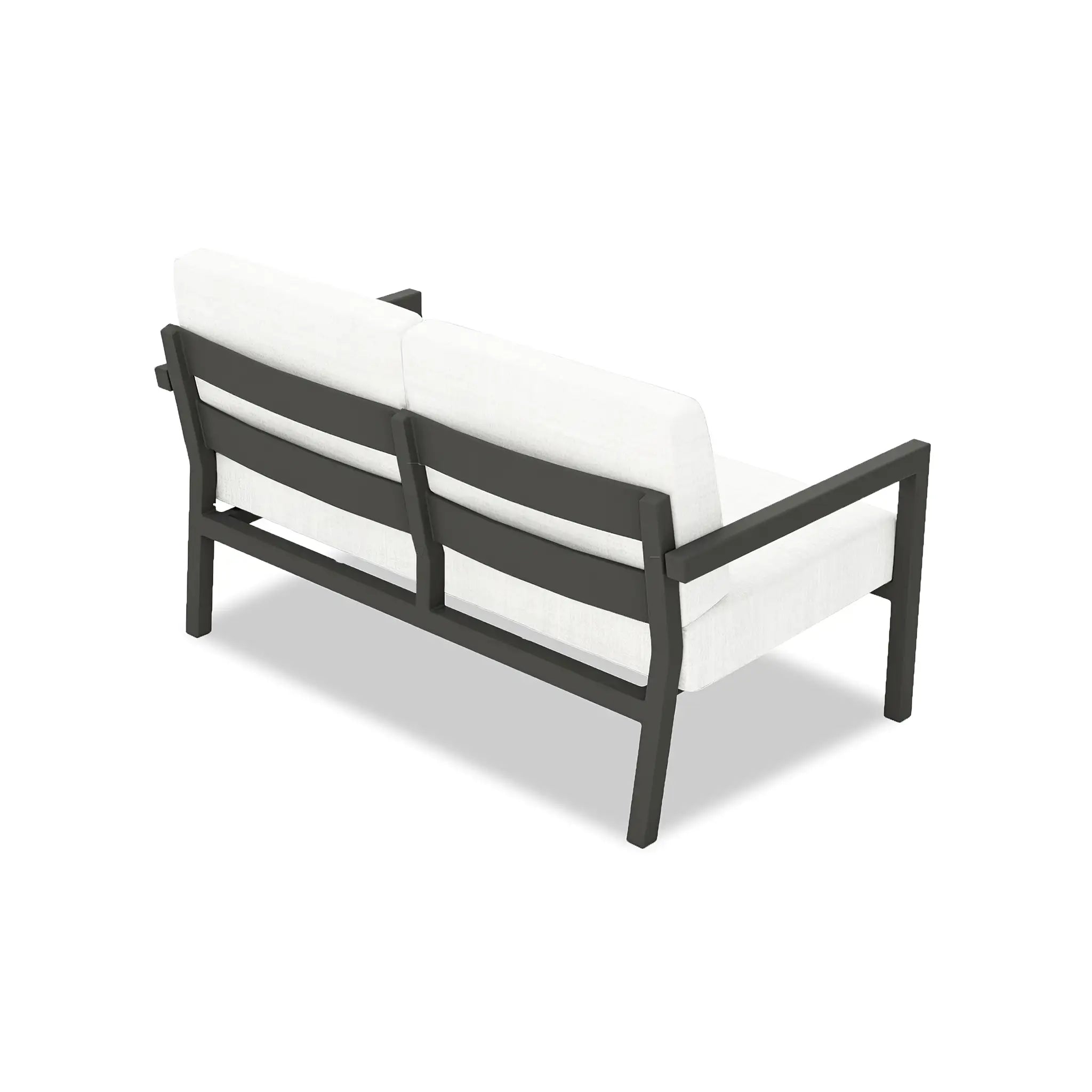 The Harmonia Living Pacifica LoveSeat Aluminum - Slate brings both sophistication and comfort to any outdoor space. Designed to enhance your patio, whether large or small, this loveseat features clean, minimalist lines with soft, gentle angles that create a welcoming and stylish atmosphere. The luxurious cushions provide exceptional comfort while adding a touch of elegance to your outdoor retreat.