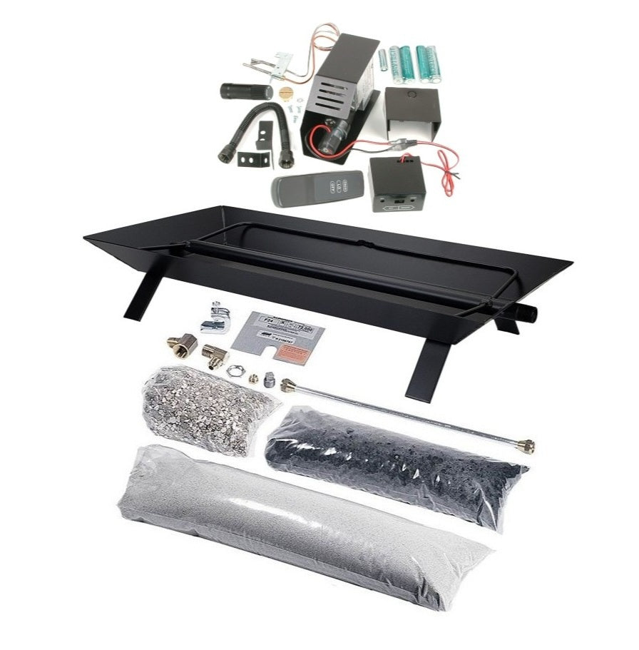 Enhance your fireplace with the Rasmussen 16-30" Vented Custom Pan Burner | Variable Remote Safety Control | Natural Gas & Propane, a versatile and durable solution for vented gas fireplaces. Available in sizes from 16" to 30", this custom pan burner is constructed from 16-gauge black steel with welded seams, ensuring even flame distribution and long-lasting performance. Its sleek black finish accentuates the flames, while the included pan filler and ember magic create a realistic glowing ember effect that mimics a traditional wood-burning fireplace. With variable remote safety control, you can easily adjust flame height for a personalized ambiance. Compatible with natural gas or propane and designed for single, see-thru, and multi-sided fireplaces, this burner offers flexibility, durability, and style to suit any space.