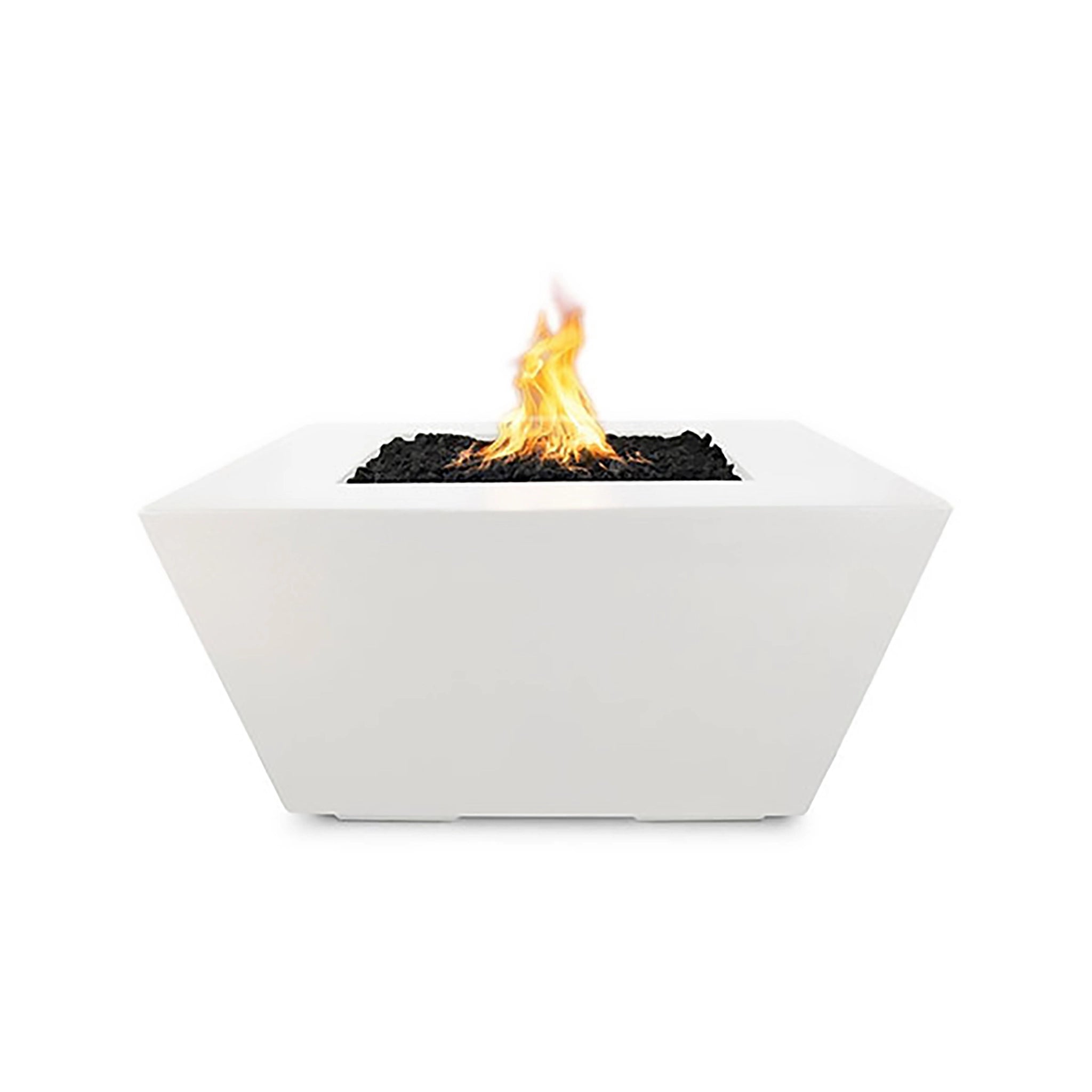 Each Redan fire pit features a durable stainless steel burner at the hub that offers a heat output of up to 65,000 BTUs. Accent the flames with the included lava rock while it conceals the burner in style and optimizes proper air flow and combustion with its porous texture. The sleek, smooth surface of the Redan is attributed to its GFRC construction--a concrete mixture reinforced with fine glass. No need for side tables because this fire pit features a generous tabletop that provides ample space for setting small appetizers and drinks atop. This fire pit is available for natural gas and propane, and propane models also include a compartment for storing a standard 20 lb propane tank (sold separately) inside the base. Customize your investment with a match lit ignition system or a CSA Certified electronic ignition system tailored to suit your needs. Regardless how you decide to make your Redan unique yours, we're certain it won't disappoint.