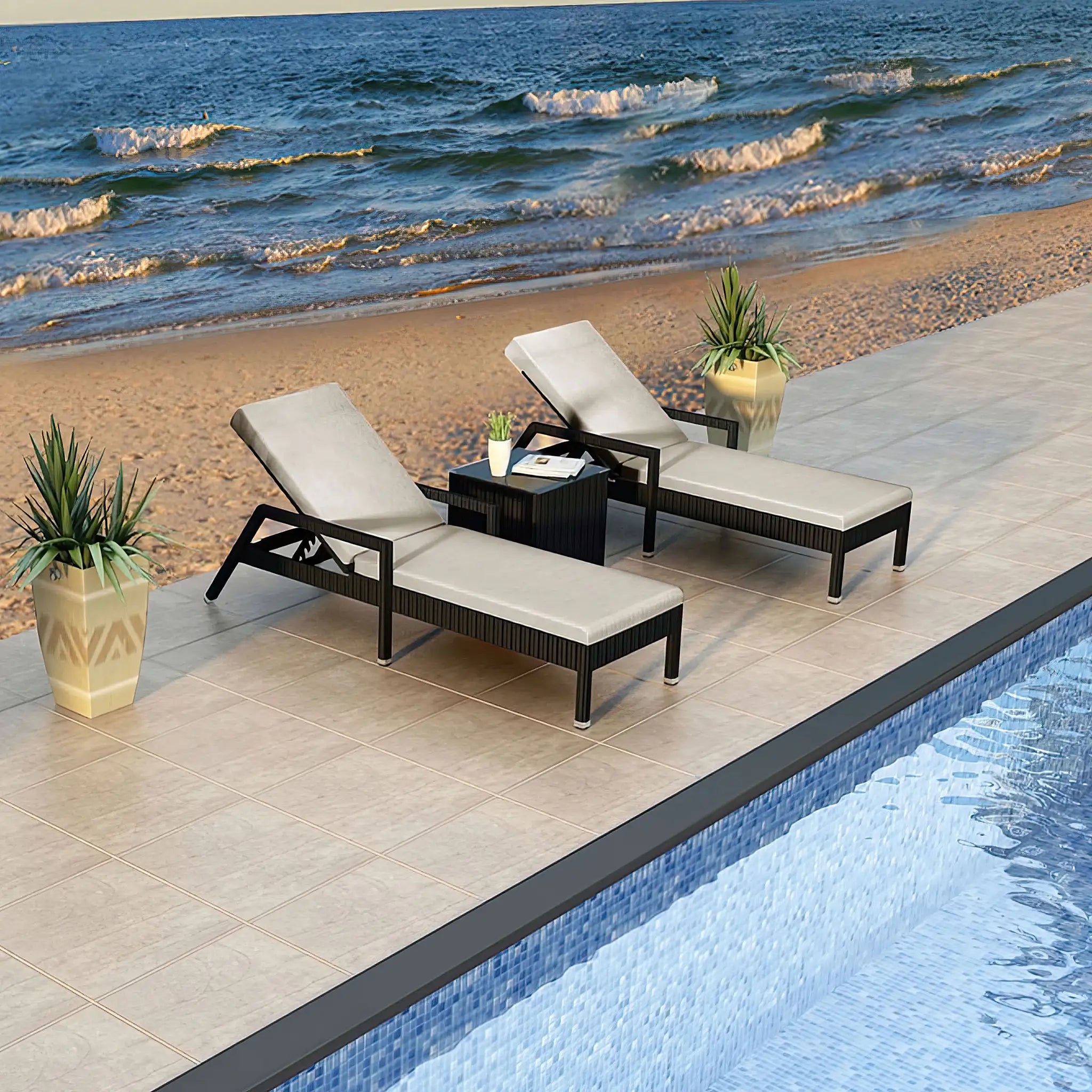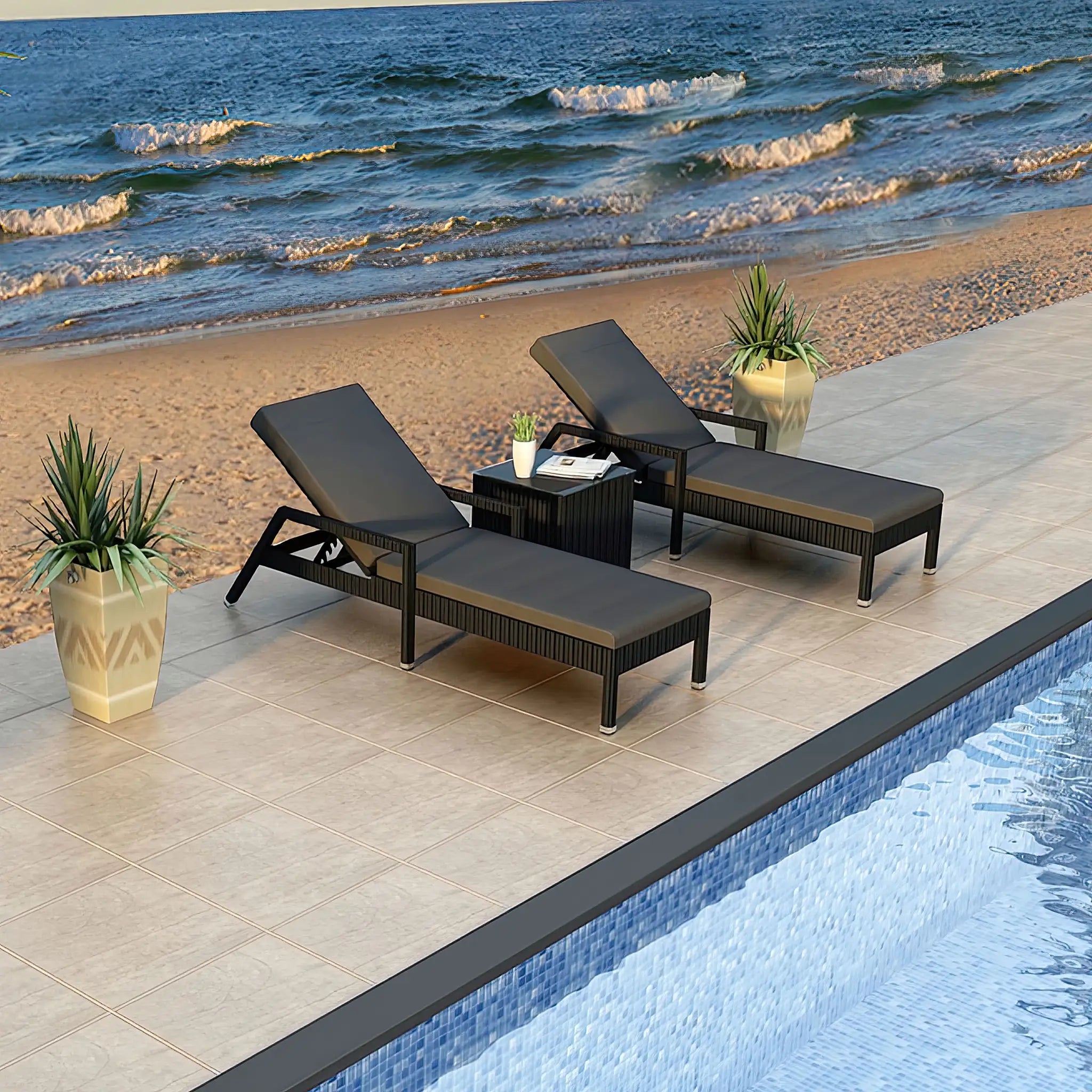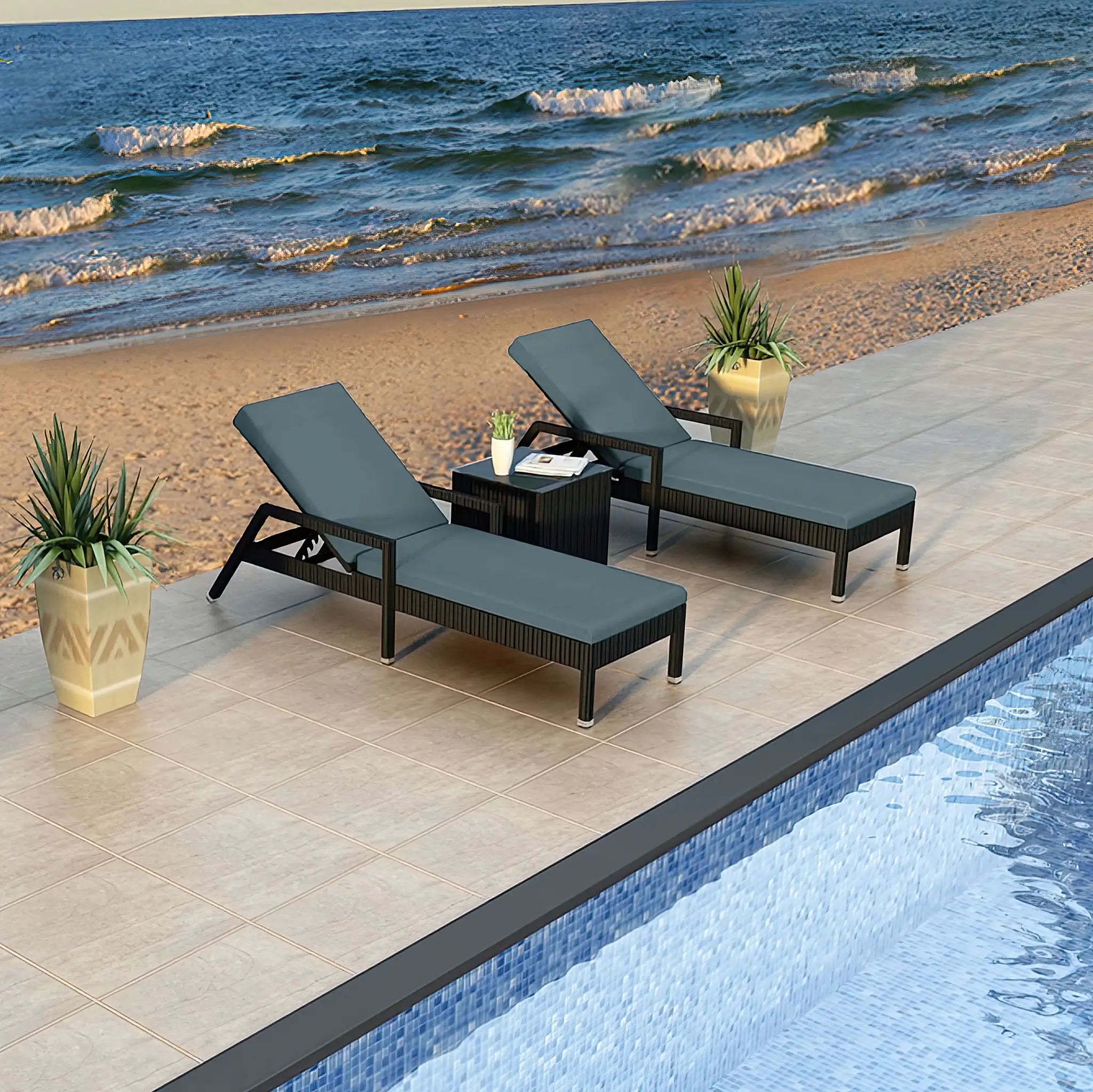 Designed for both residential and commercial applications, the Urbana 3 Piece Reclining Chaise Lounge Set is a high-quality investment in outdoor relaxation. With its adjustable comfort, weather-resistant materials, and elegant finish, this set transforms any outdoor space into a luxurious retreat built for leisure and style.