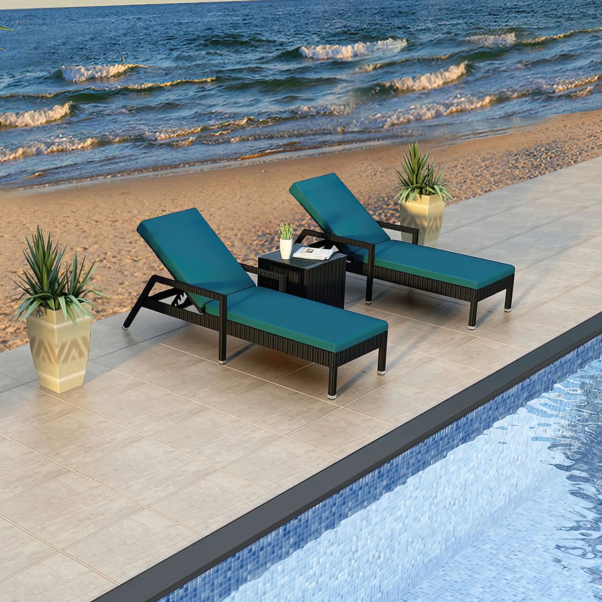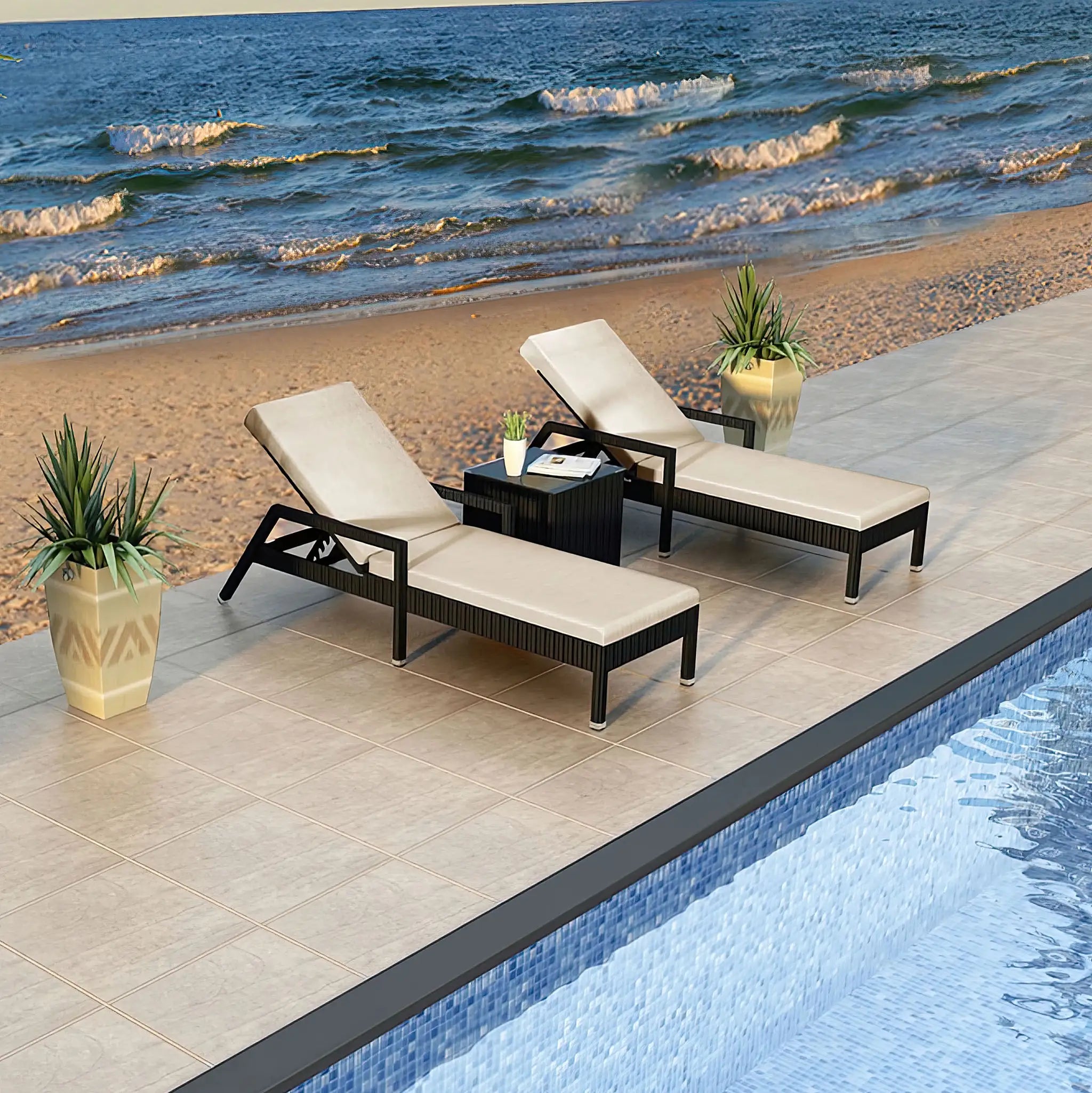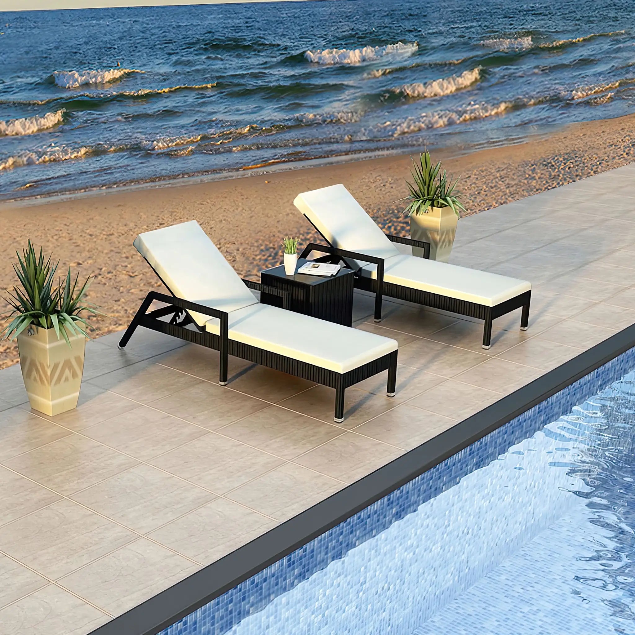 Designed for both residential and commercial applications, the Urbana 3 Piece Reclining Chaise Lounge Set is a high-quality investment in outdoor relaxation. With its adjustable comfort, weather-resistant materials, and elegant finish, this set transforms any outdoor space into a luxurious retreat built for leisure and style.