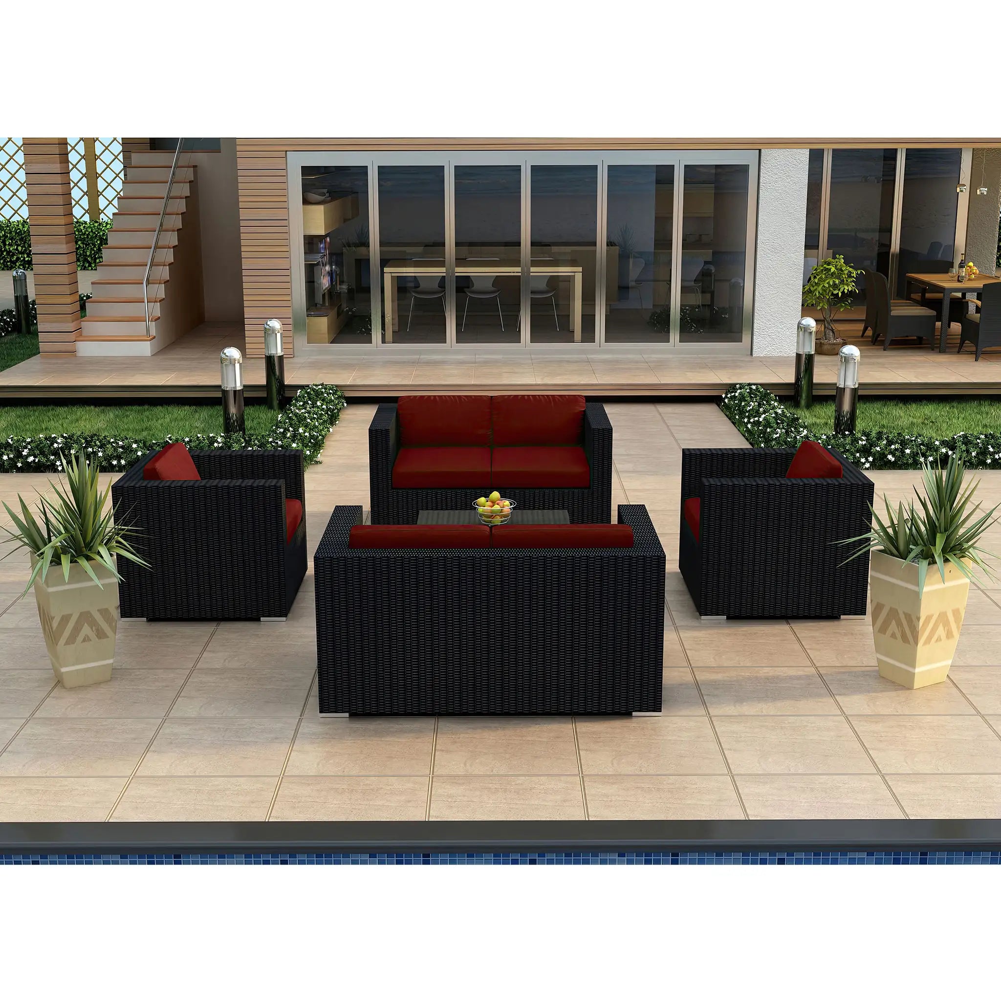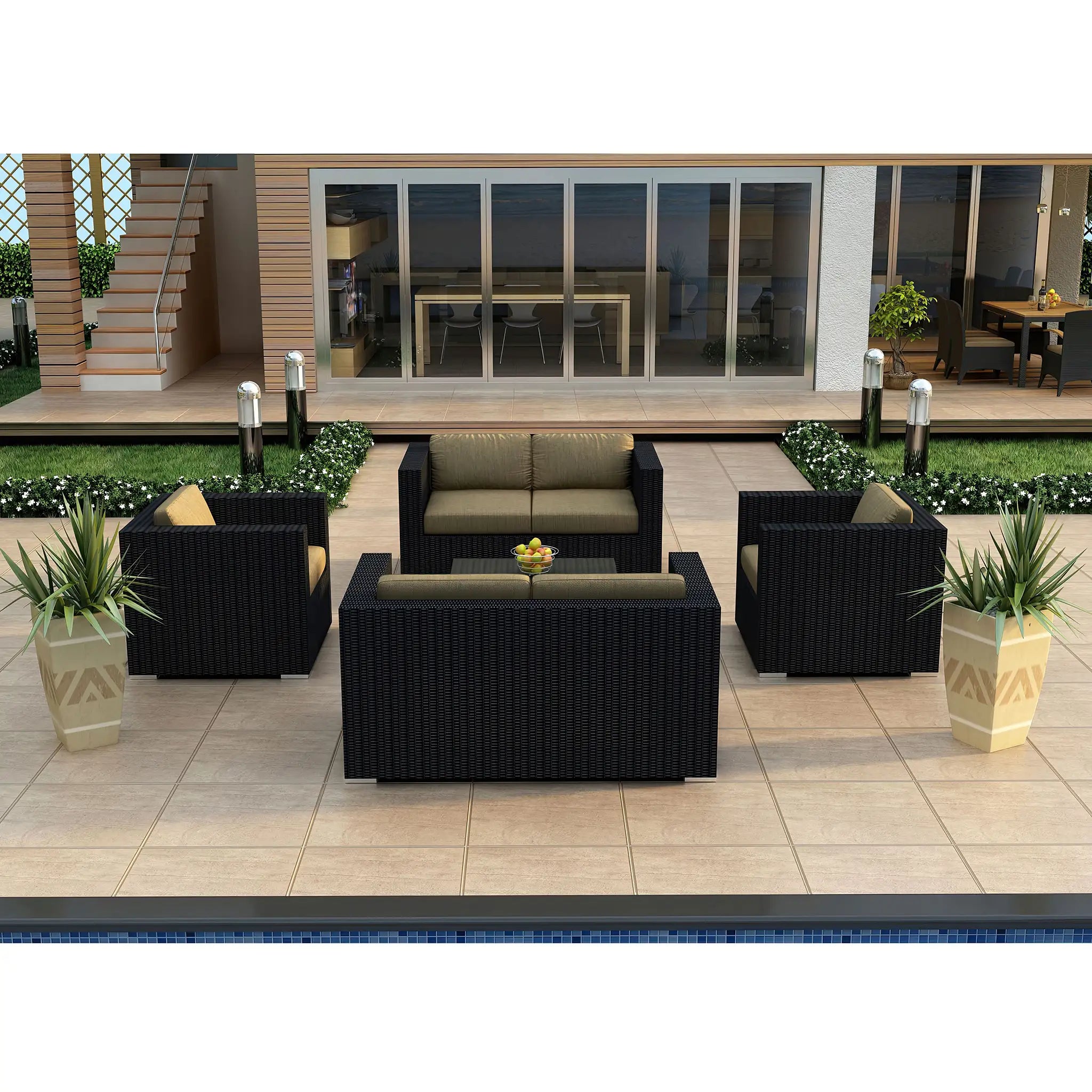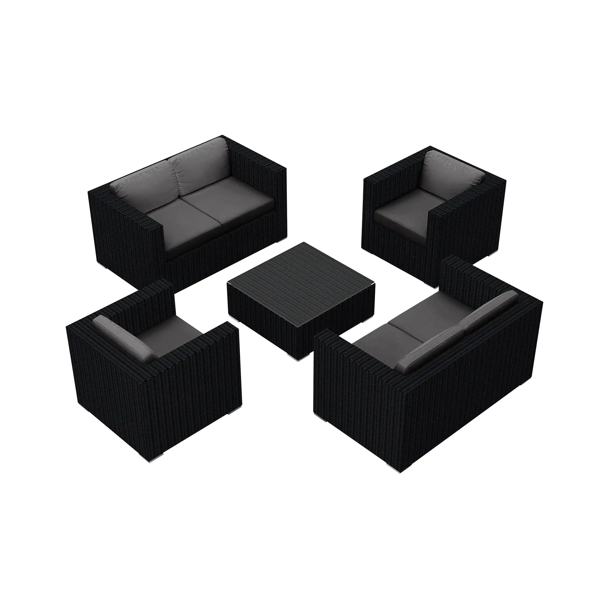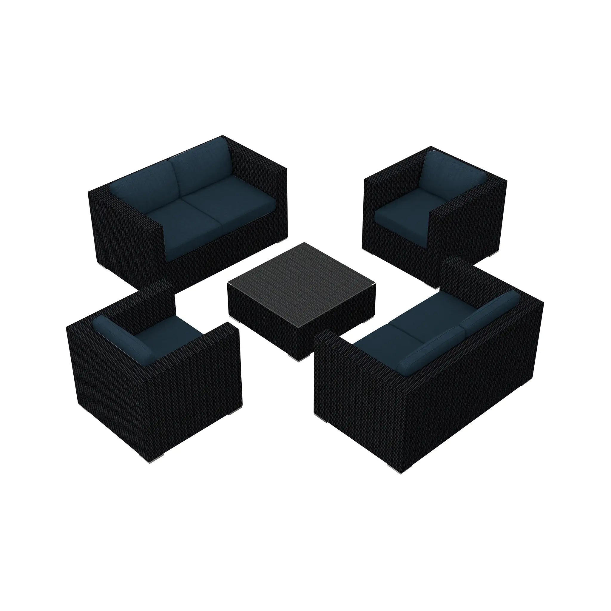 Completing the set, the tempered glass tabletop adds a functional and stylish touch, making it easy to clean and maintain, while also providing a sturdy surface for entertaining. Whether you're looking to enhance a residential patio or a commercial outdoor space, the Urbana 5 Piece Double Loveseat Set delivers exceptional quality, comfort, and modern elegance for years to come.