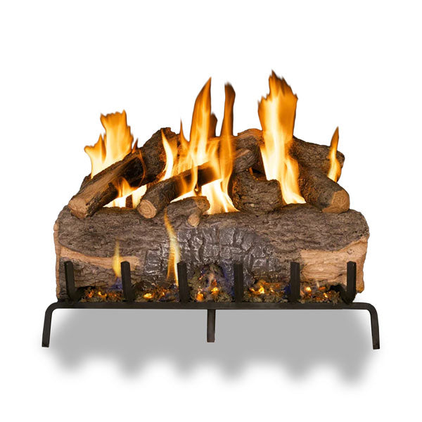 Made from fiber-reinforced refractory ceramic, each log contains steel rods running through for added strength and durability. Real Fyre promises that your logs will be burning bright season after season with their Lifetime Warranty on all gas logs. Each log in the set is based on real oak samples, and is hand-painted with care to achieve the highest level of detail from bark to char. Designed for use with Real Fyre G31 Burner System exclusively.