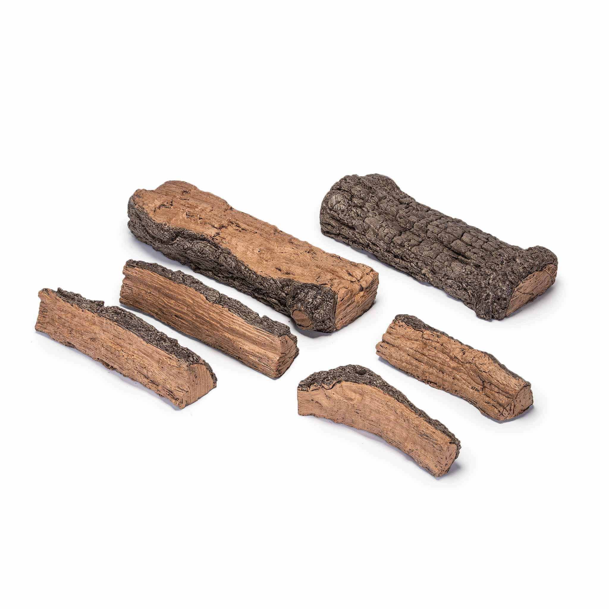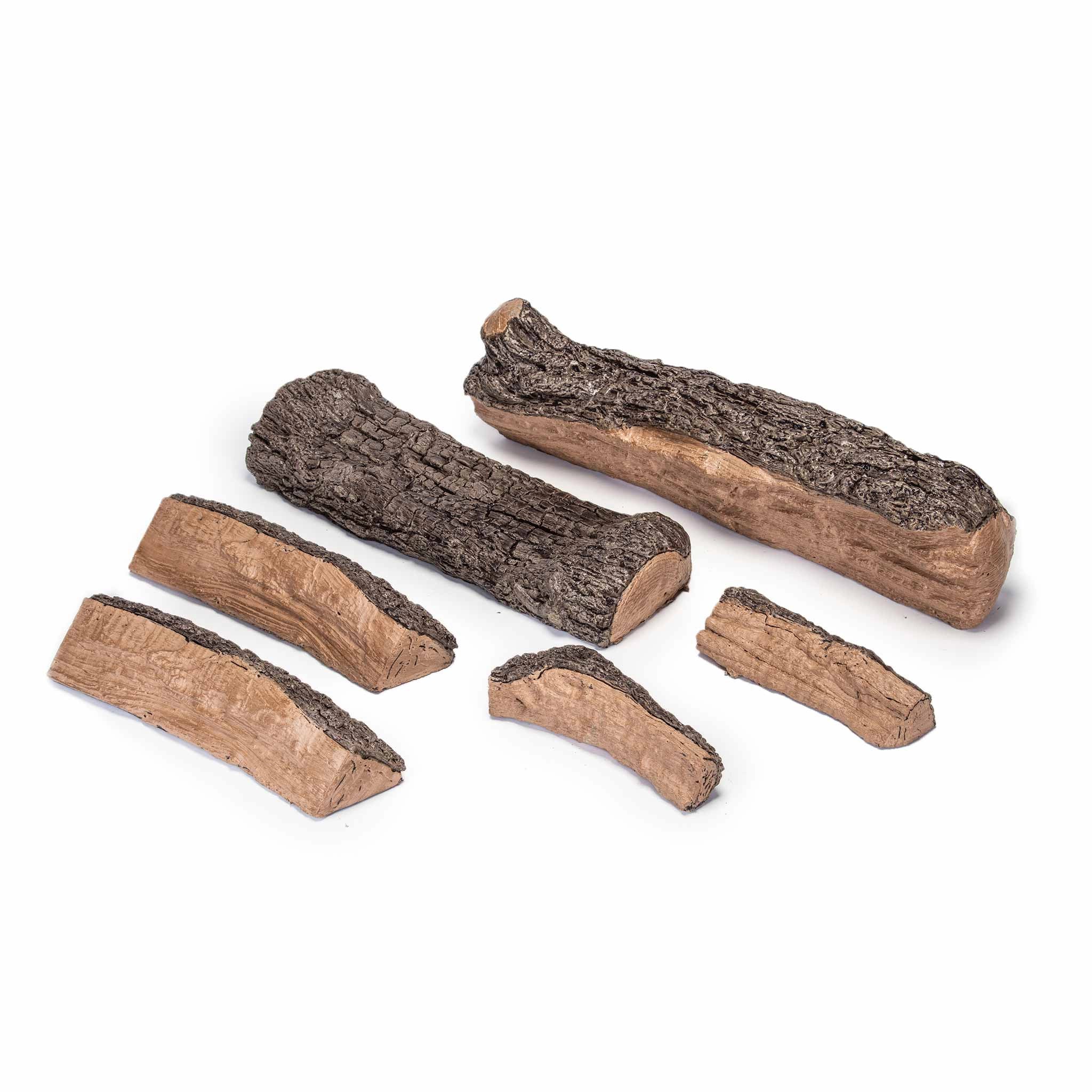 Hand-painted from real oak samples, the Split Oak Gas Logs are designed to look like they are freshly split oak logs, straight from the wood pile. The beauty of this set is in the details, down to the realistic bark and wood grain. These sturdy logs are made from fiber-reinforced refractory ceramic with steel rods running through the middle. Every gas log set purchase is backed by a Lifetime Warranty. These logs are designed to be used with Real Fyre burner systems exclusively.